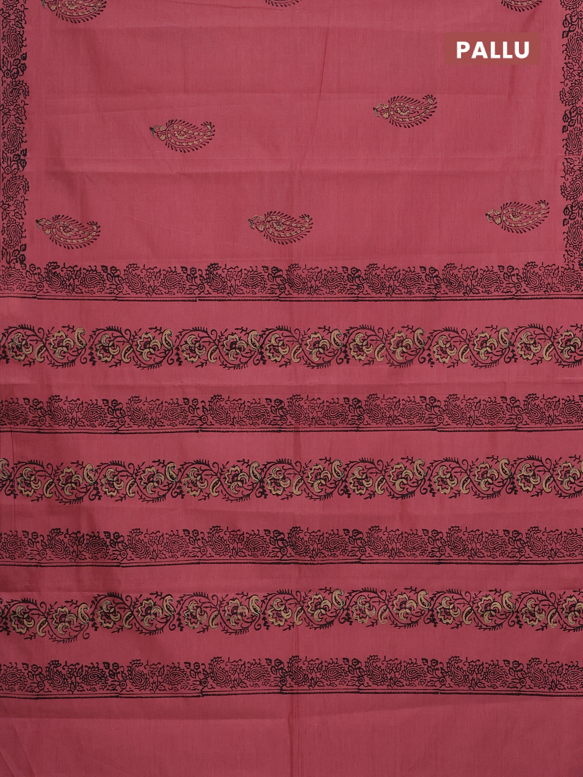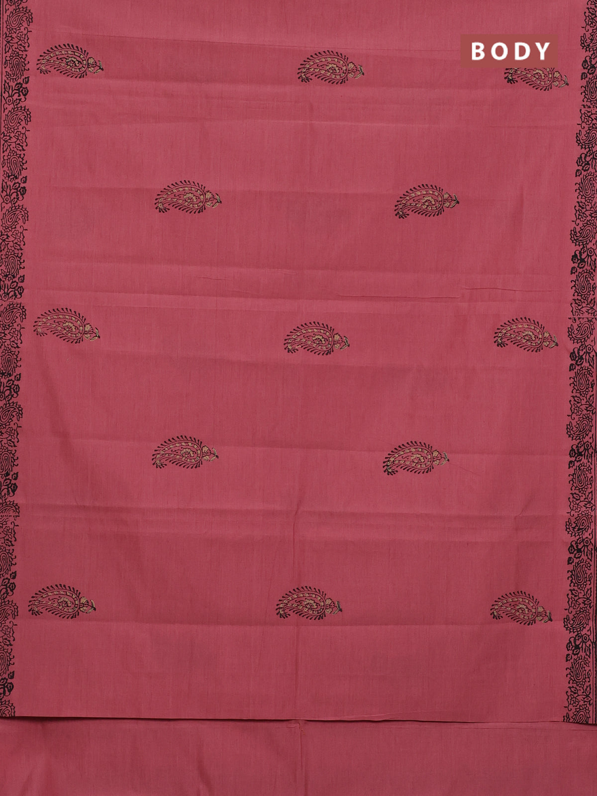 Semi silk cotton saree peach shade and black with butta prints and printed border