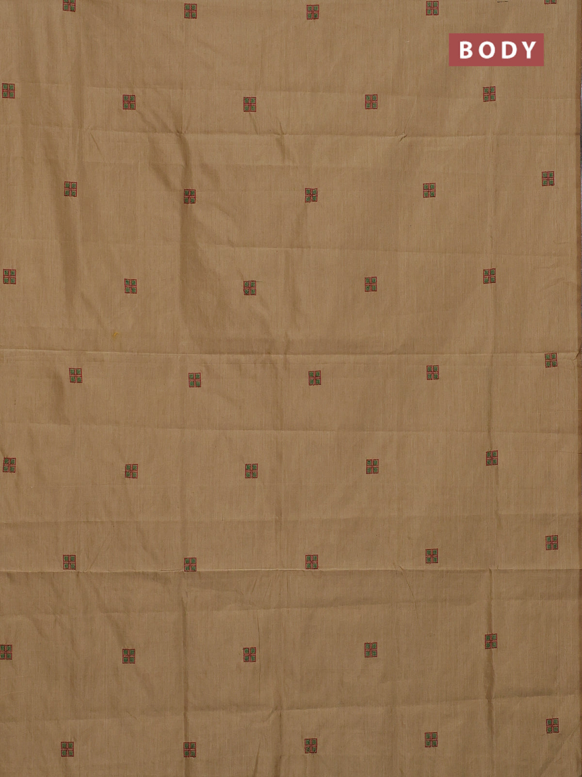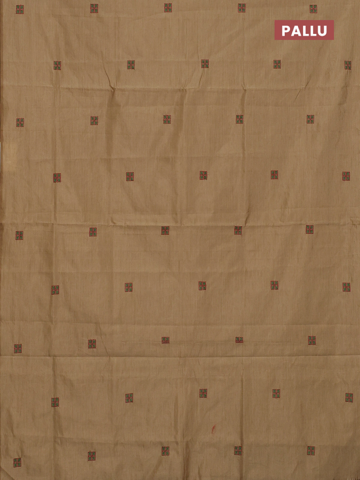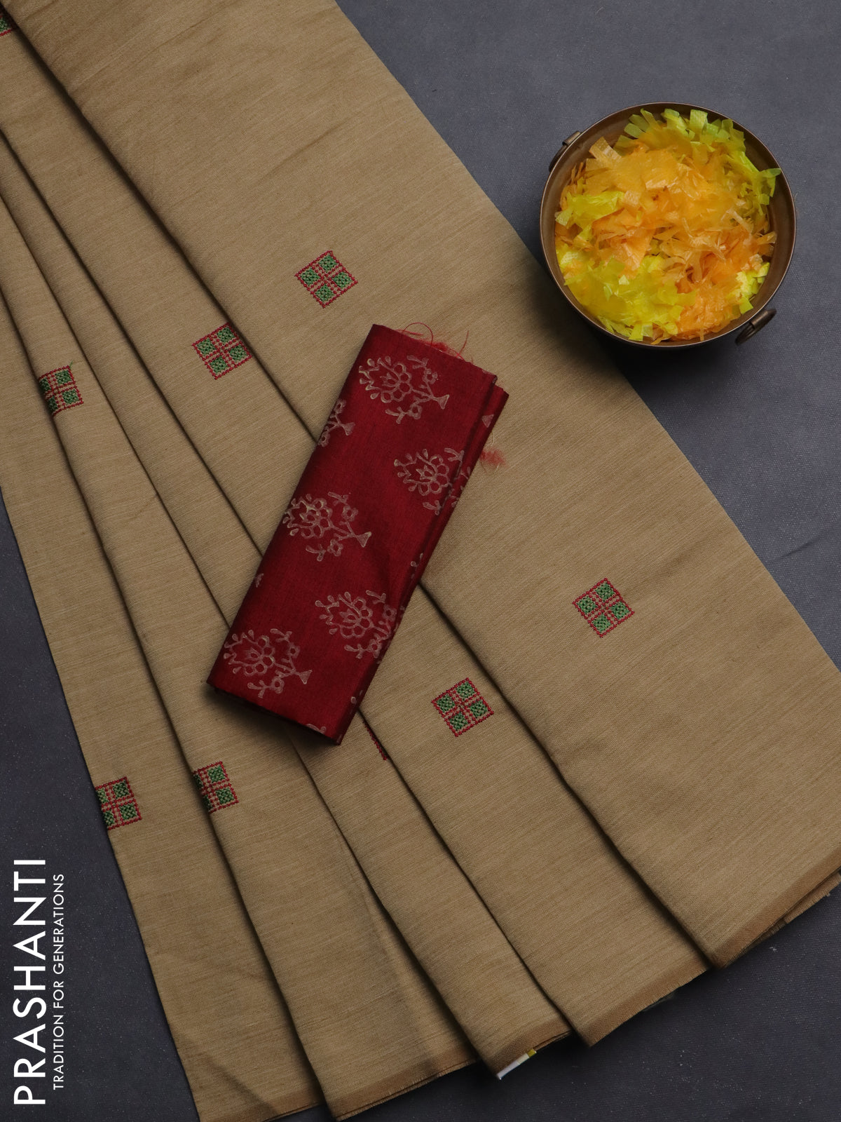 Semi silk cotton saree sandal and maroon with embroided buttas in borderless style