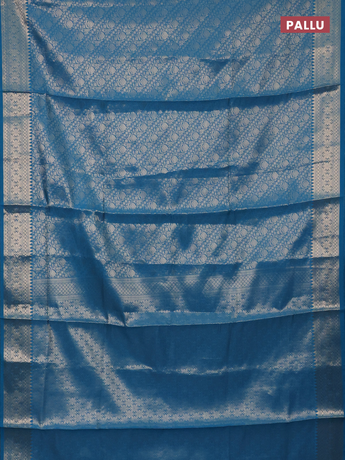 Semi soft silk saree cs blue with allover zari woven brocade weaves -Without blouse