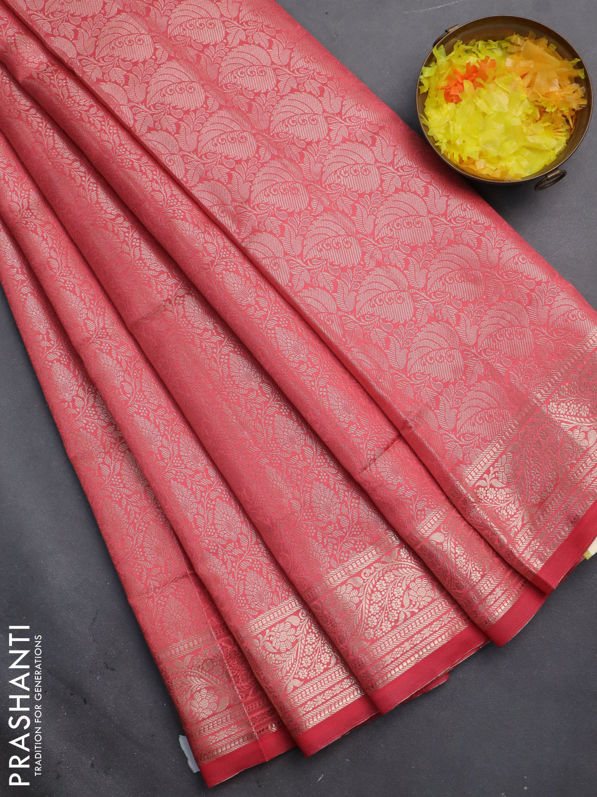 Semi soft silk saree peach shade with allover zari woven brocade weaves -Without blouse