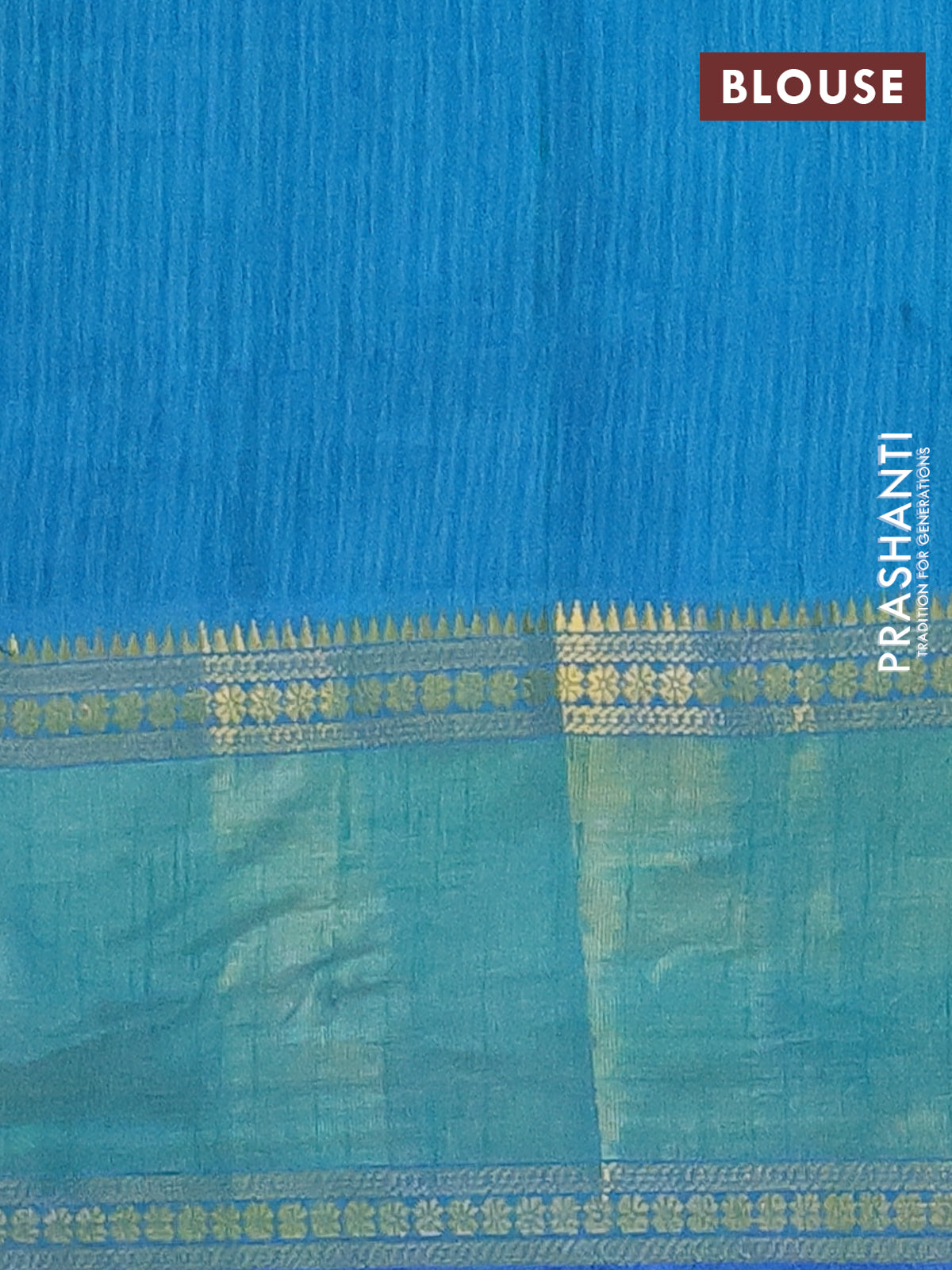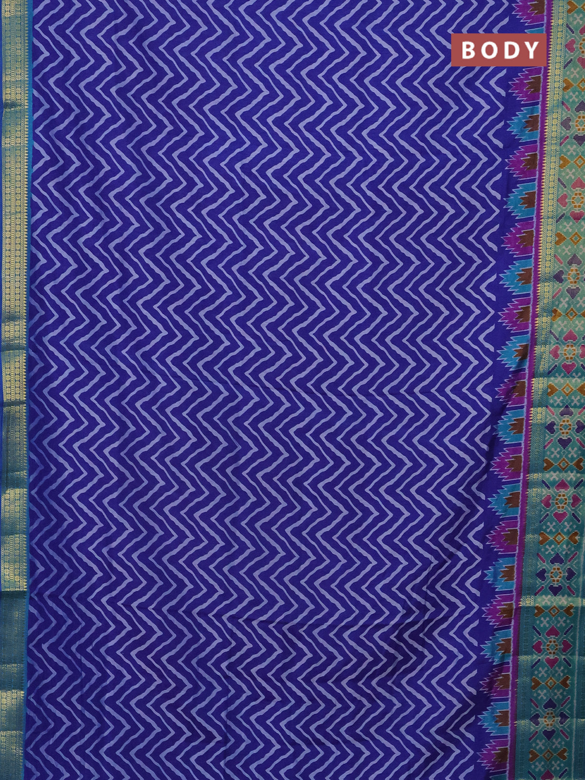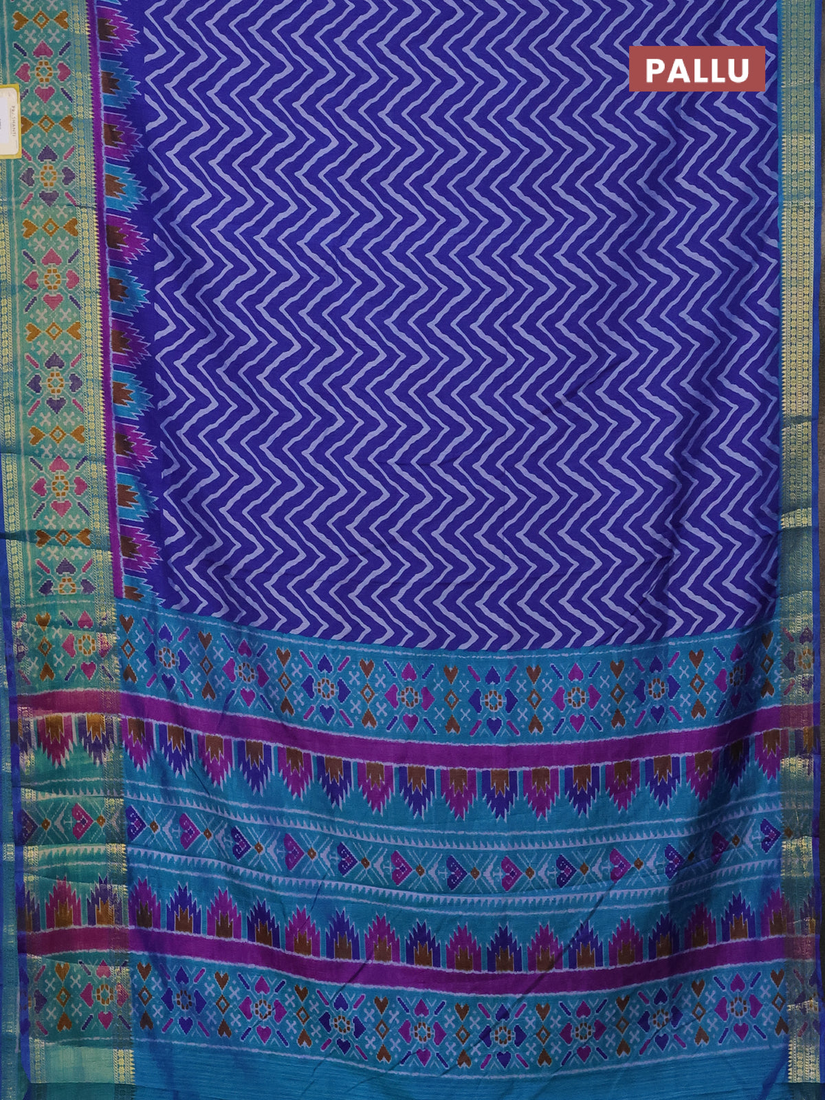 Semi tussar saree blue and teal green with allover zig zag prints and zari woven ikat border
