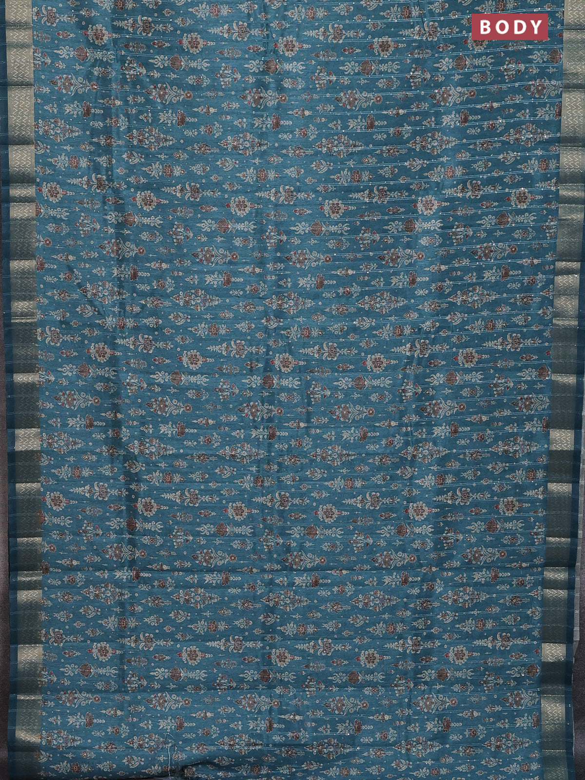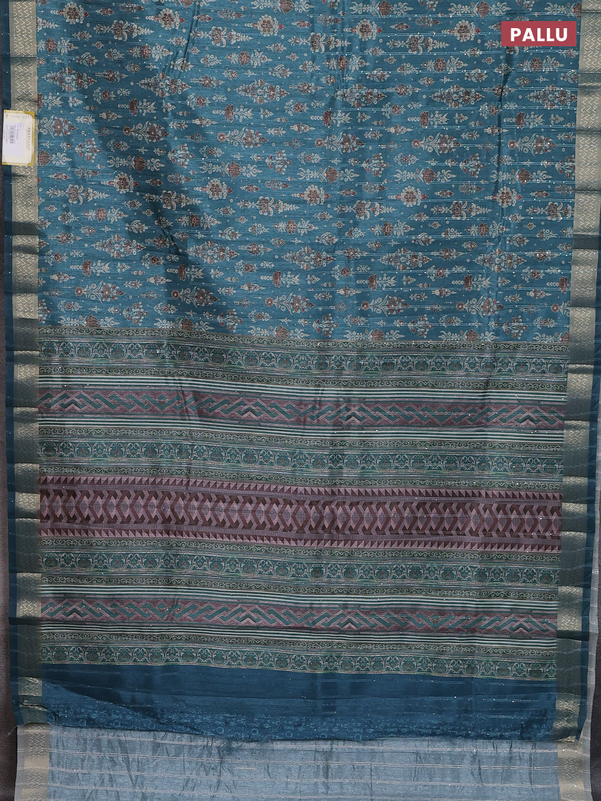 Semi tussar saree blue shade with allover prints & sequin work and zari woven border