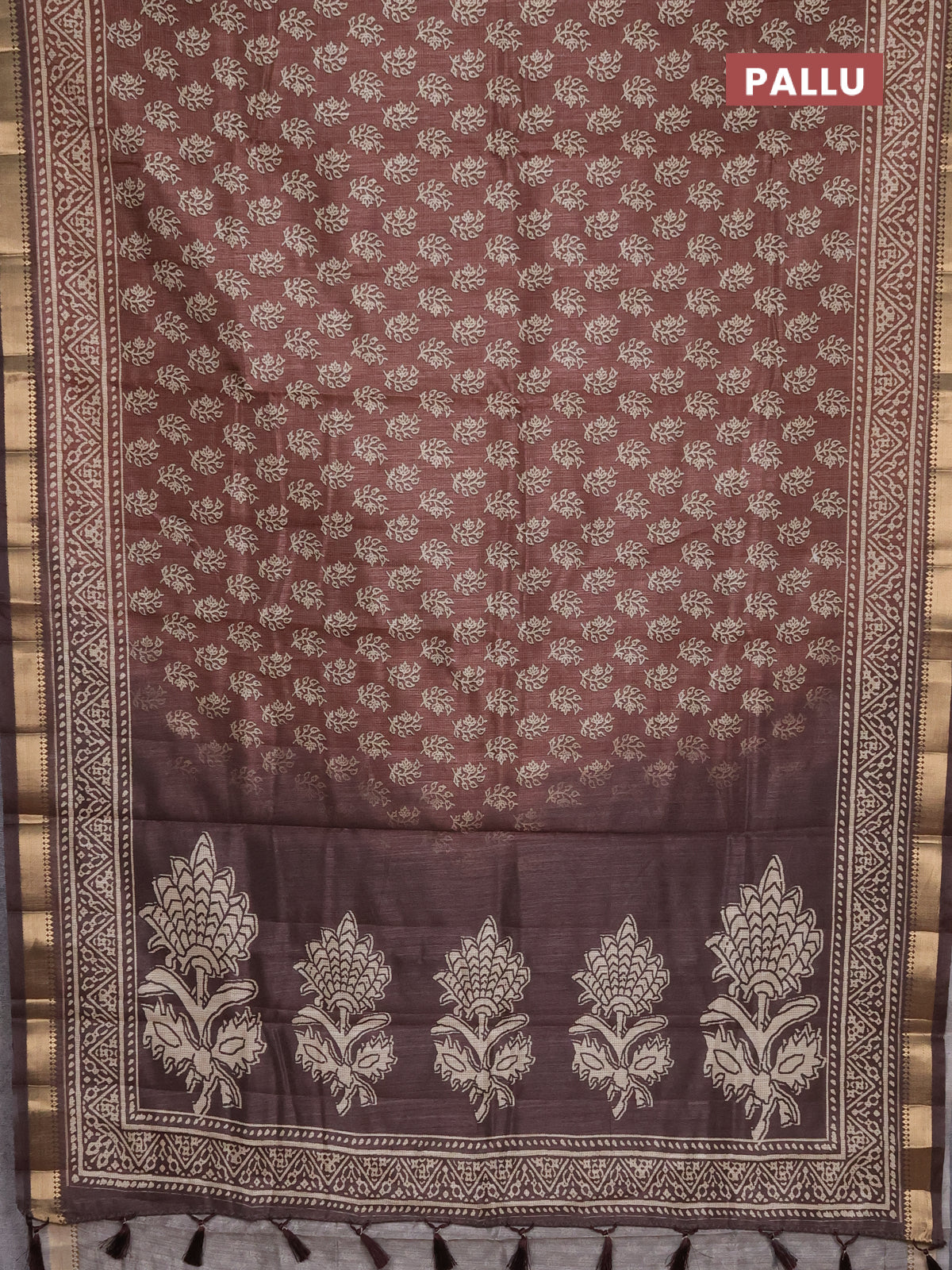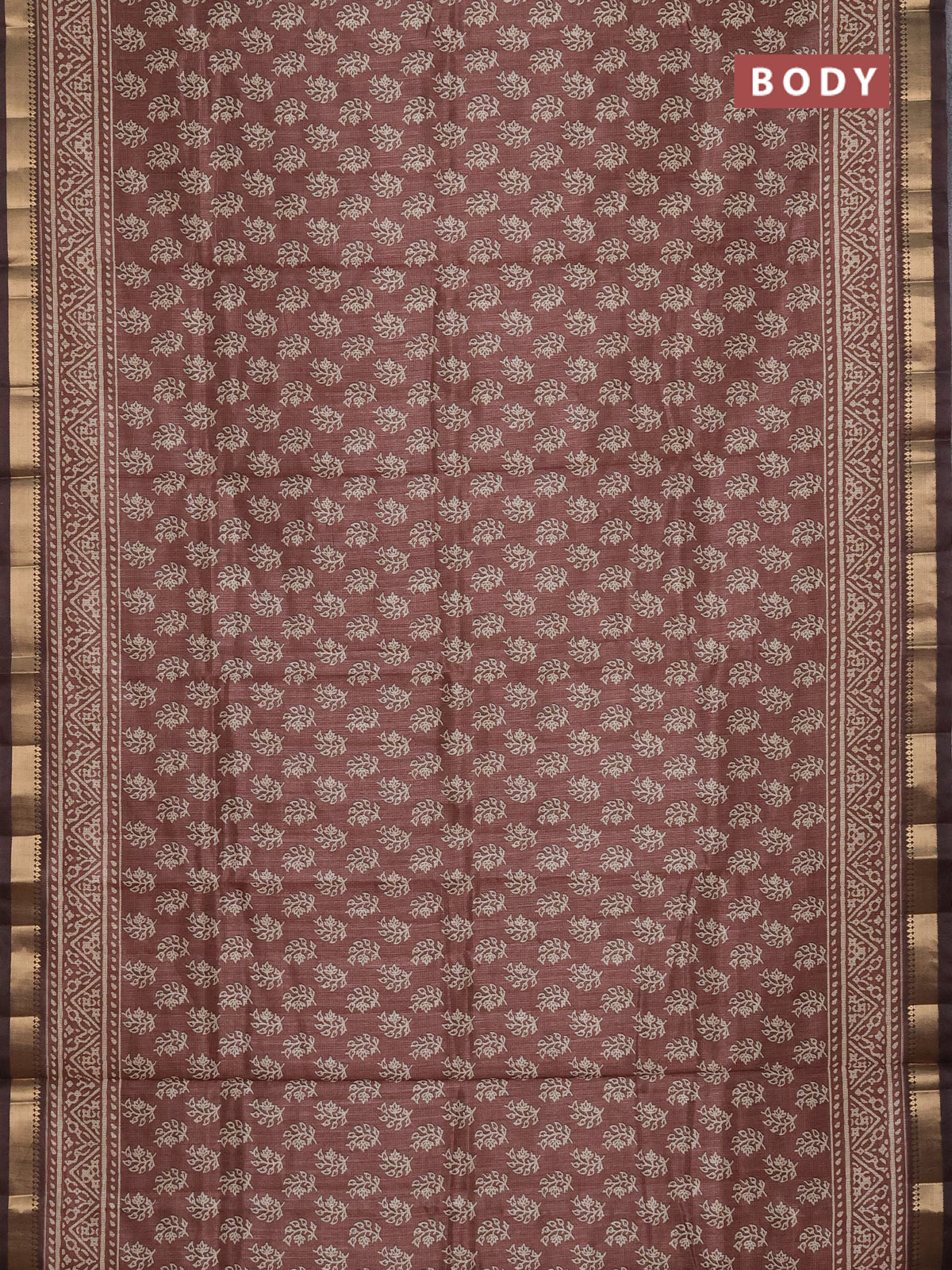 Material : Semi Tussar Blouse : Attached Length of saree : 6.2 mts (5.5 mts saree & 70 cms blouse)... Read more
