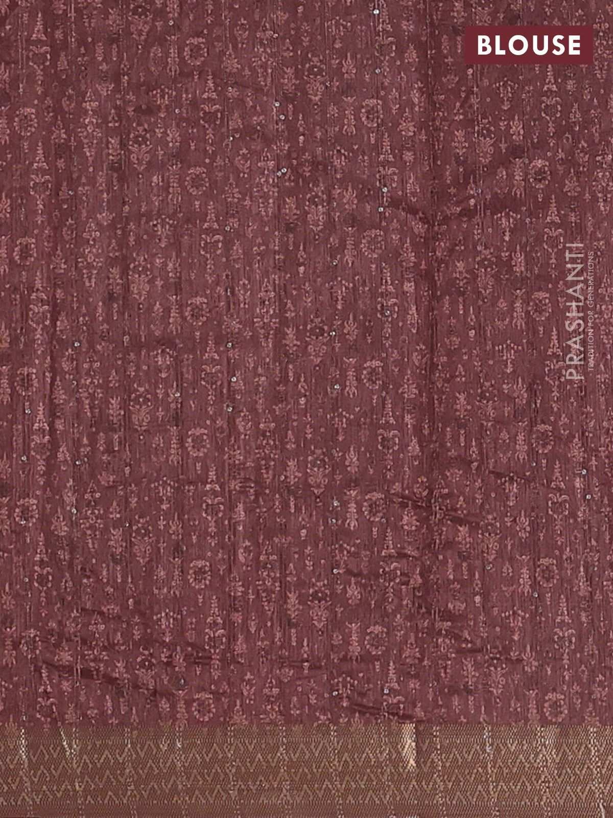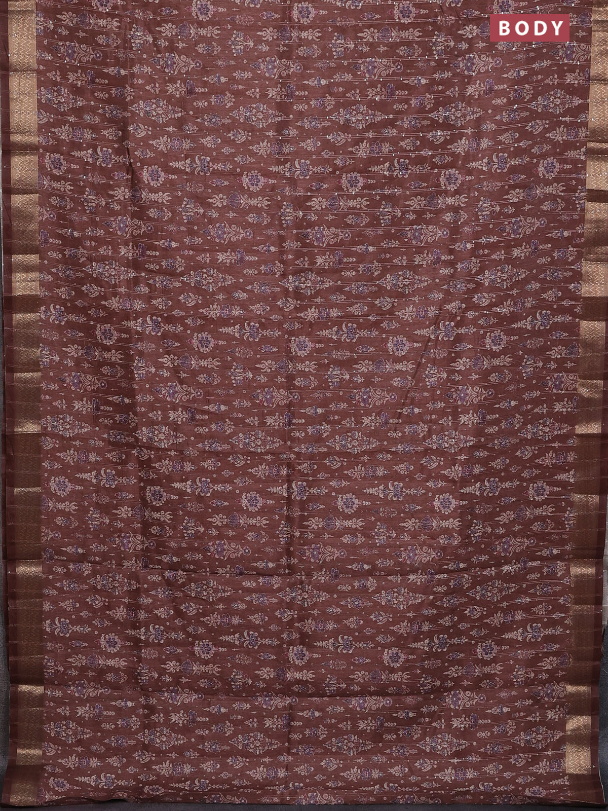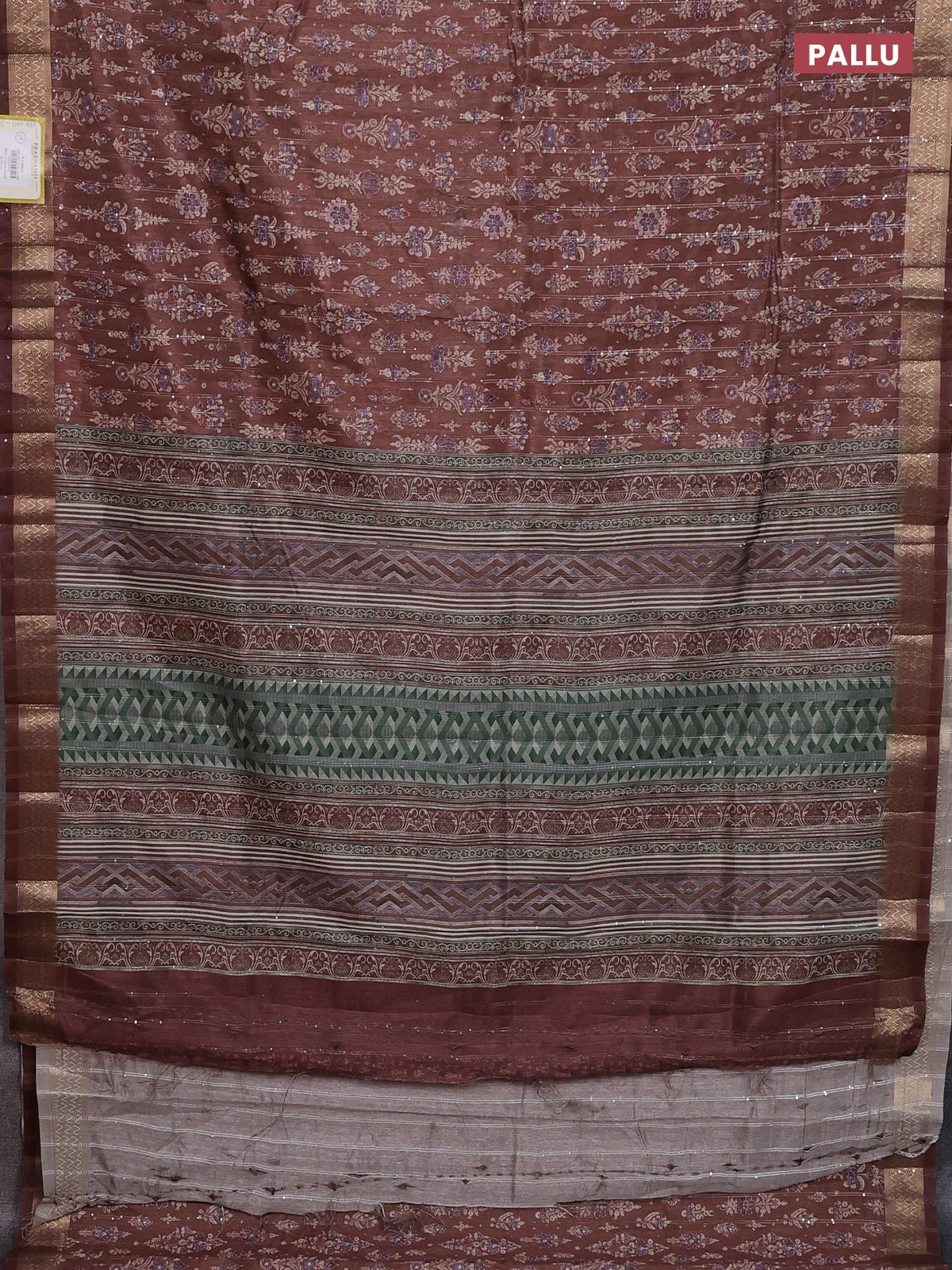 Semi tussar saree brown with allover prints & sequin work and zari woven border