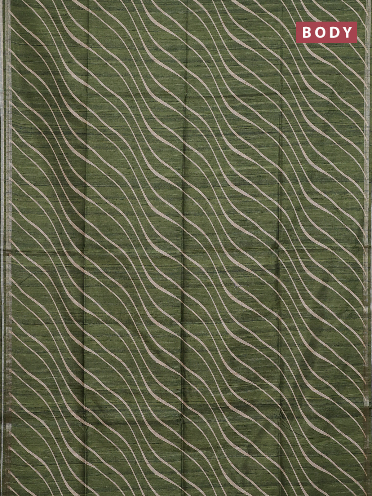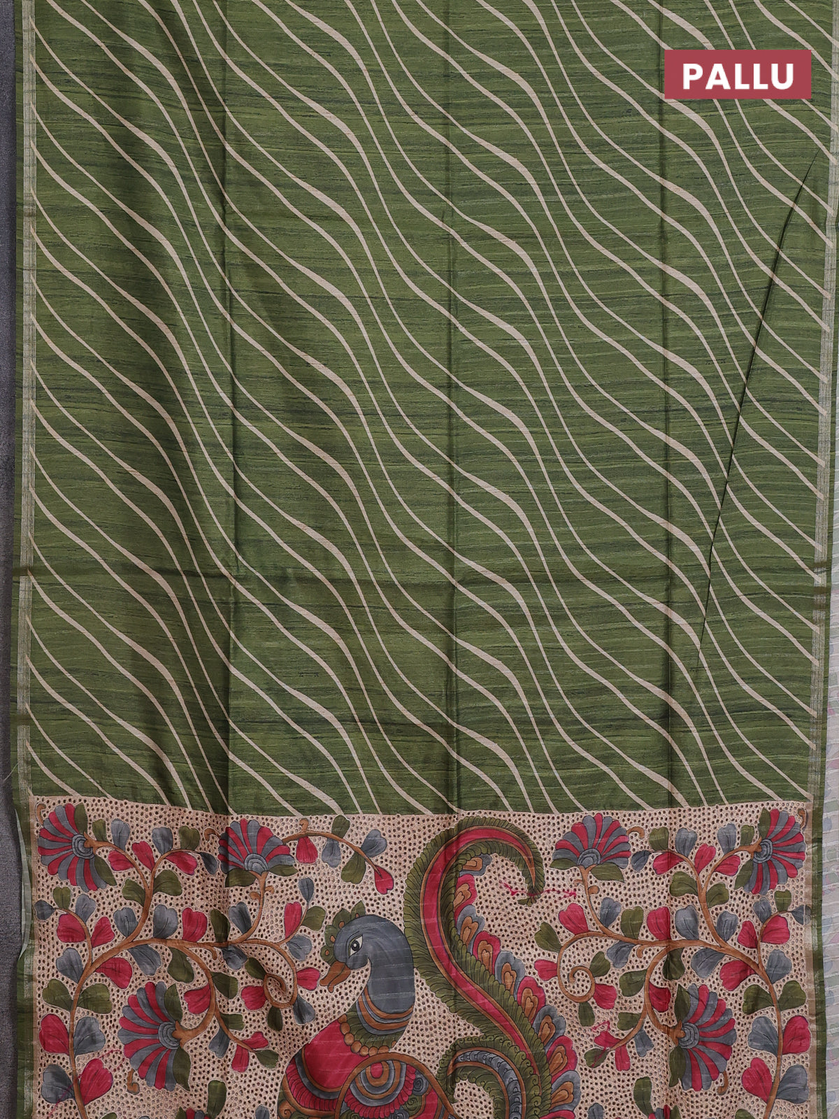Semi tussar saree dark green with leheriya prints and kalamkari prints & cut work pallu