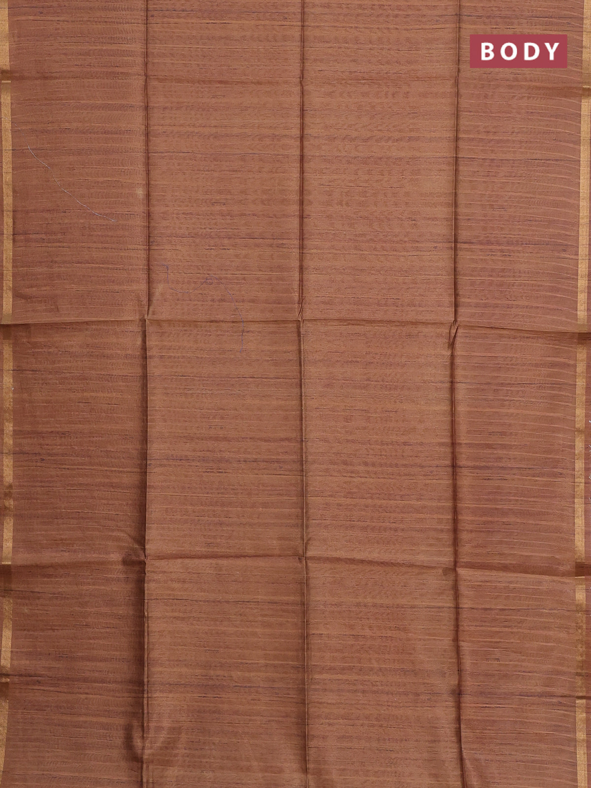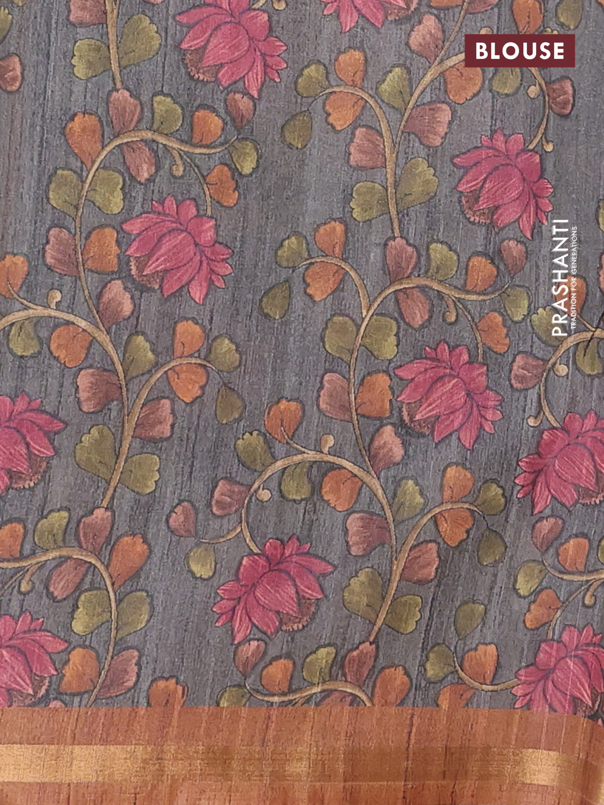 Semi tussar saree dark mustard with plain body and kalamkari prints & cut work pallu
