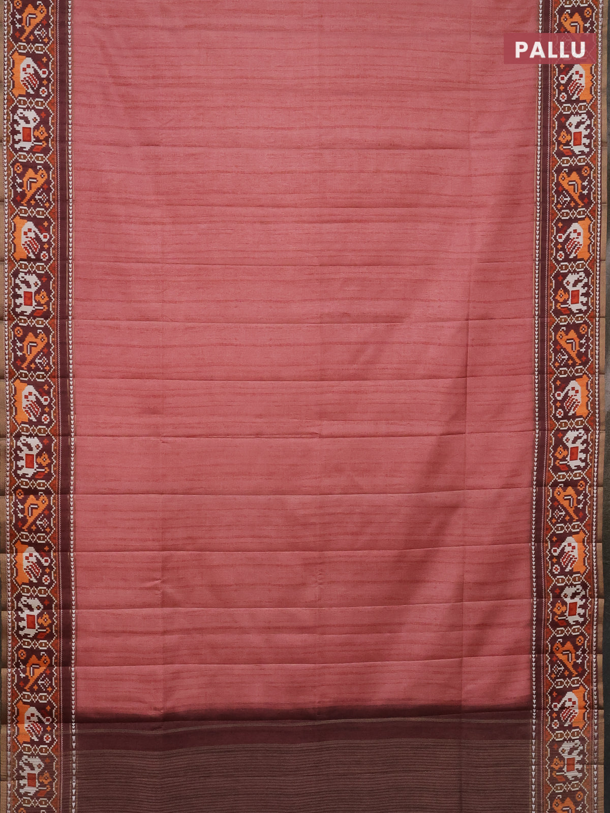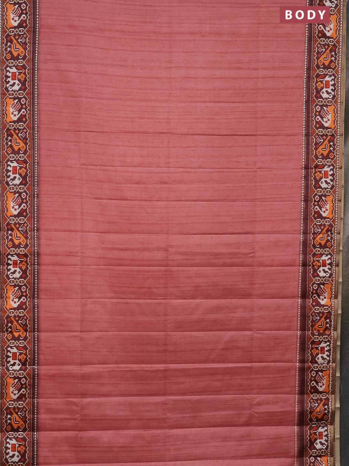 Semi tussar saree dark peach pink and brown with plain body and patola printed border