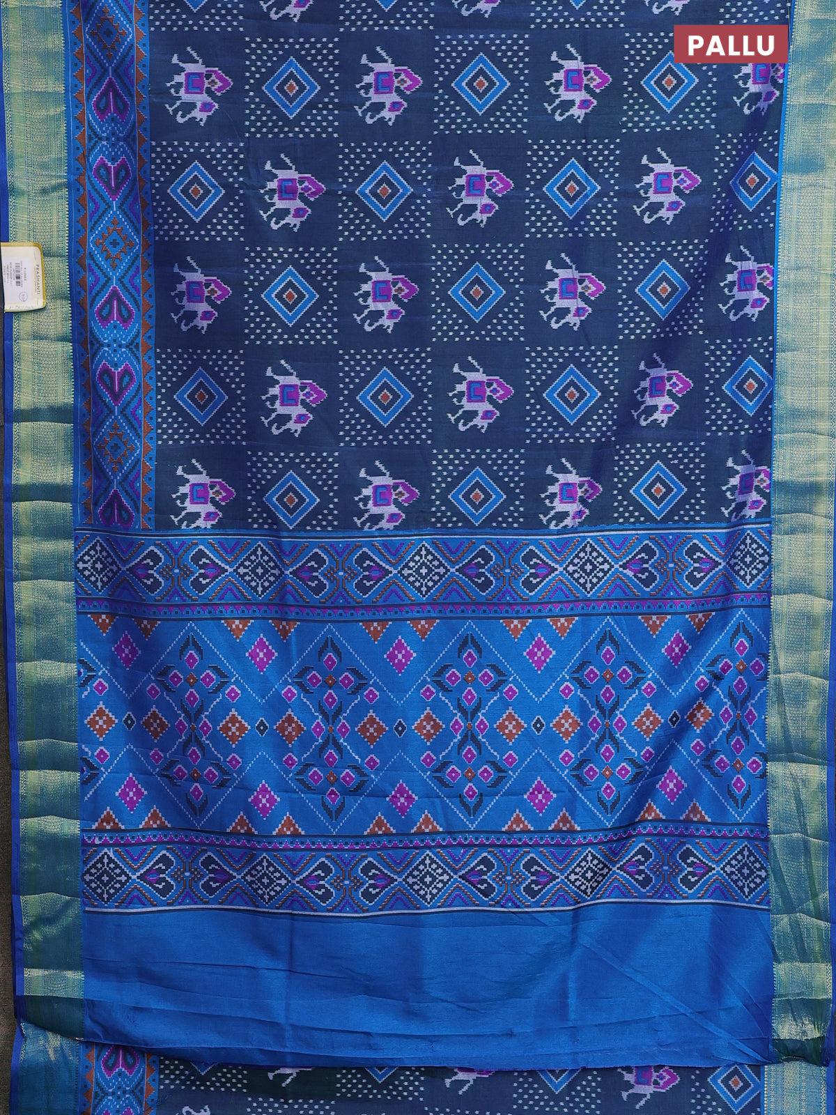 Semi tussar saree dual shade of bluish green and blue with allover ikat prints and zari woven border