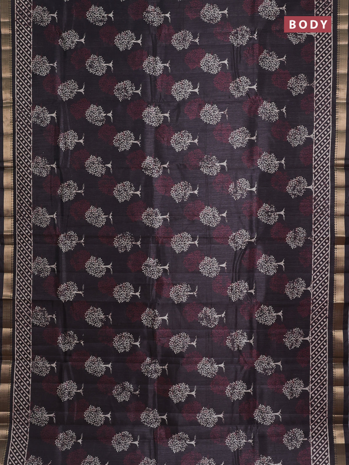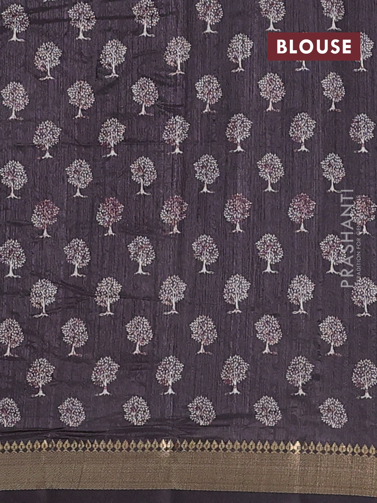 Semi tussar saree elephant grey with tree butta prints and zari woven border