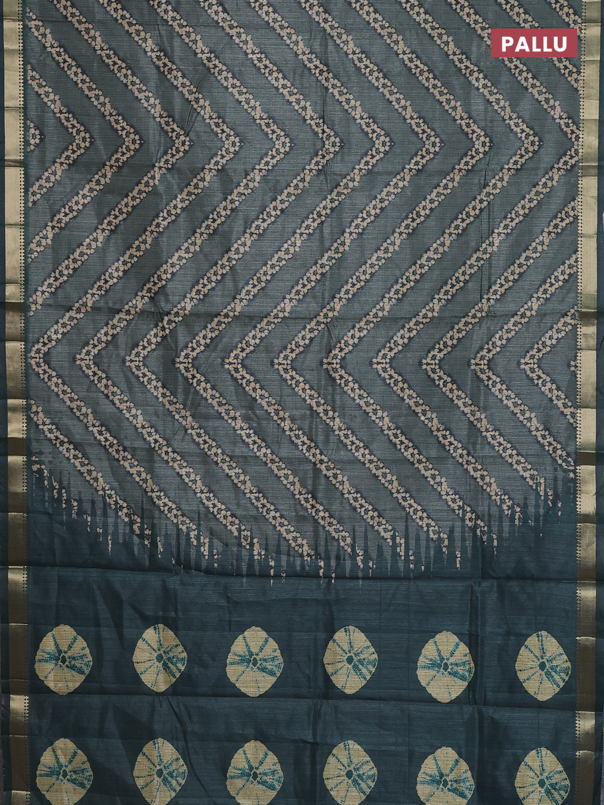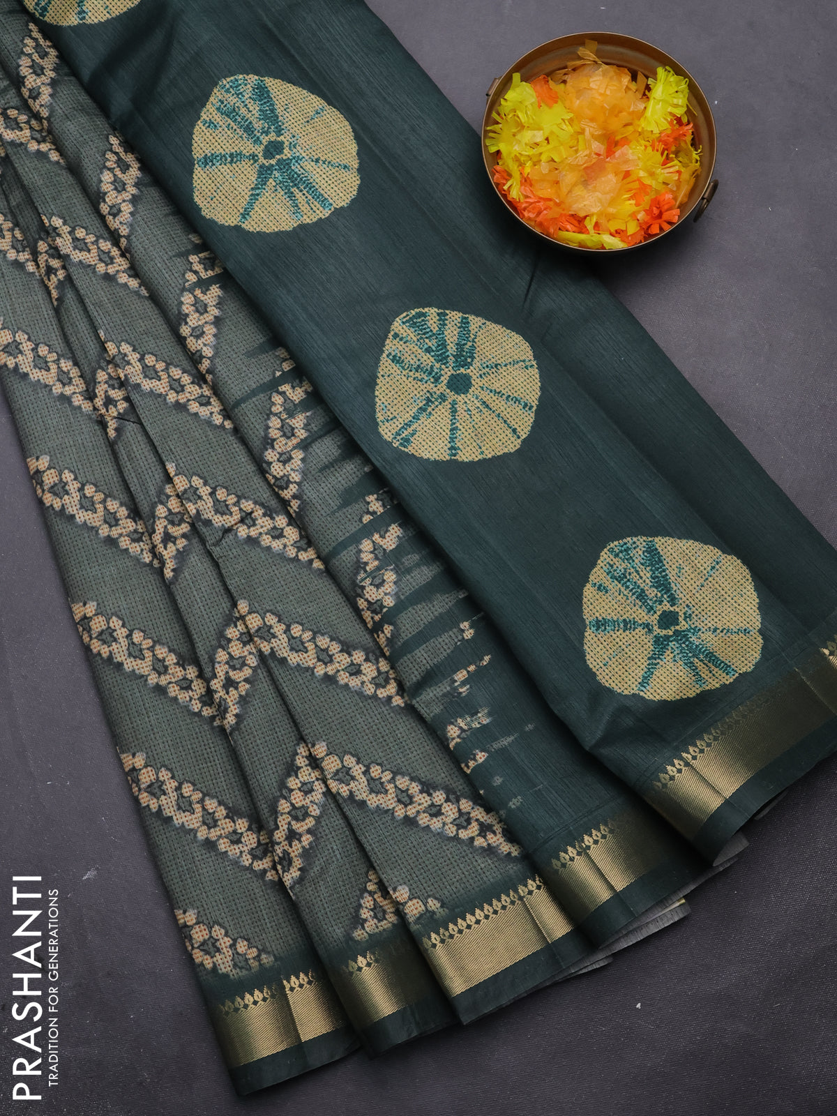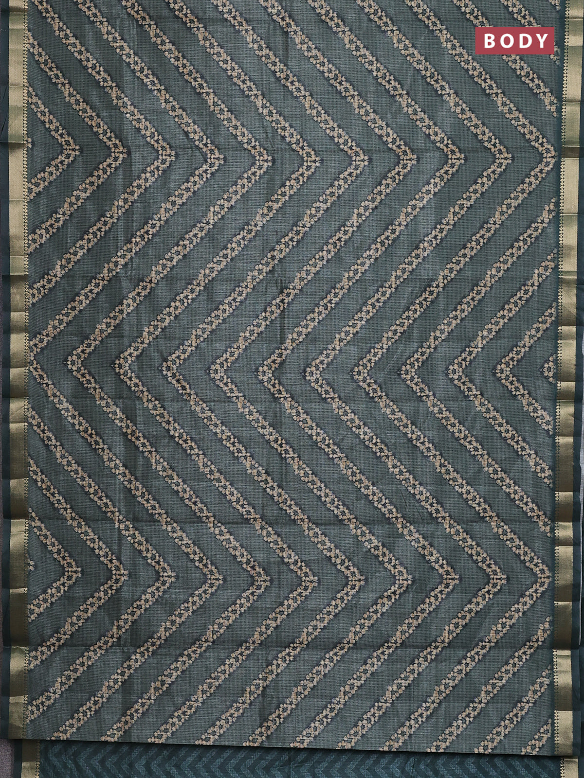 Semi tussar saree green shade with stripes pattern and zari woven border