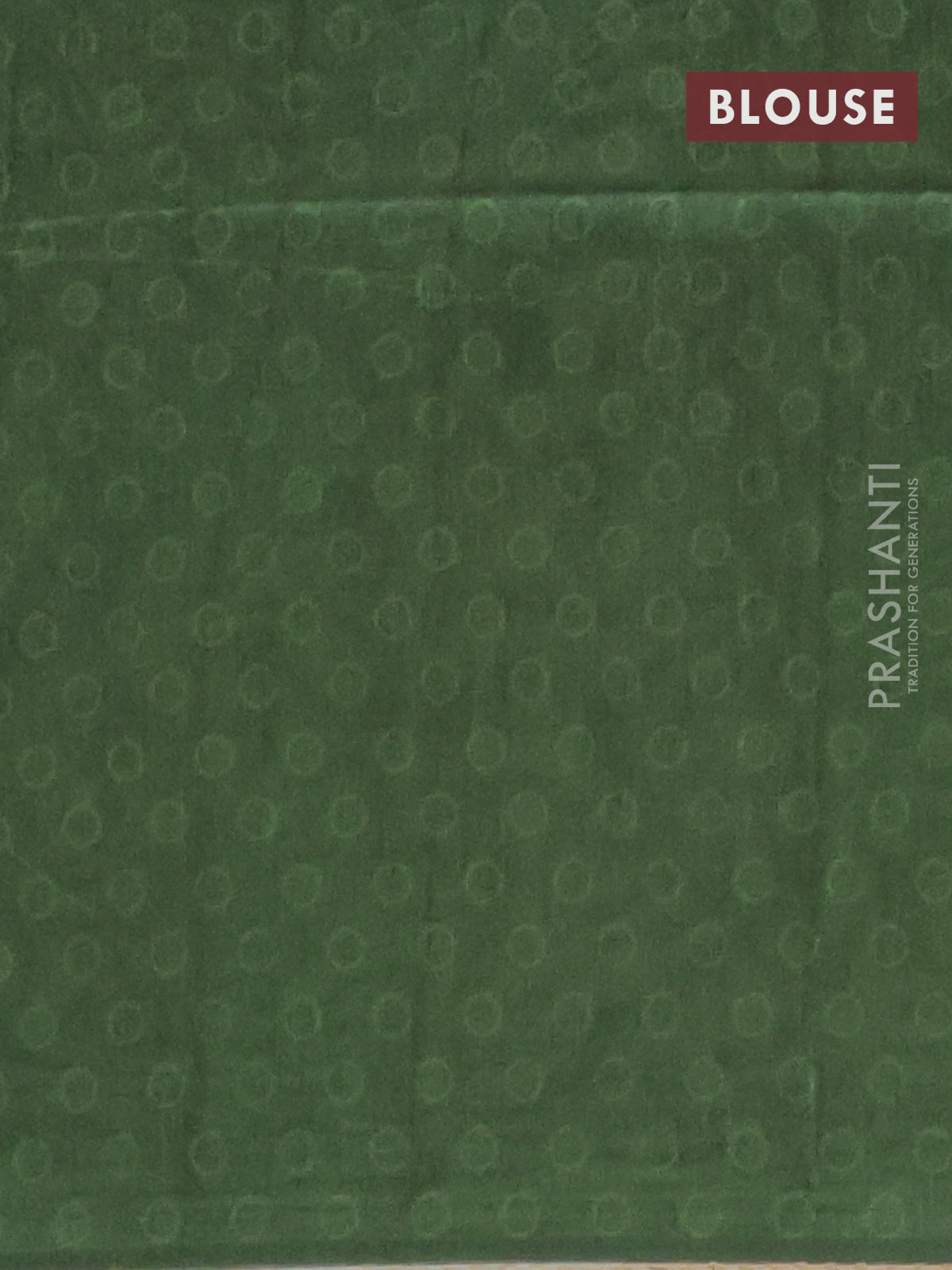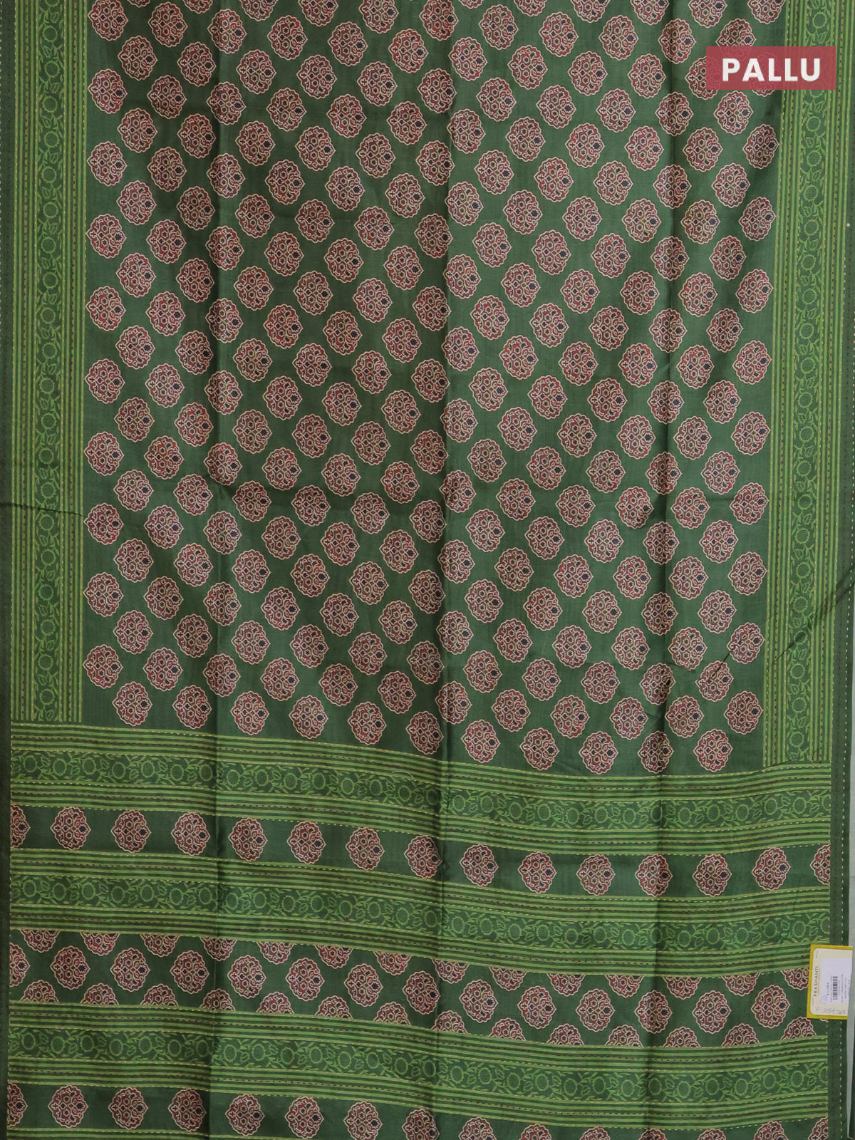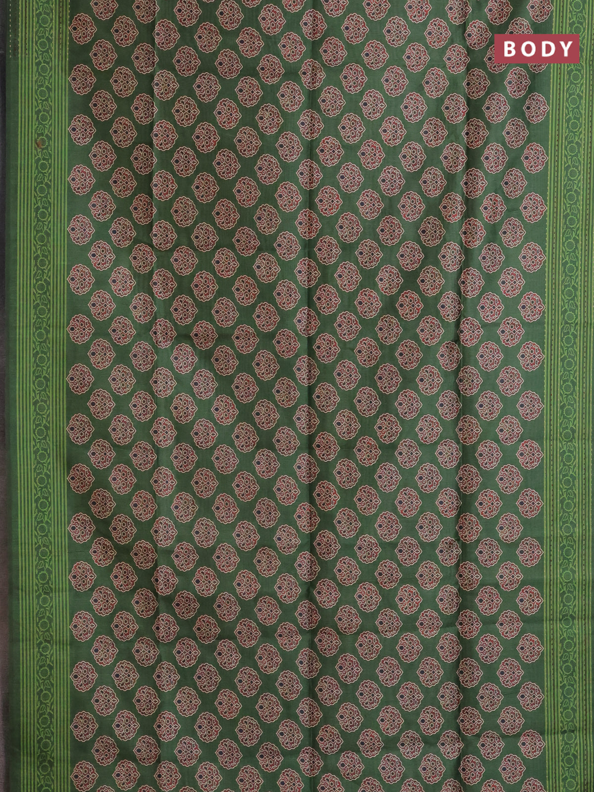 Semi tussar saree green with allover ajrakh butta prints and katha stitch work pallu & border