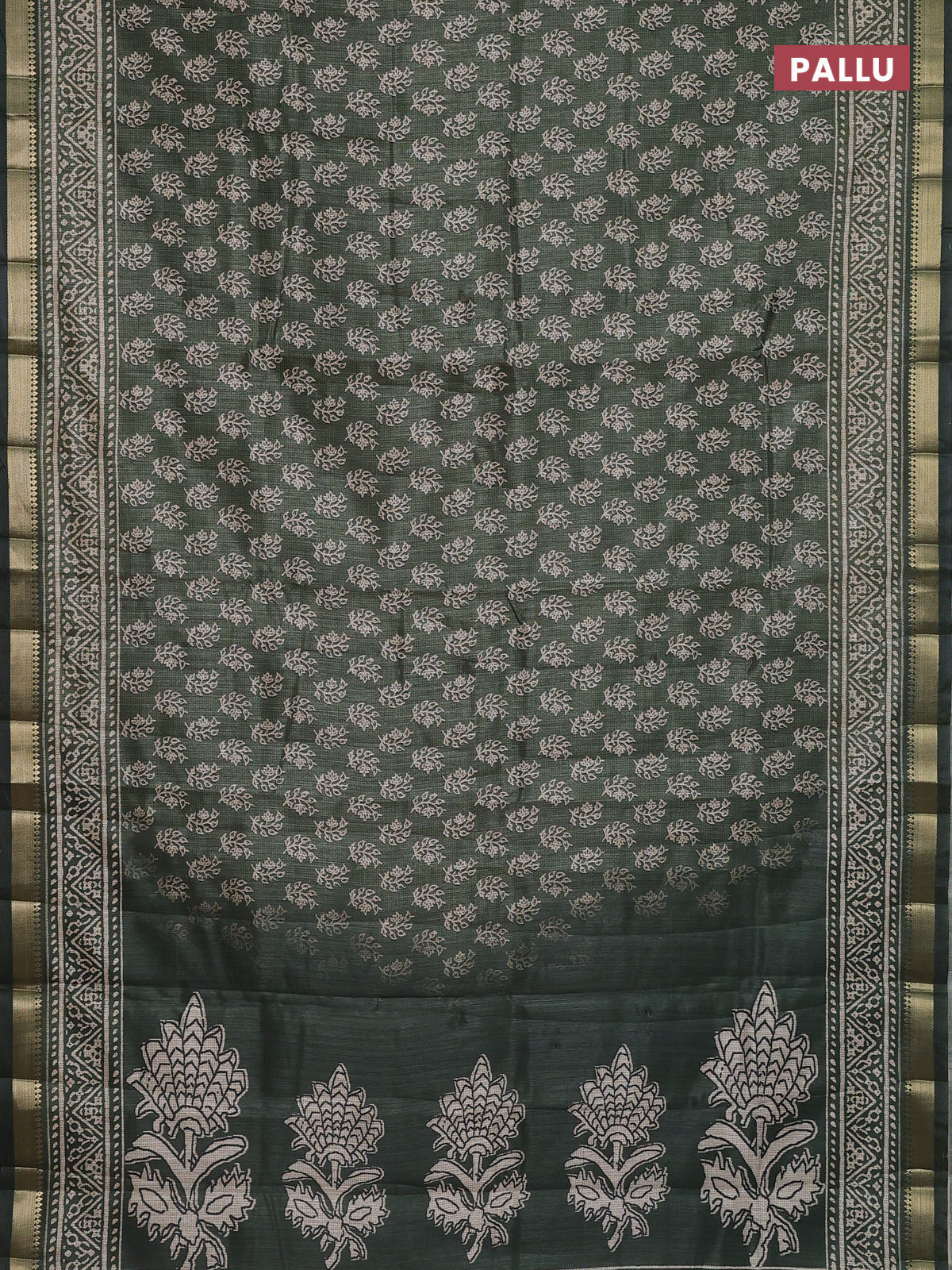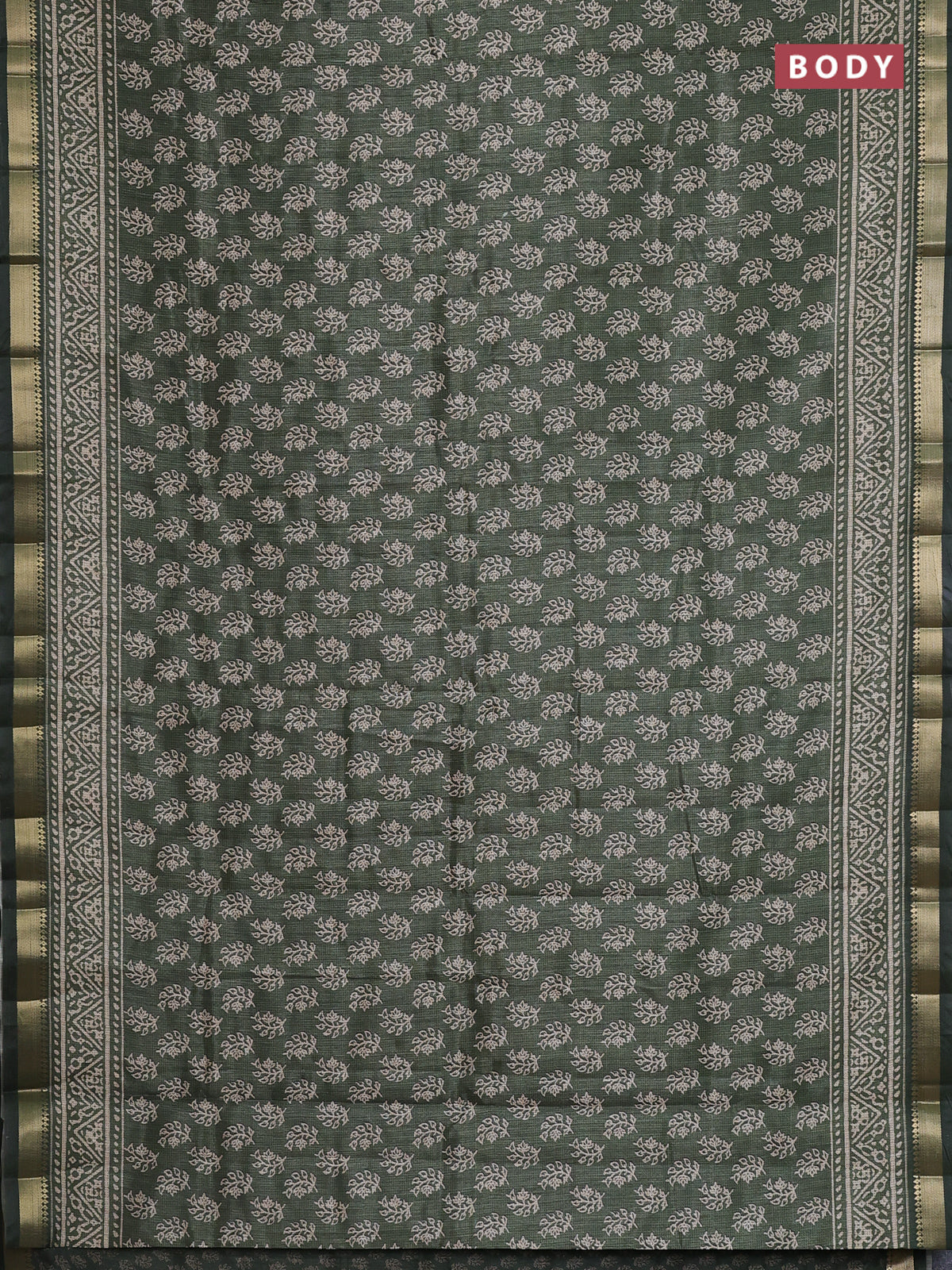 Semi tussar saree green with allover butta prints and zari woven border