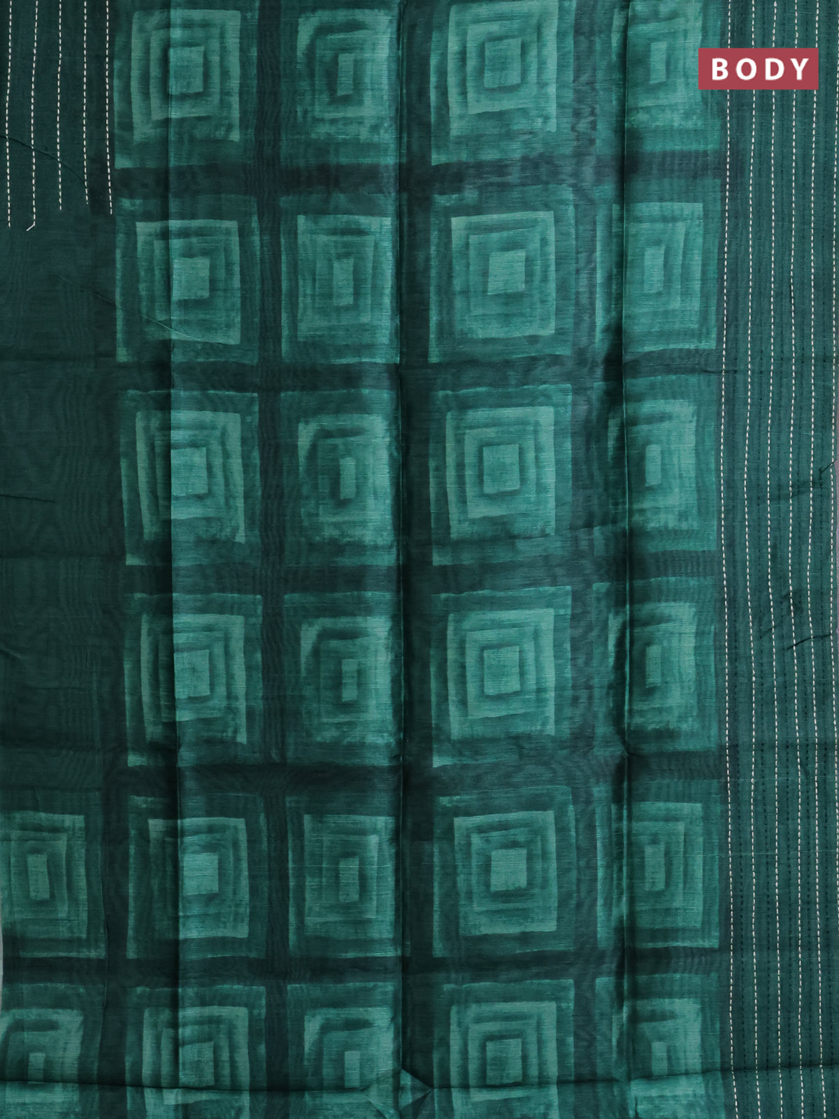Semi tussar saree green with allover geometric prints and katha stitch work pallu & border