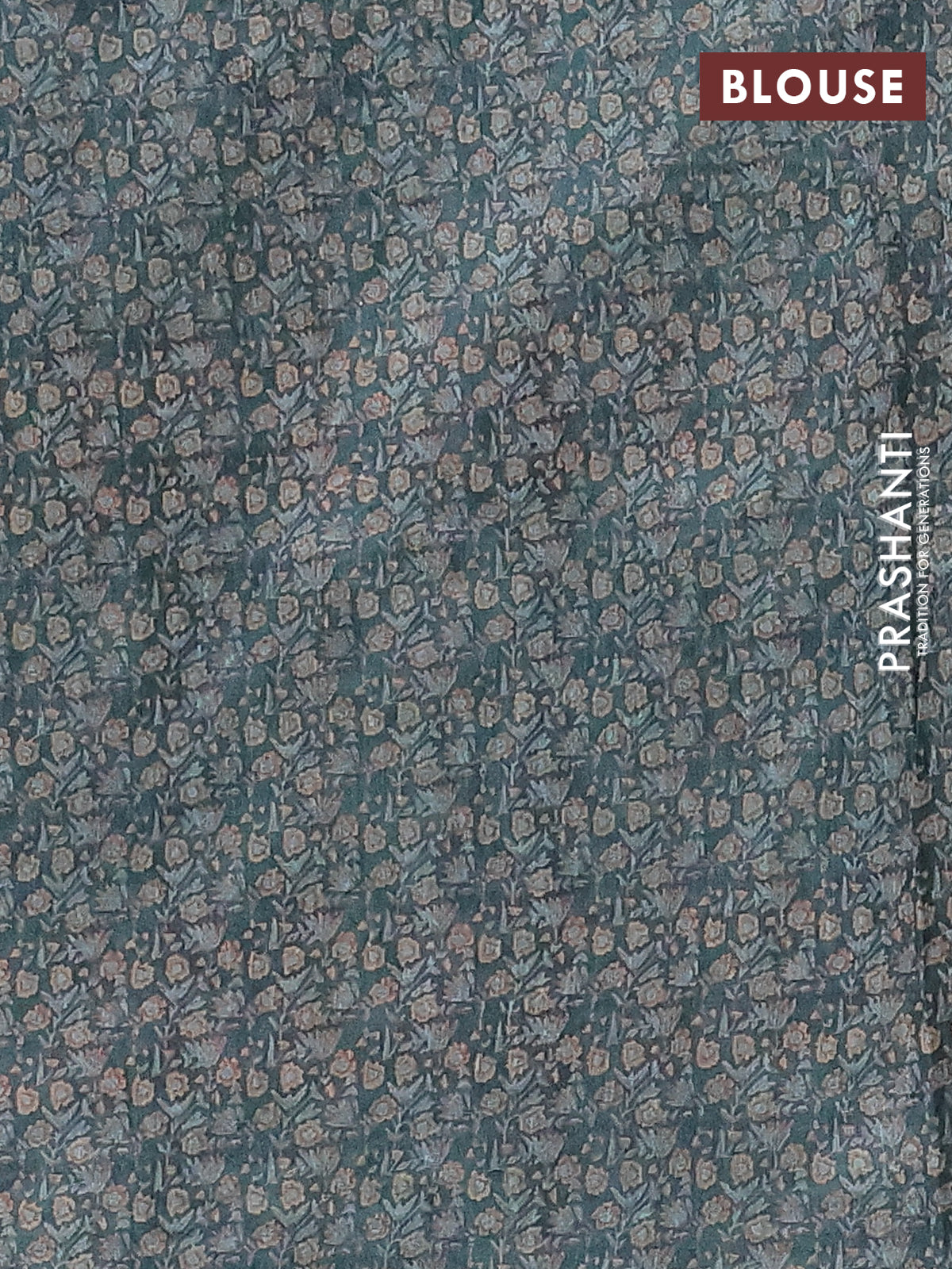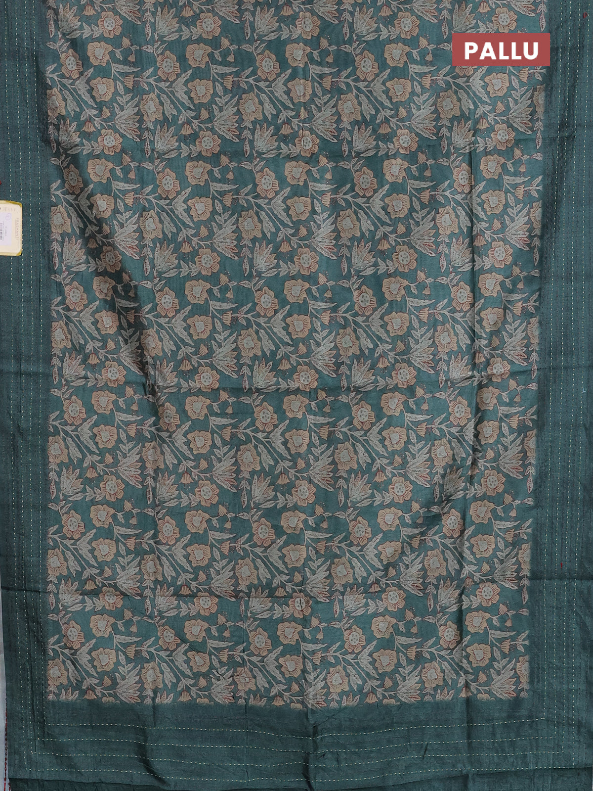 Semi tussar saree green with allover kalamkari prints and kantha stitch work border