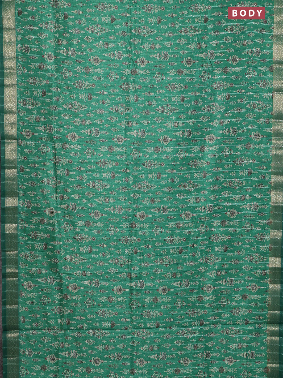 Semi tussar saree green with allover prints & sequin work and zari woven border