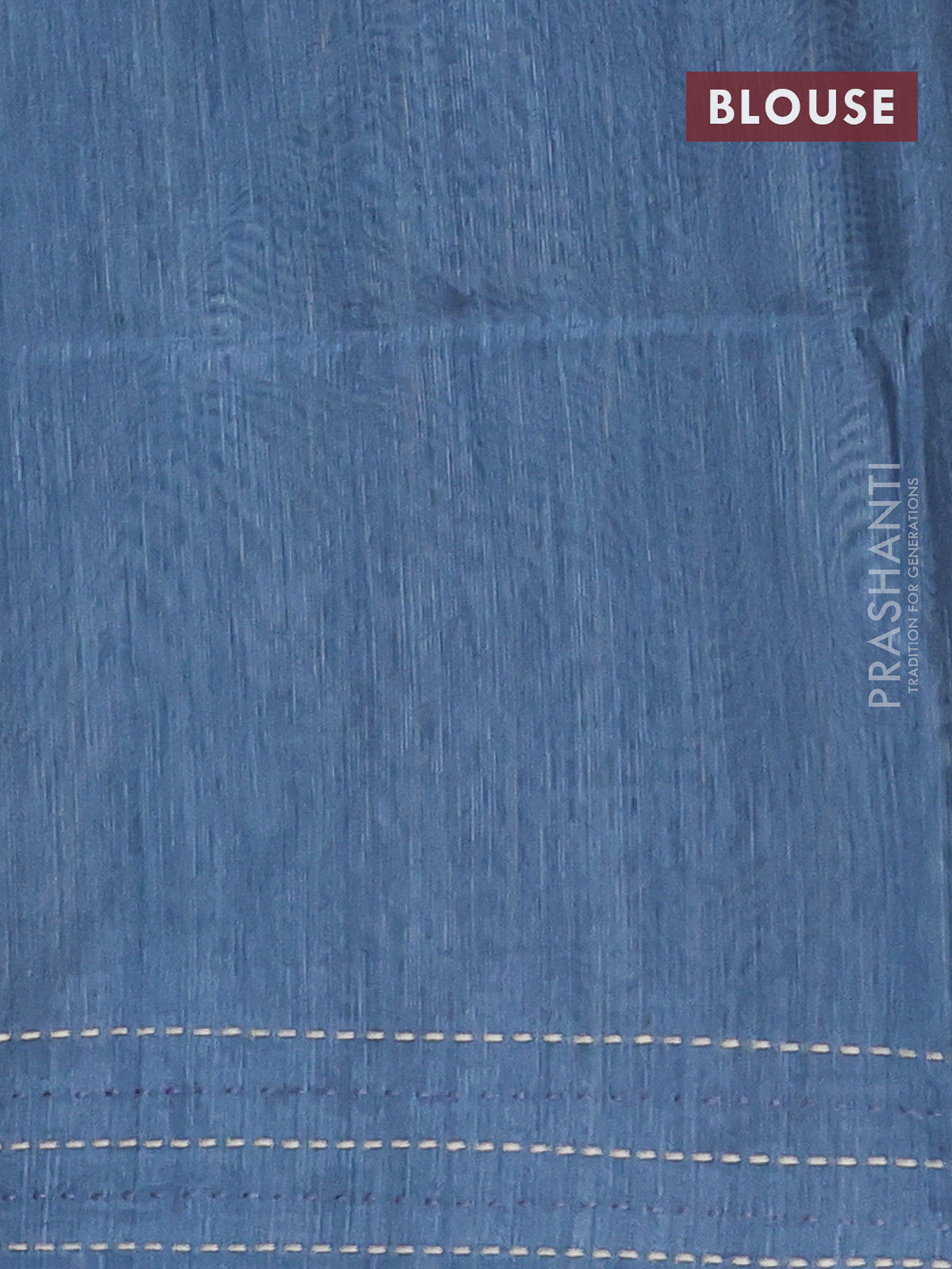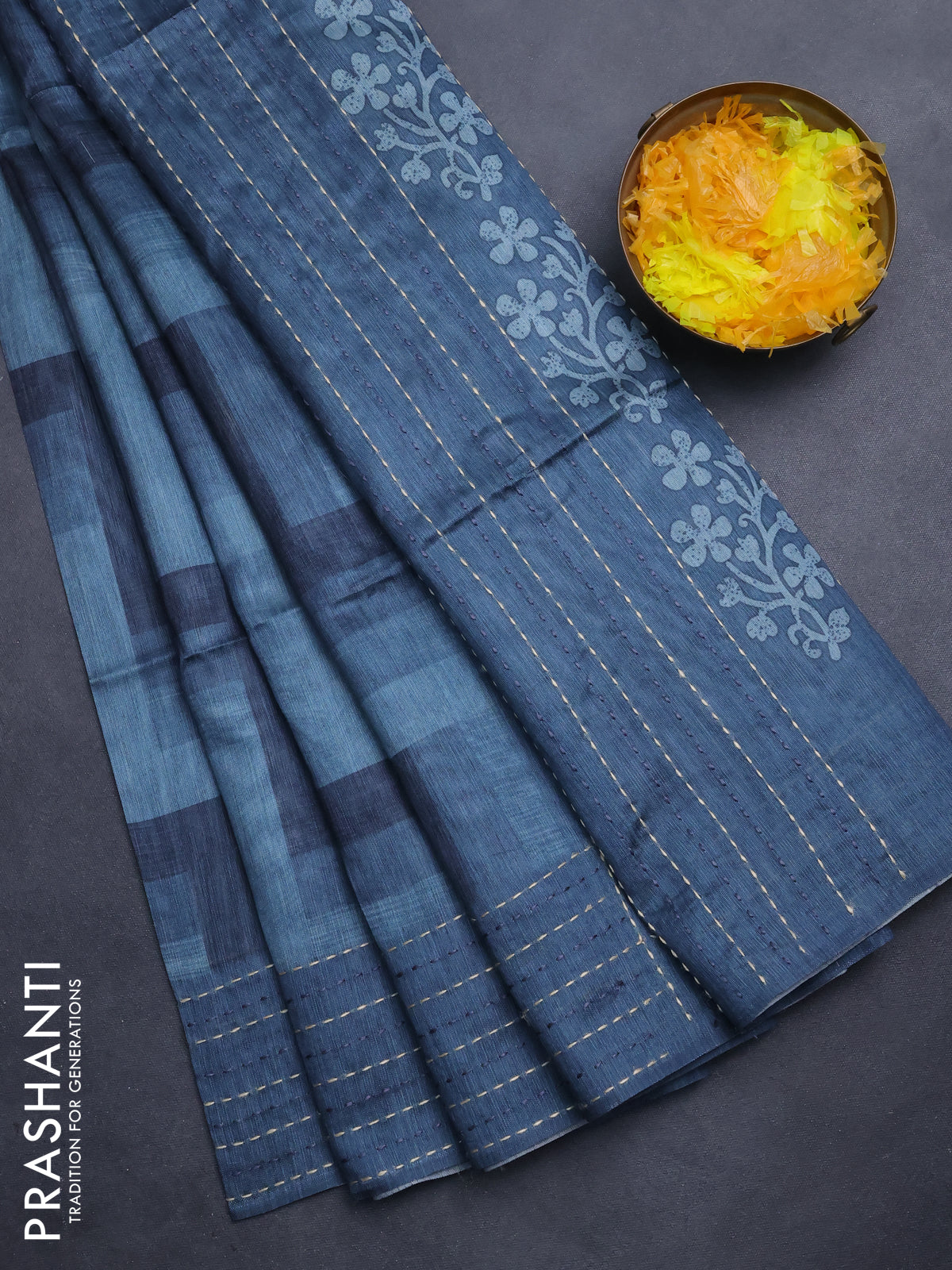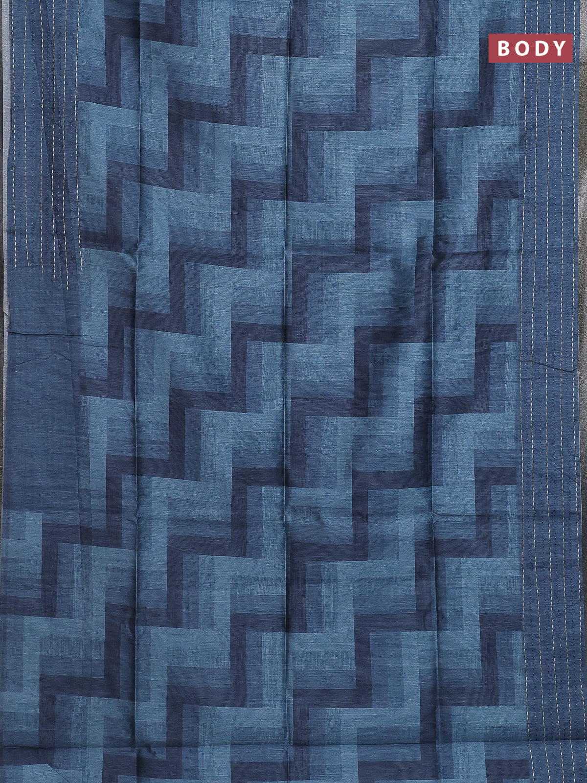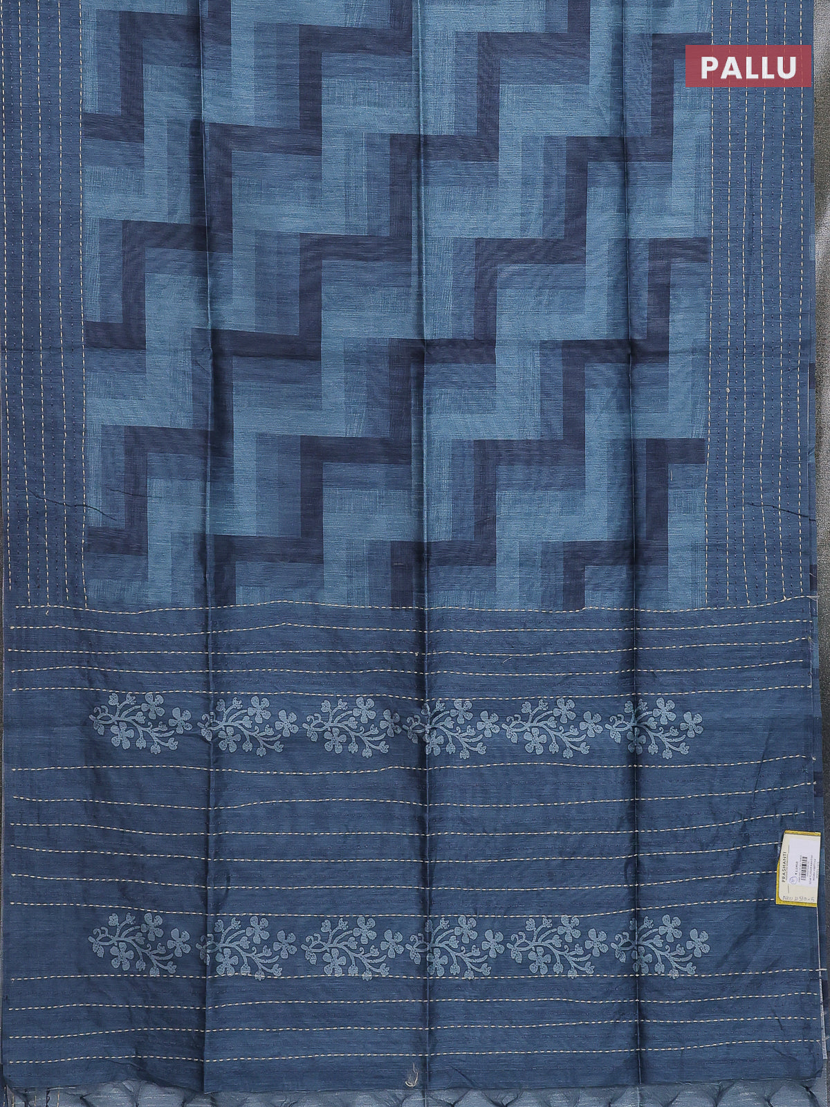 Semi tussar saree grey and dark grey with allover zig zag prints and katha stitch work pallu & border