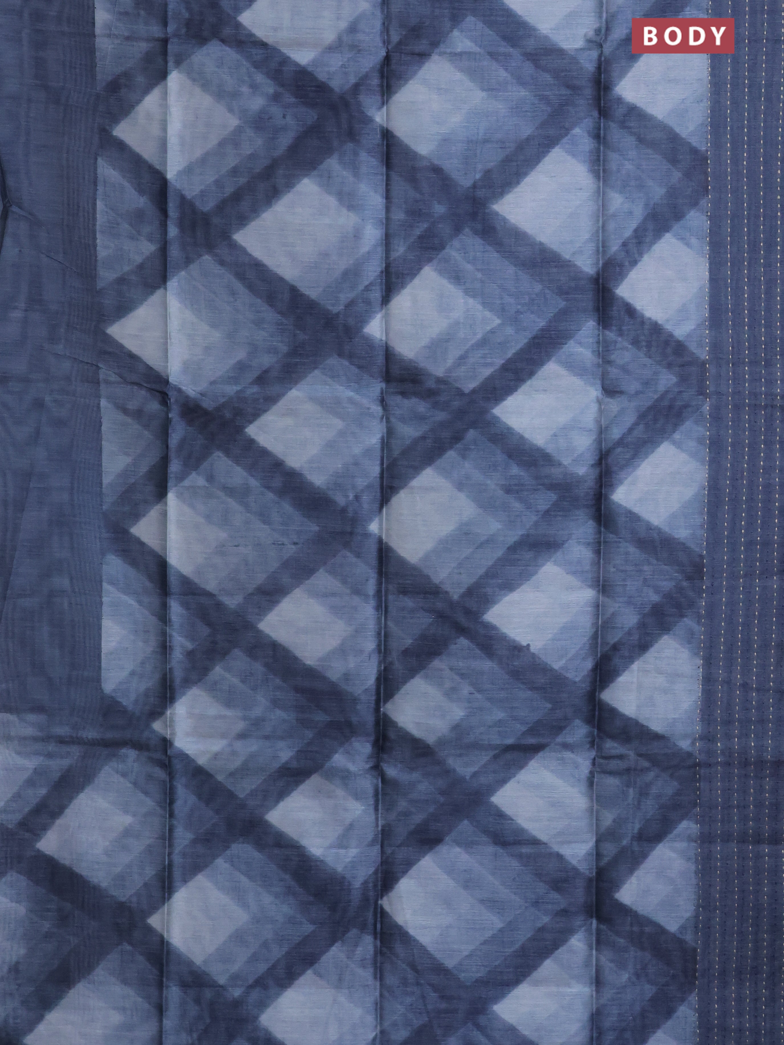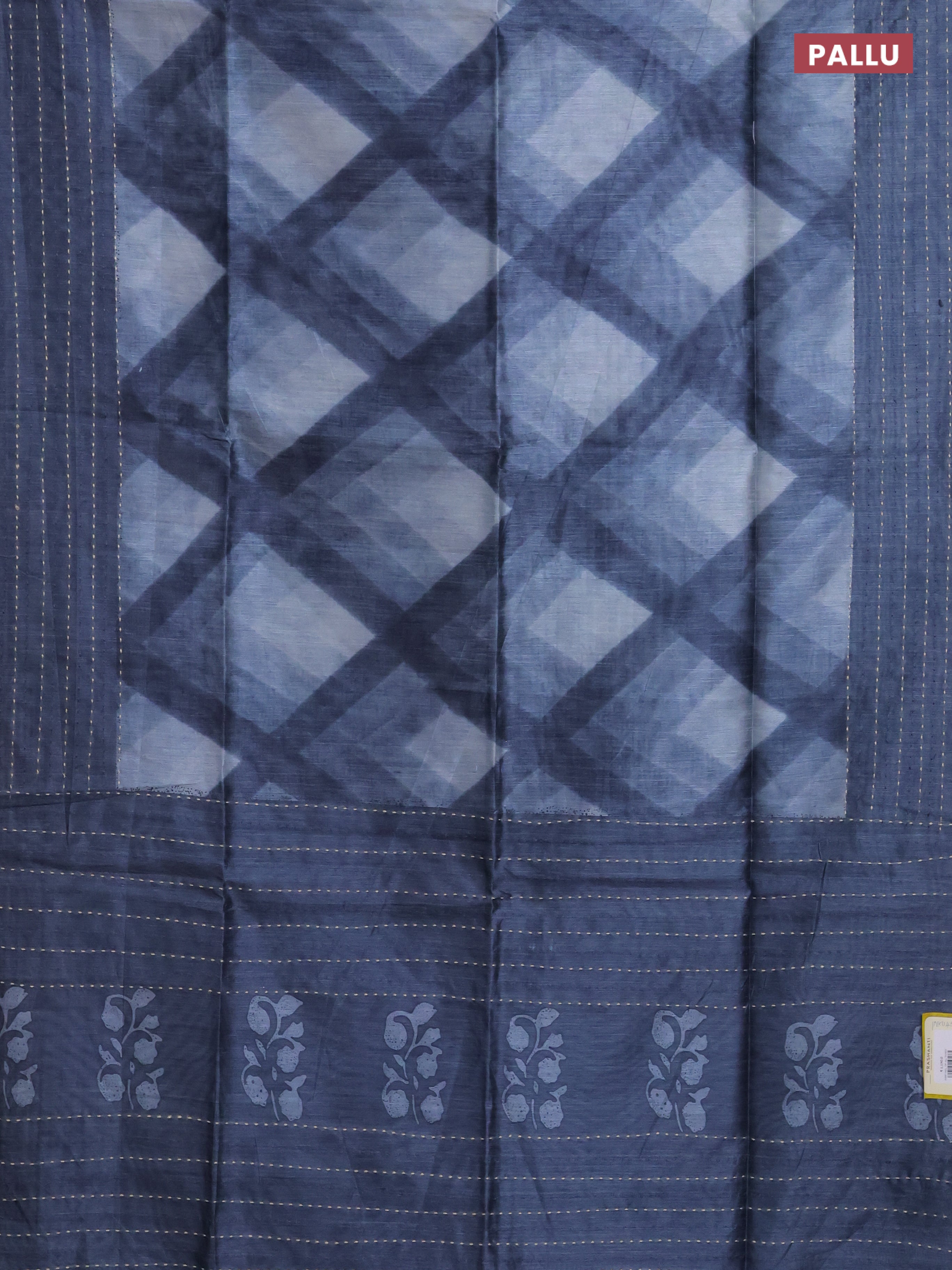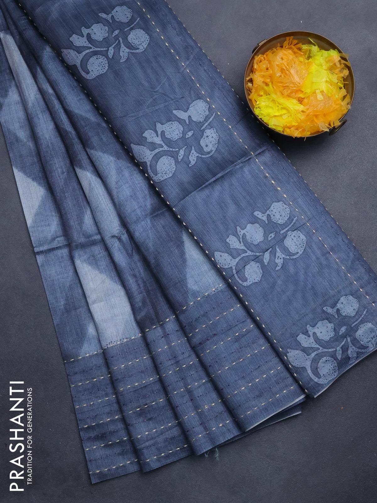 Semi tussar saree grey with allover geometric prints and katha stitch work pallu & border