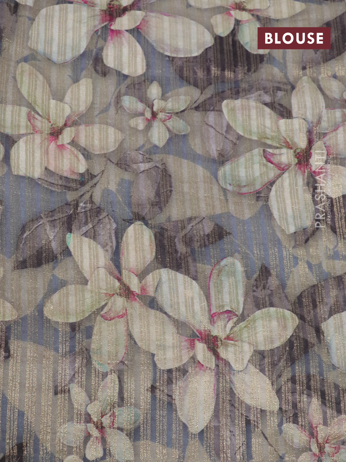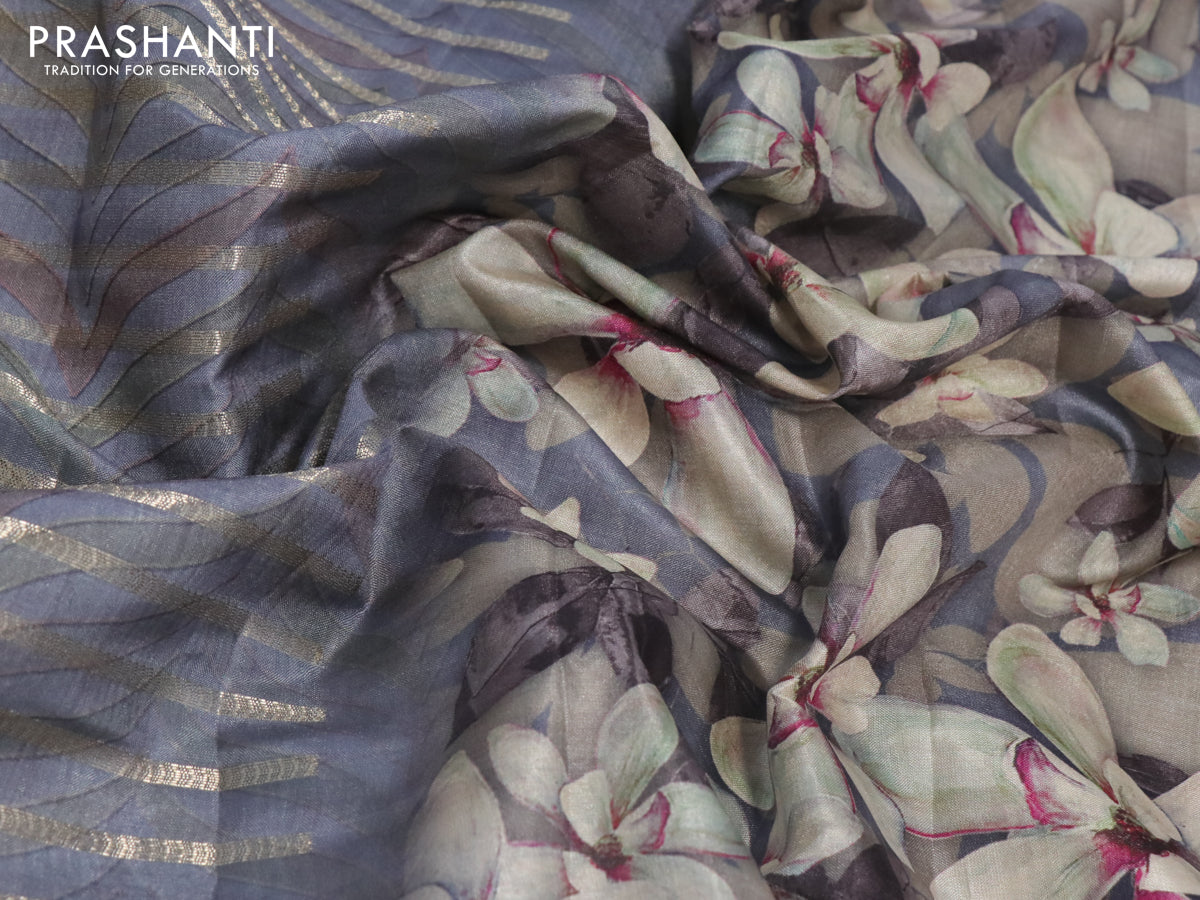 Semi tussar saree grey with allover zari woven veldhari design & prints and floral printed border