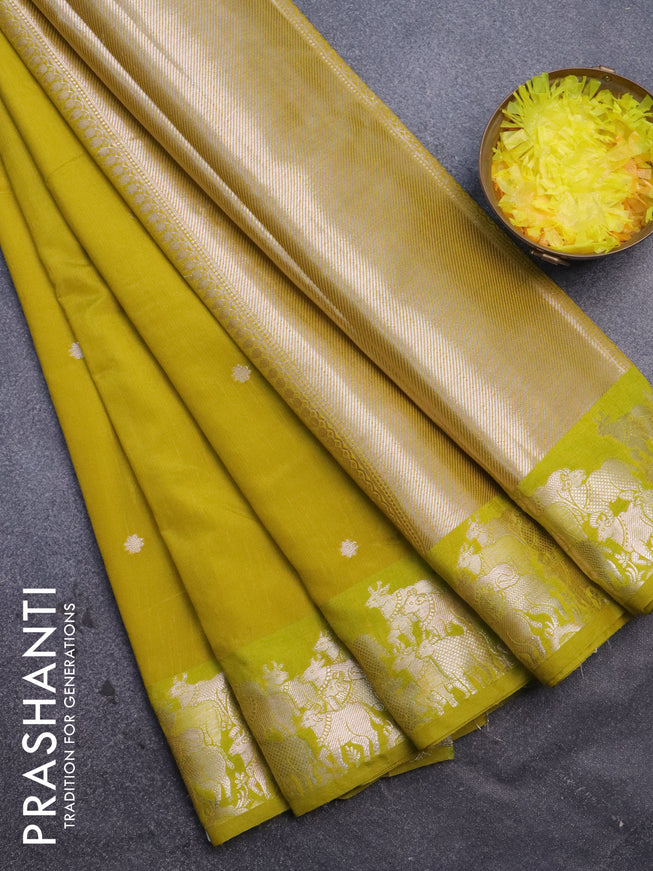 Semi tussar saree lime yellow with allover digital prints and chikankari work border