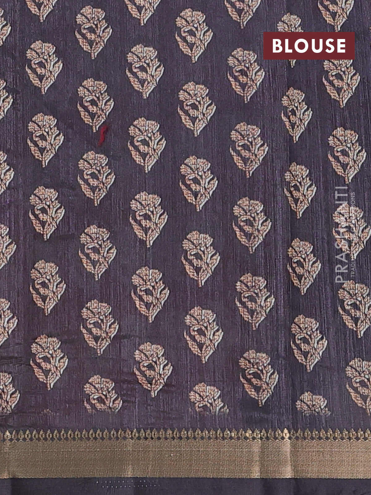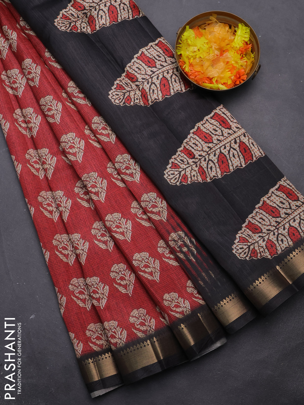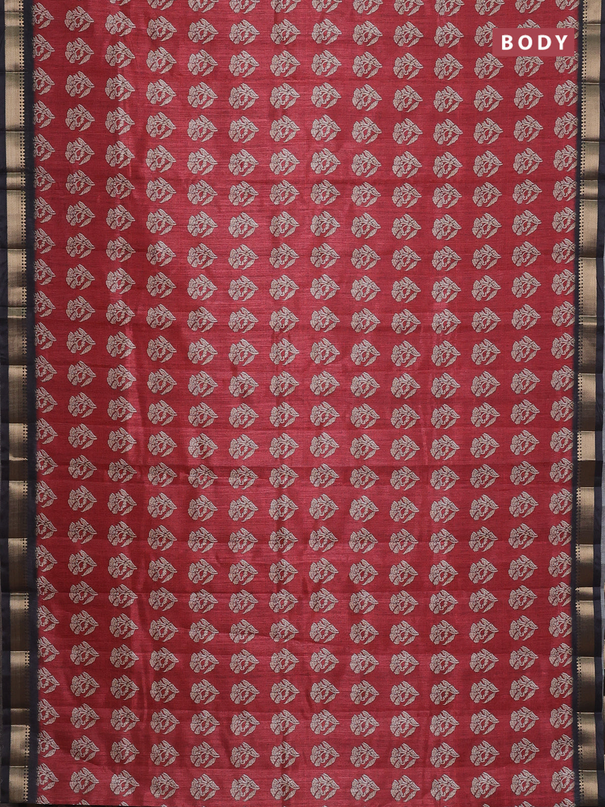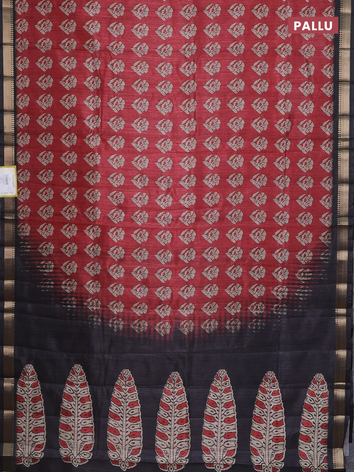 Semi tussar saree maroon and black with butta prints and zari woven border
