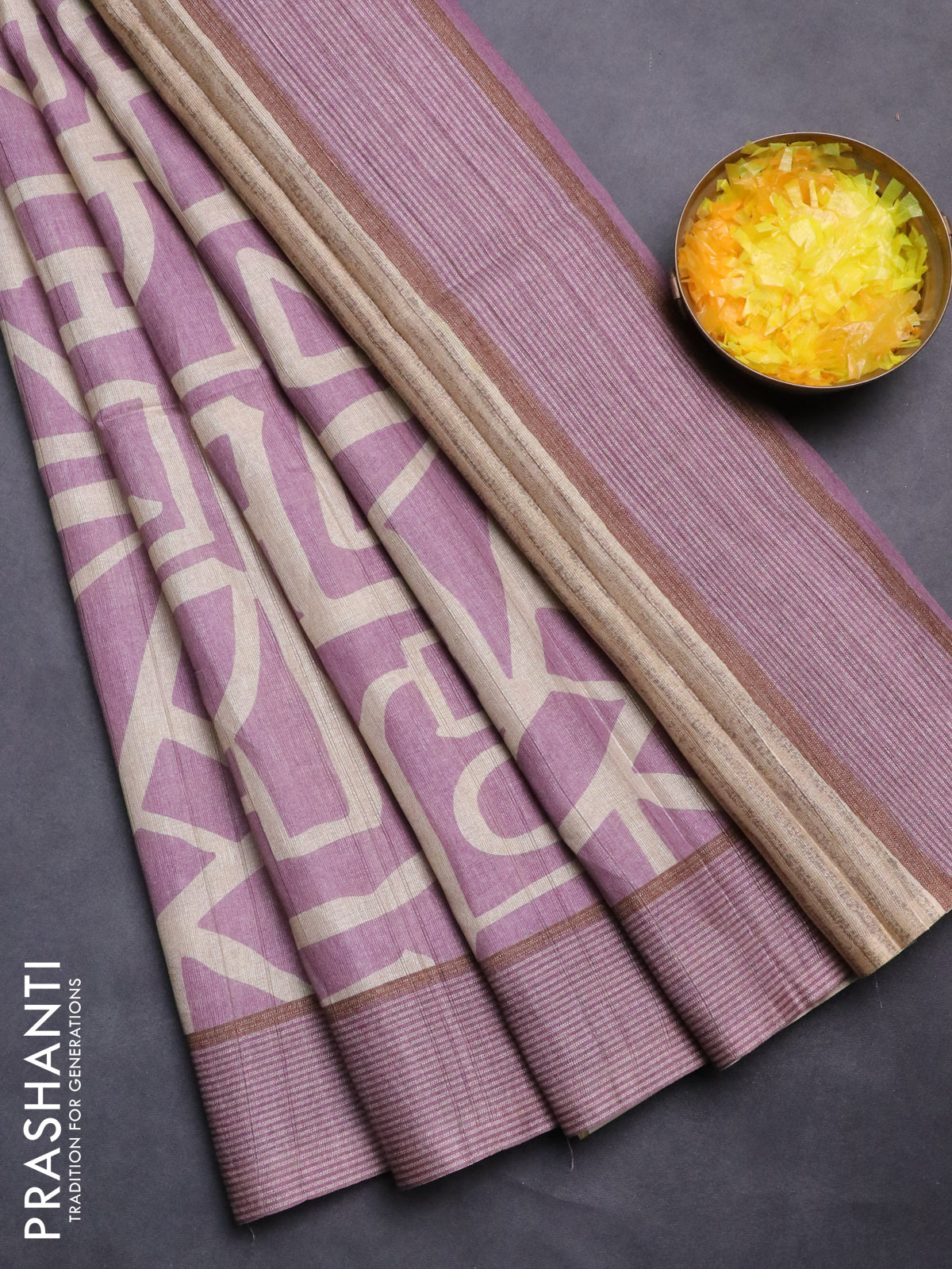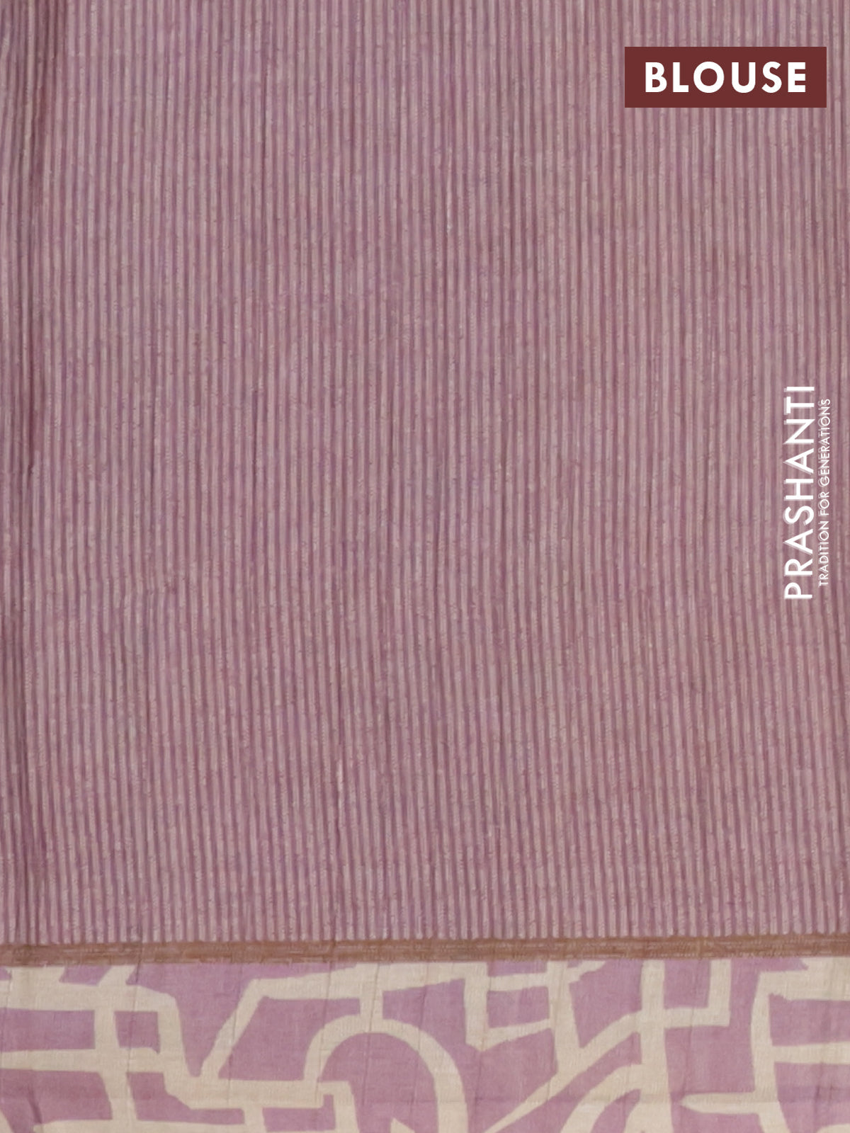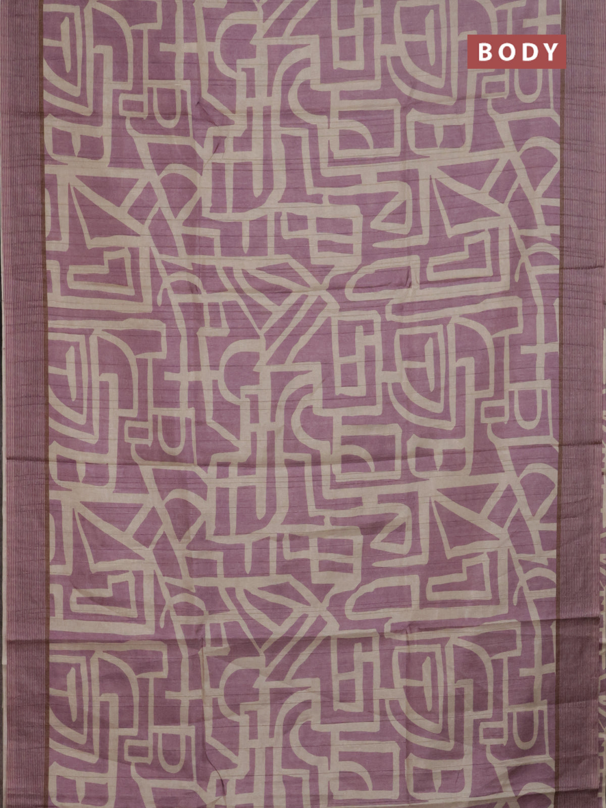 Semi tussar saree mauve pink and beige with geometric prints and simple border