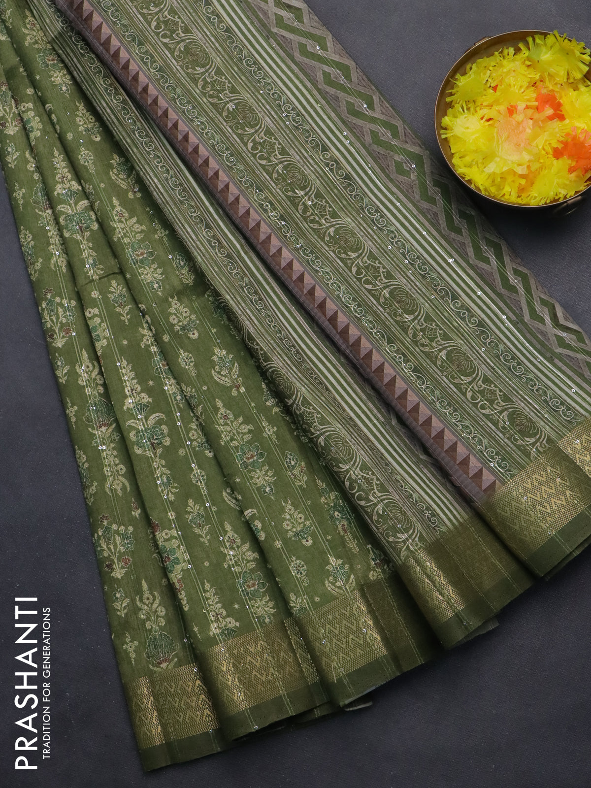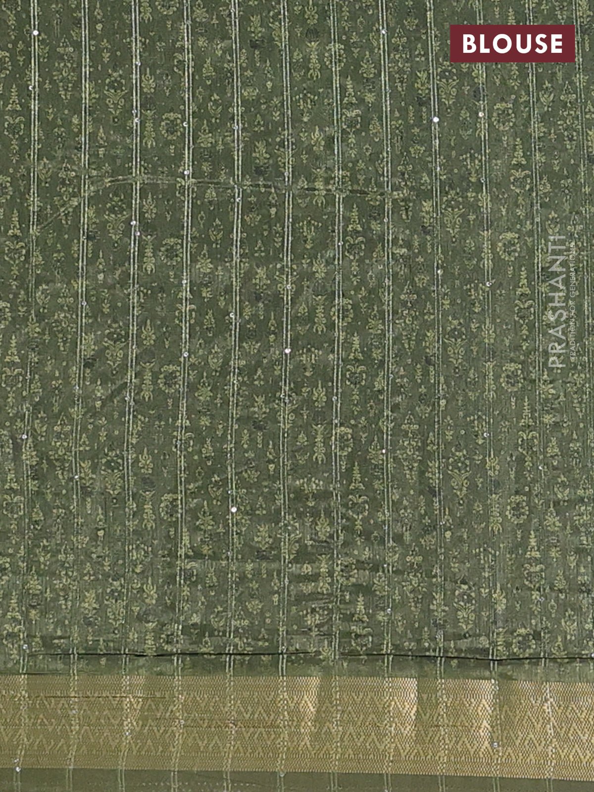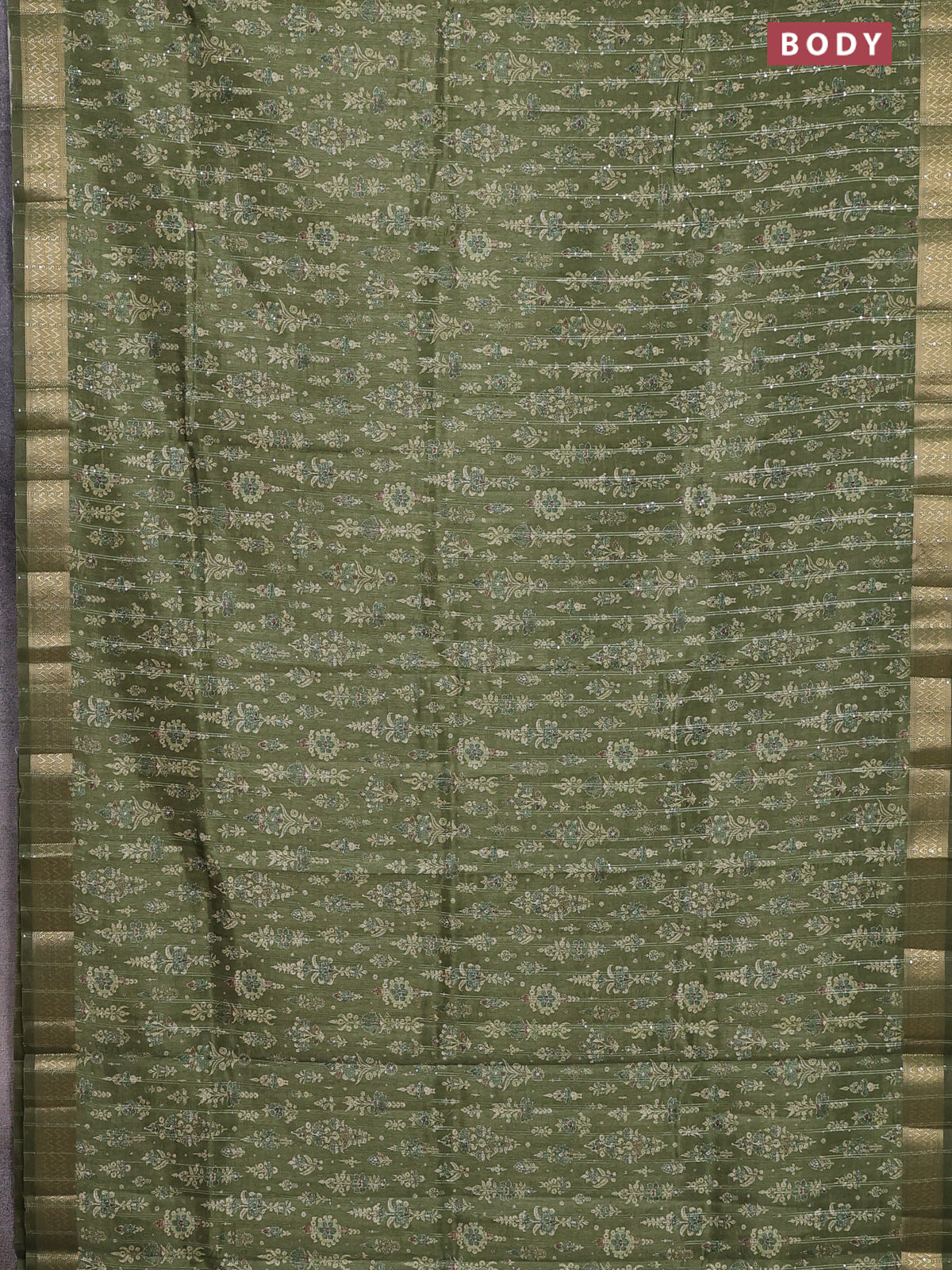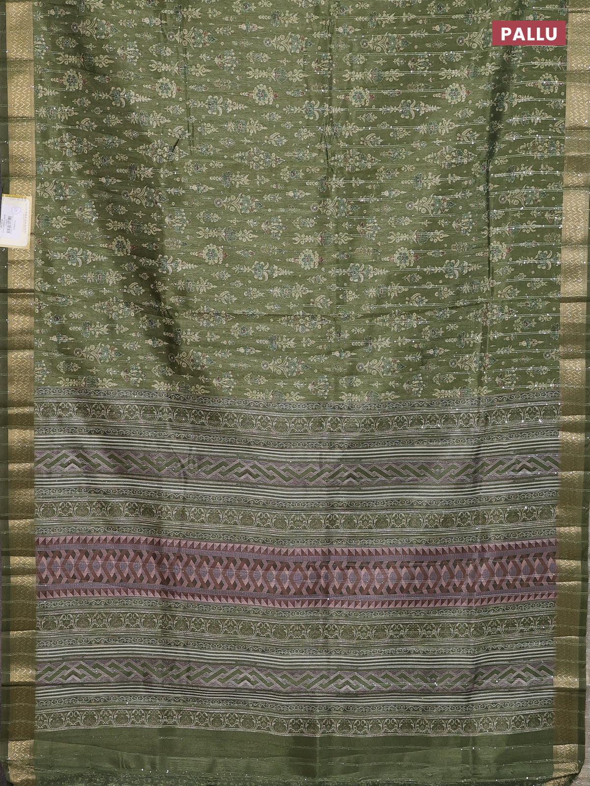 Semi tussar saree mehendi green with allover prints & sequin work and zari woven border