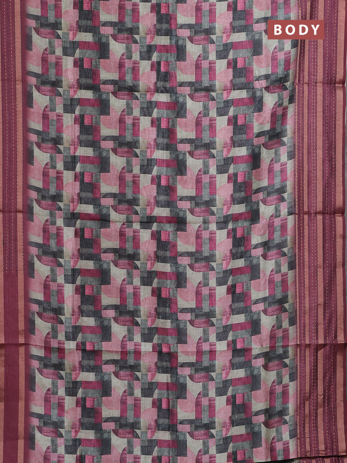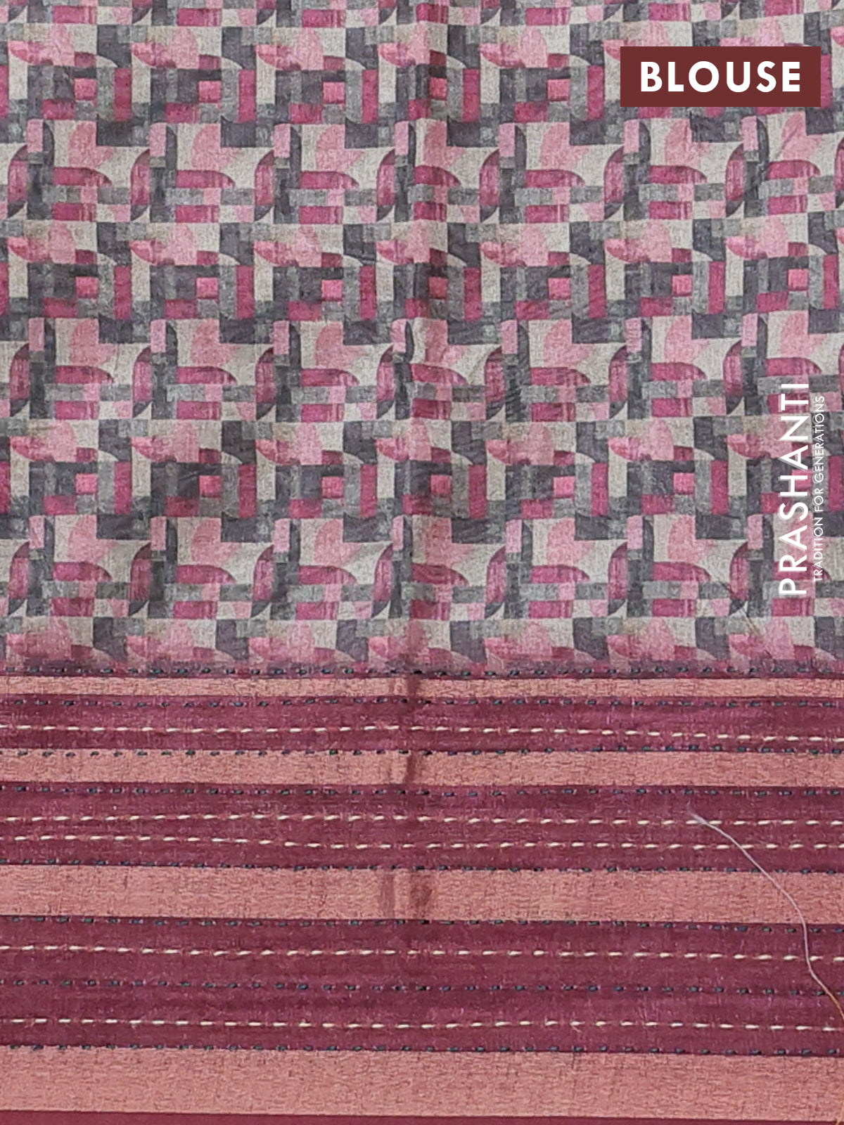 Semi tussar saree multi colour and maroon with allover geometrc prints and kantha stitch work border