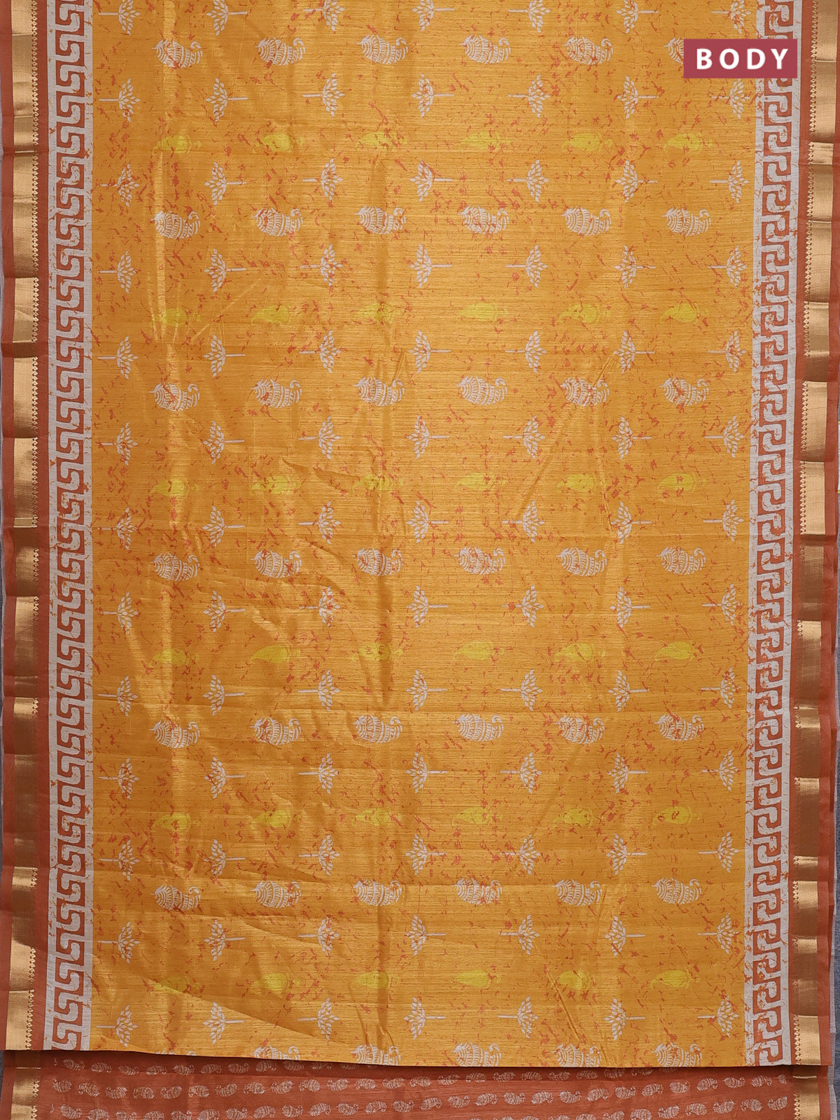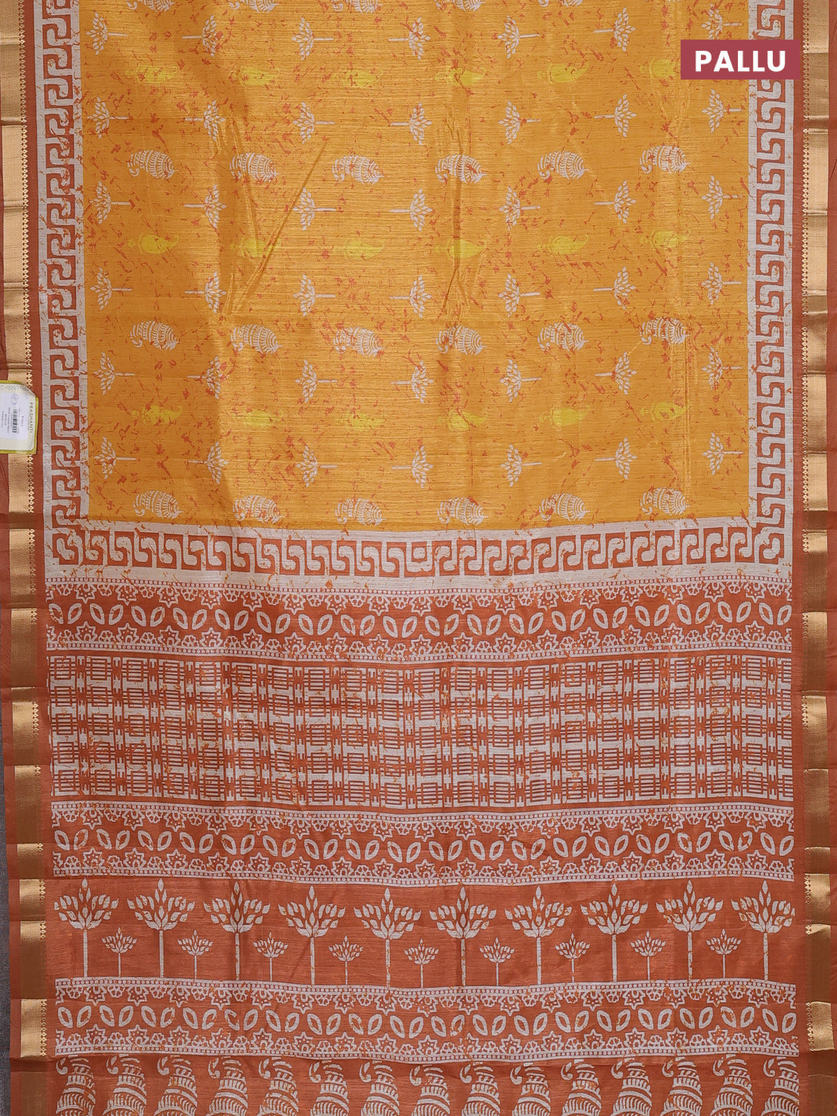 Semi tussar saree mustard yellow with butta prints and zari woven border