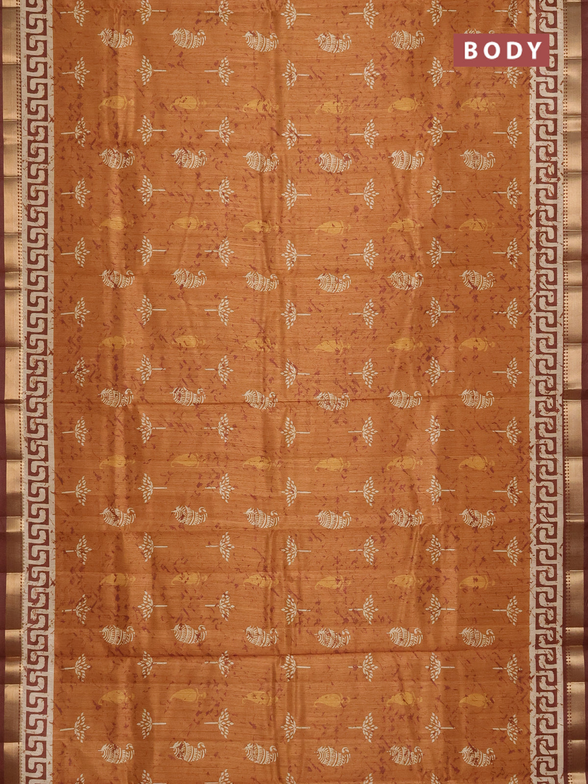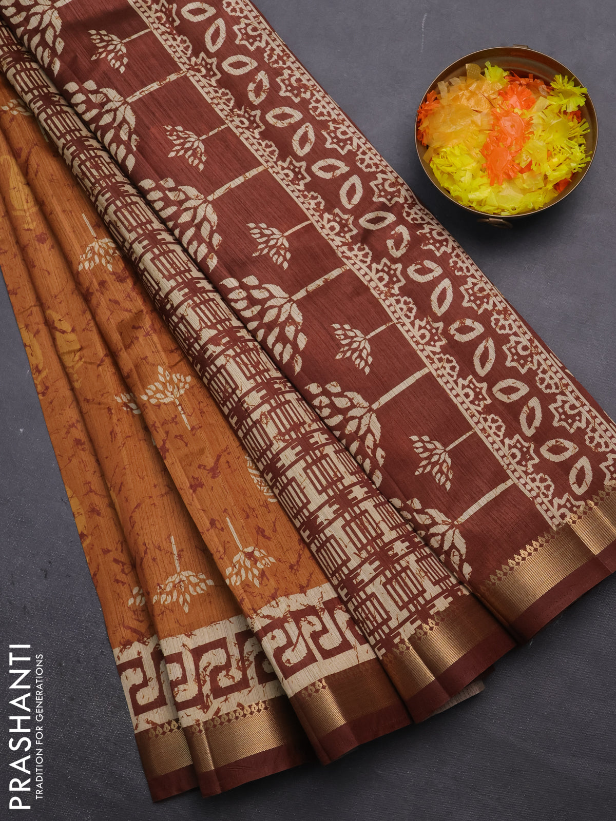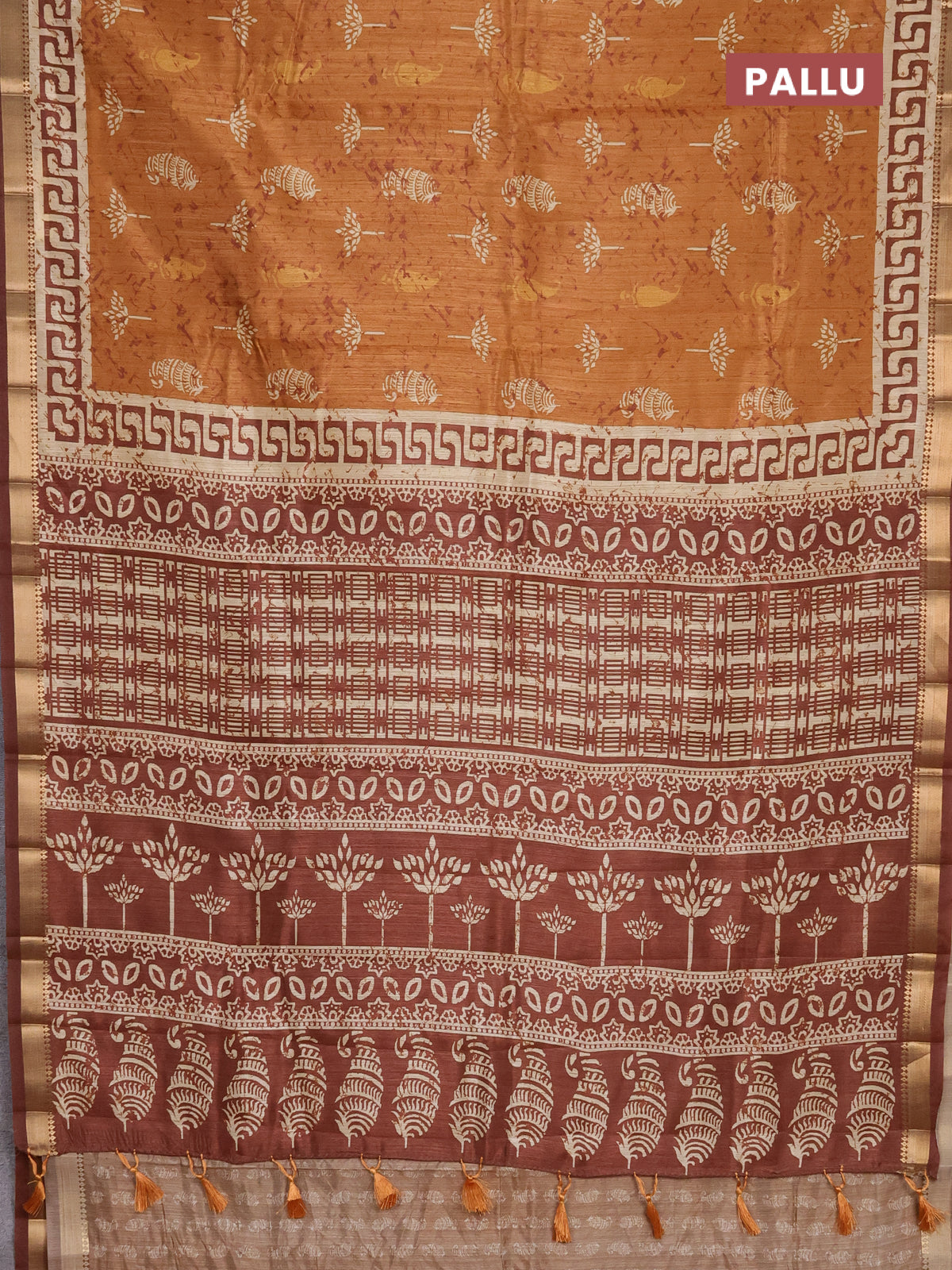 Semi tussar saree mustard yellow with butta prints and zari woven border