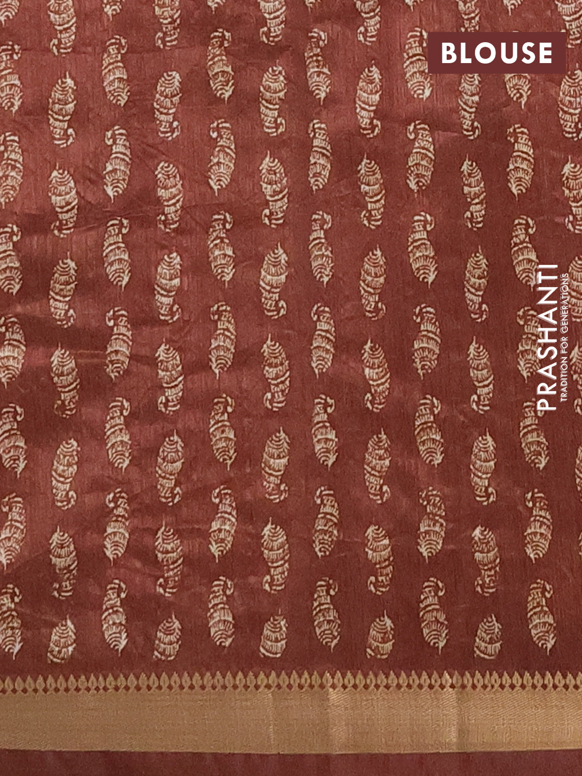 Material : Semi Tussar Blouse : Attached Length of saree : 6.2 mts (5.5 mts saree & 70 cms blouse)... Read more