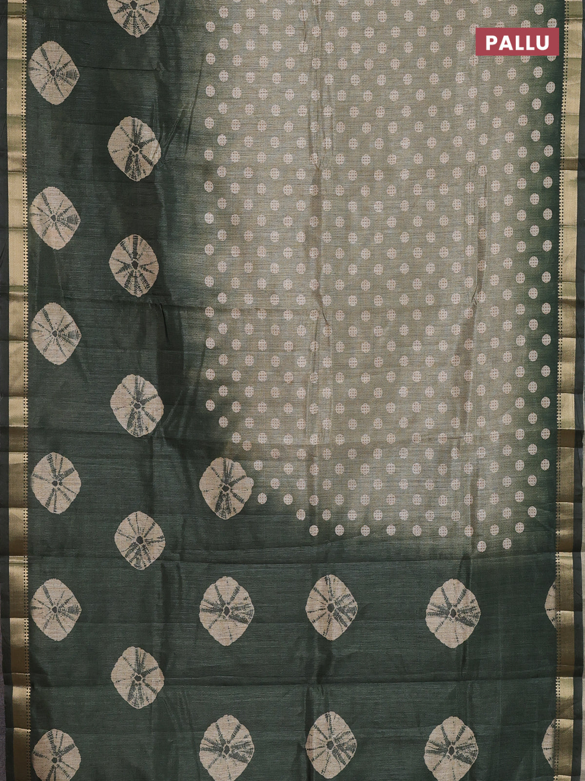 Semi tussar saree pastel green and sap green with butta prints and zari woven border