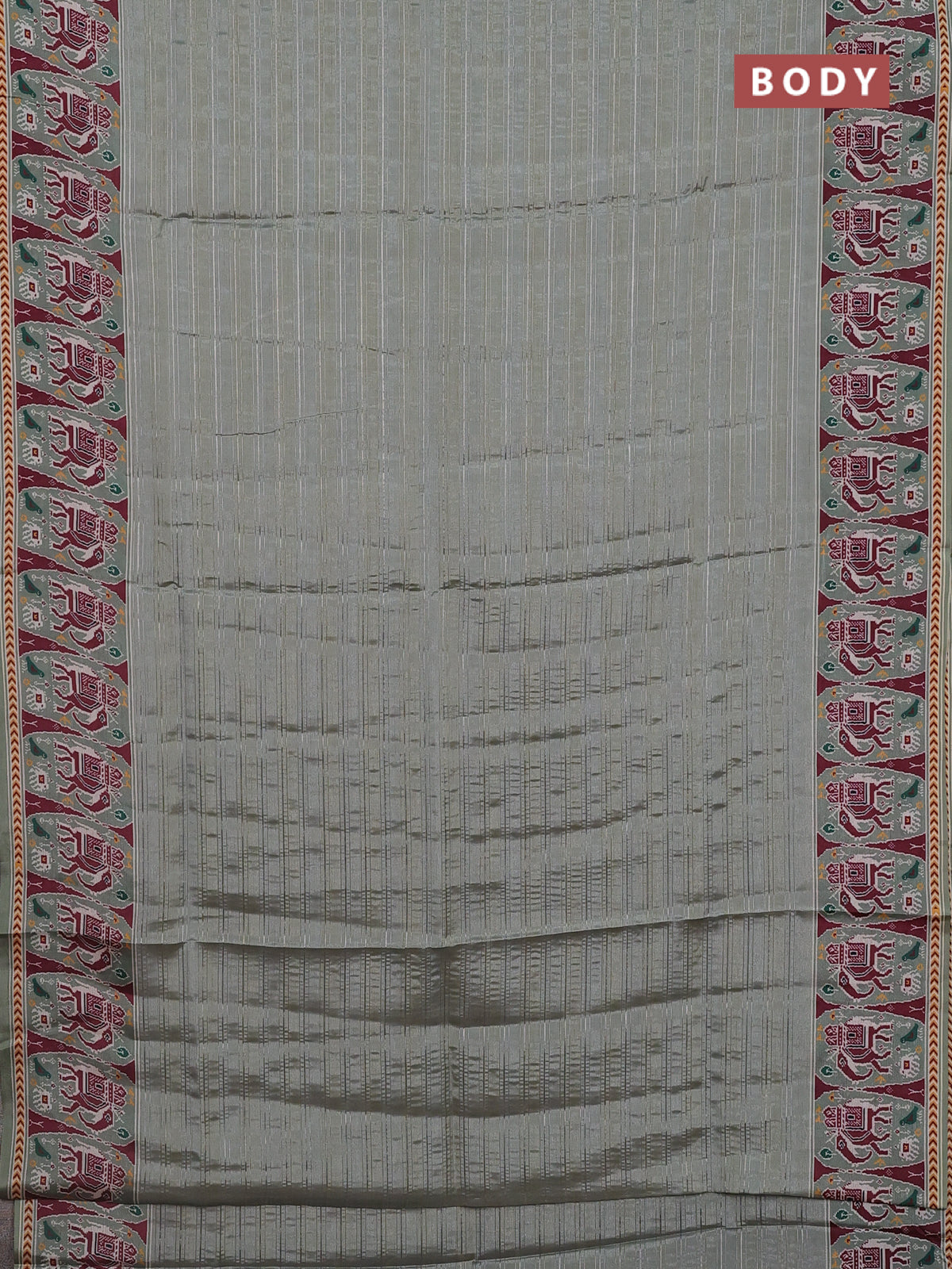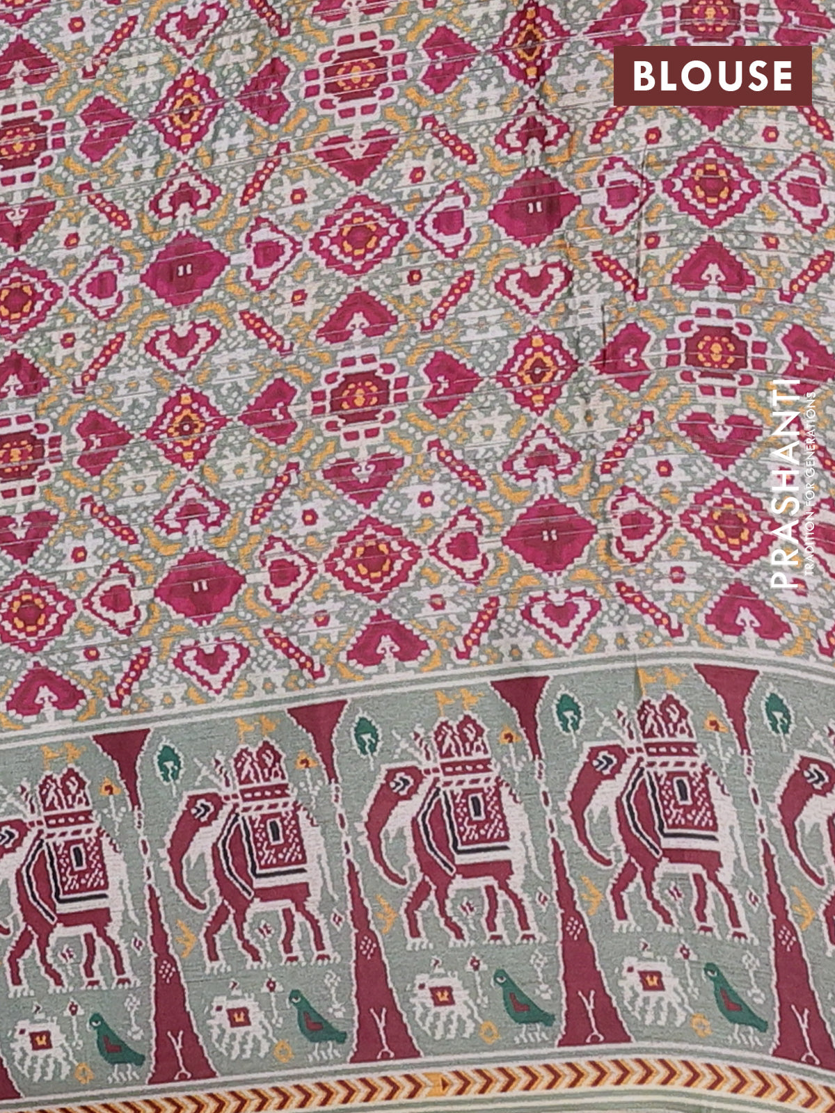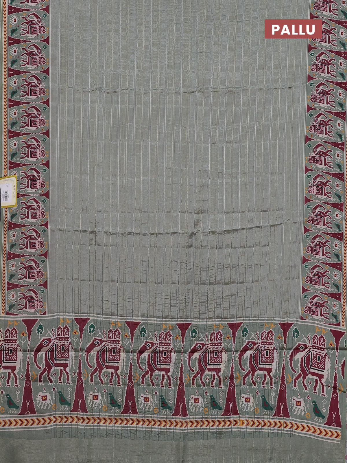 Semi tussar saree pastel green with zari stripes pattern and patola printed border