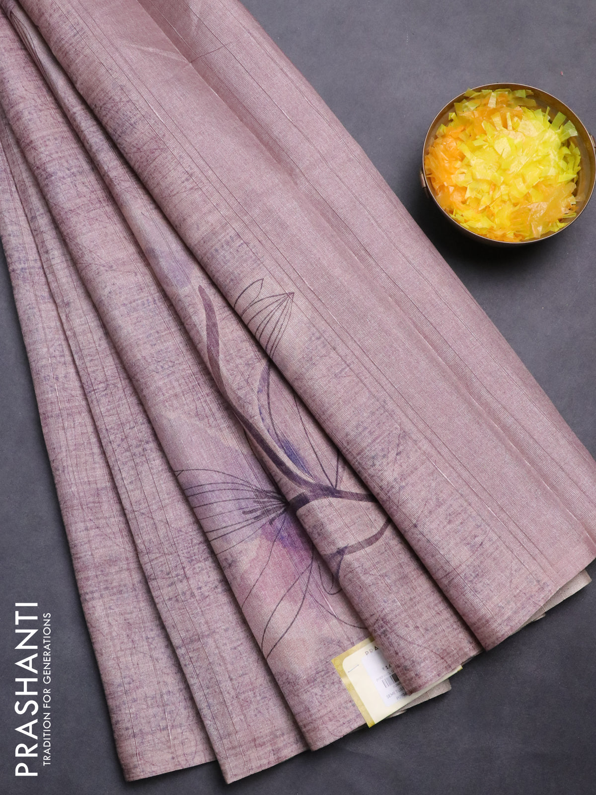Semi tussar saree pastel pink with floral digital prints in borderless style