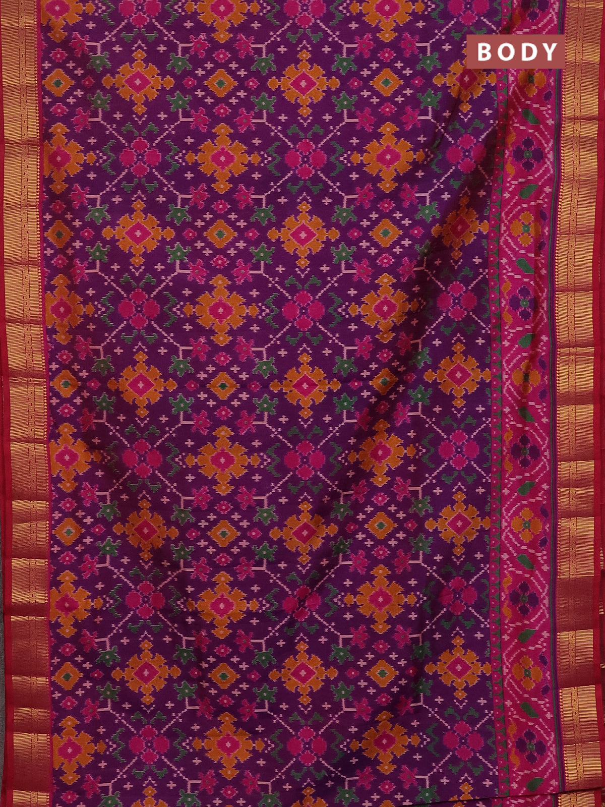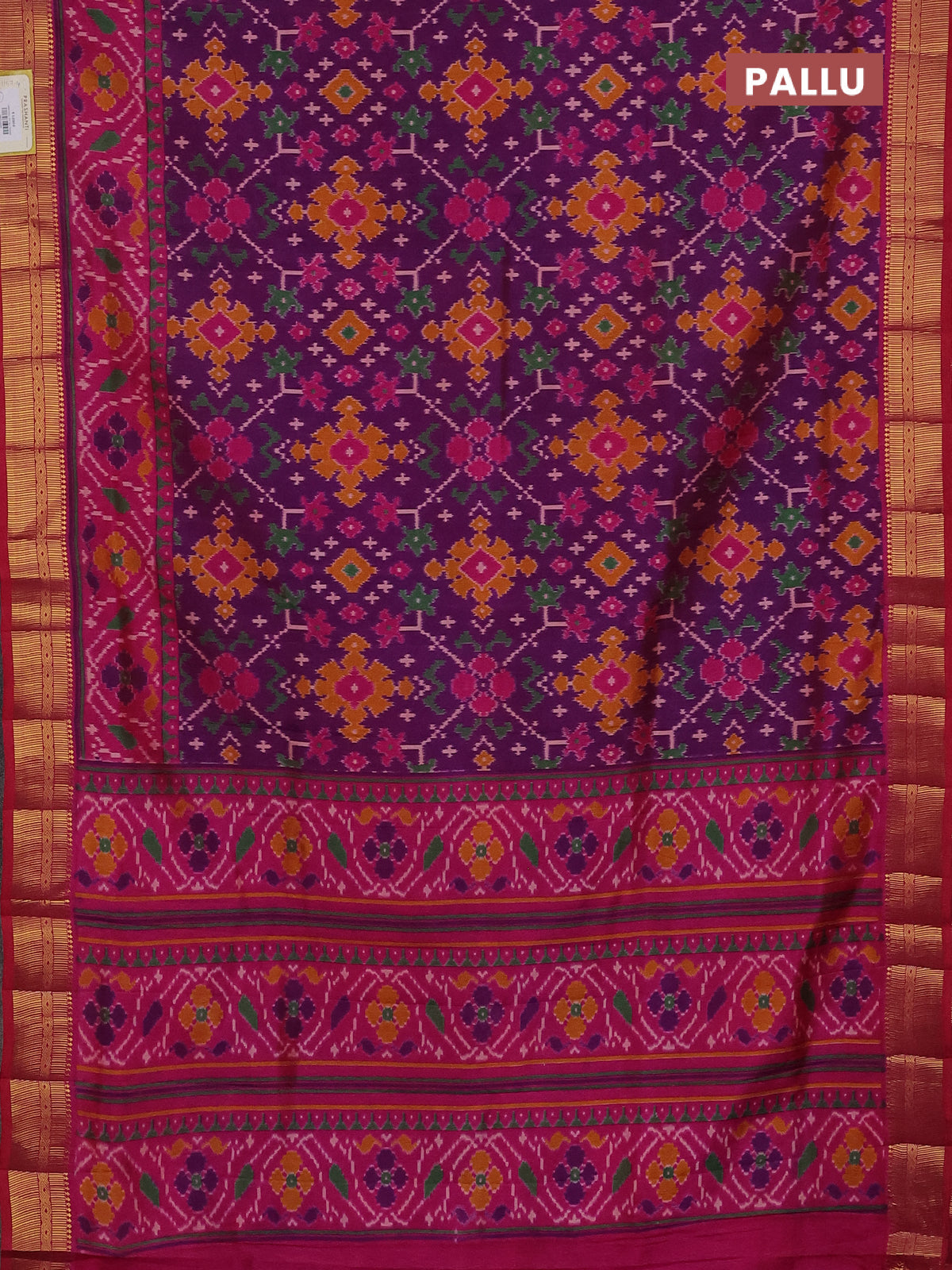 Semi tussar saree purple and pink with allover ikat prints and zari woven border