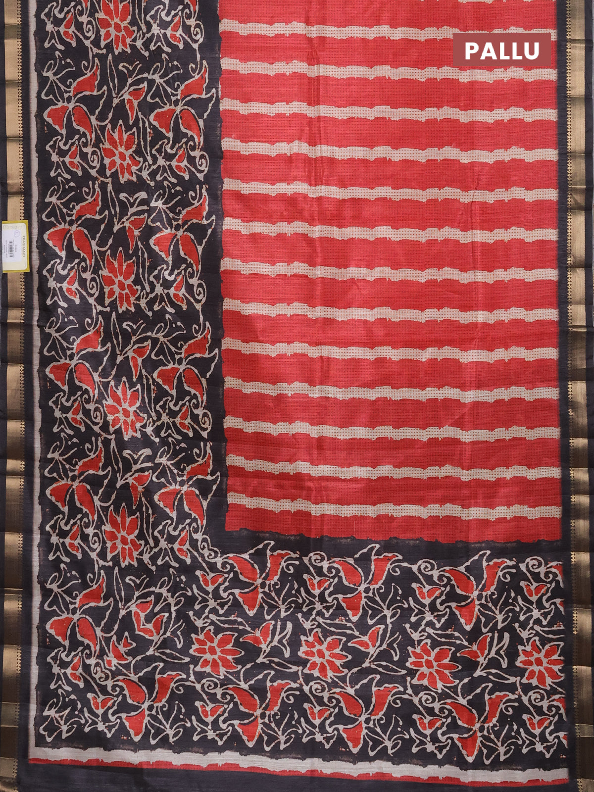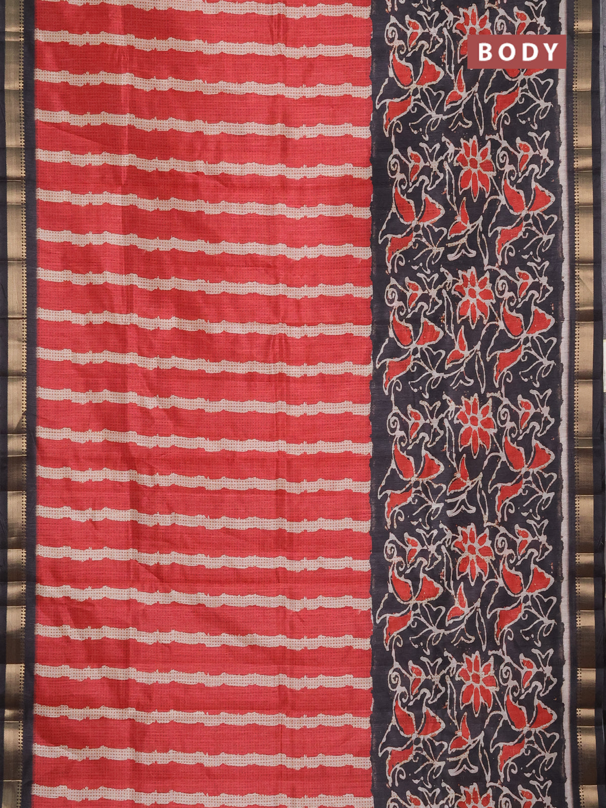 Semi tussar saree red and elephant grey with stripes pattern and zari woven border