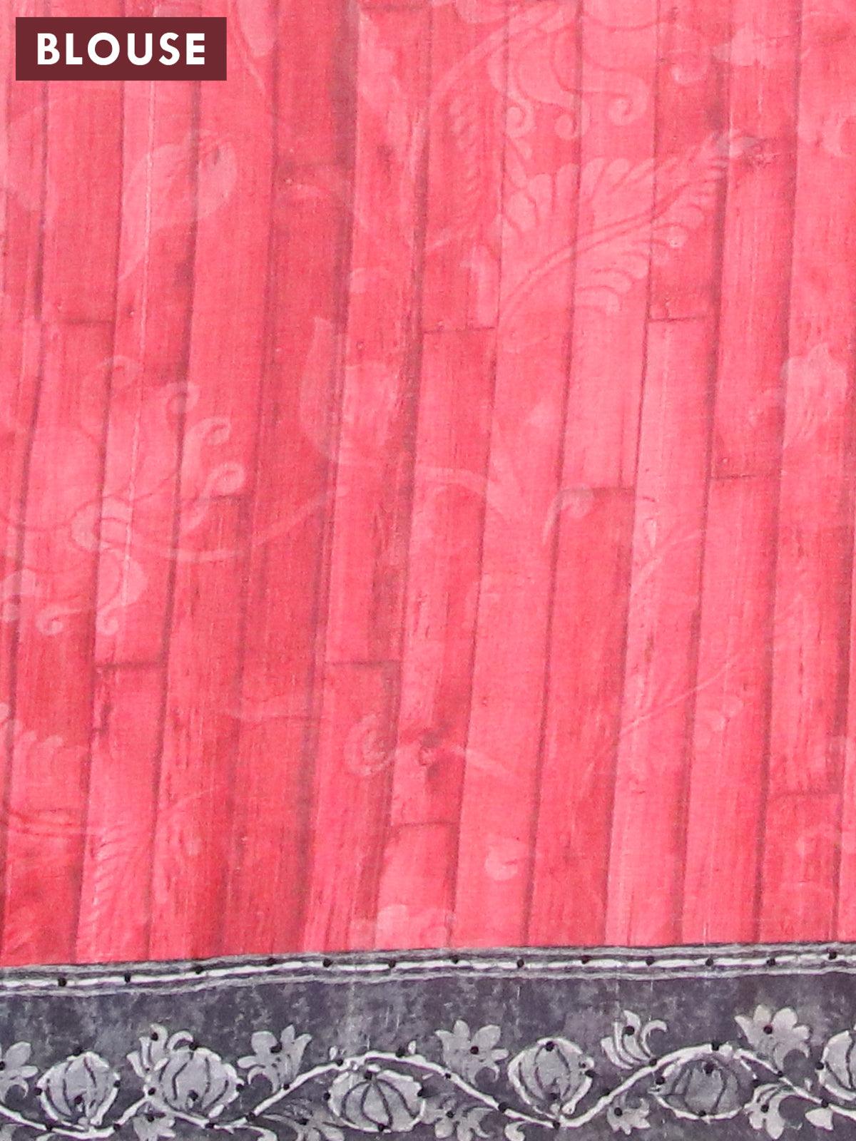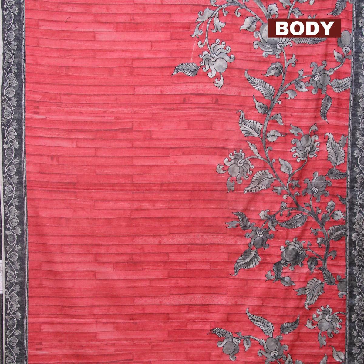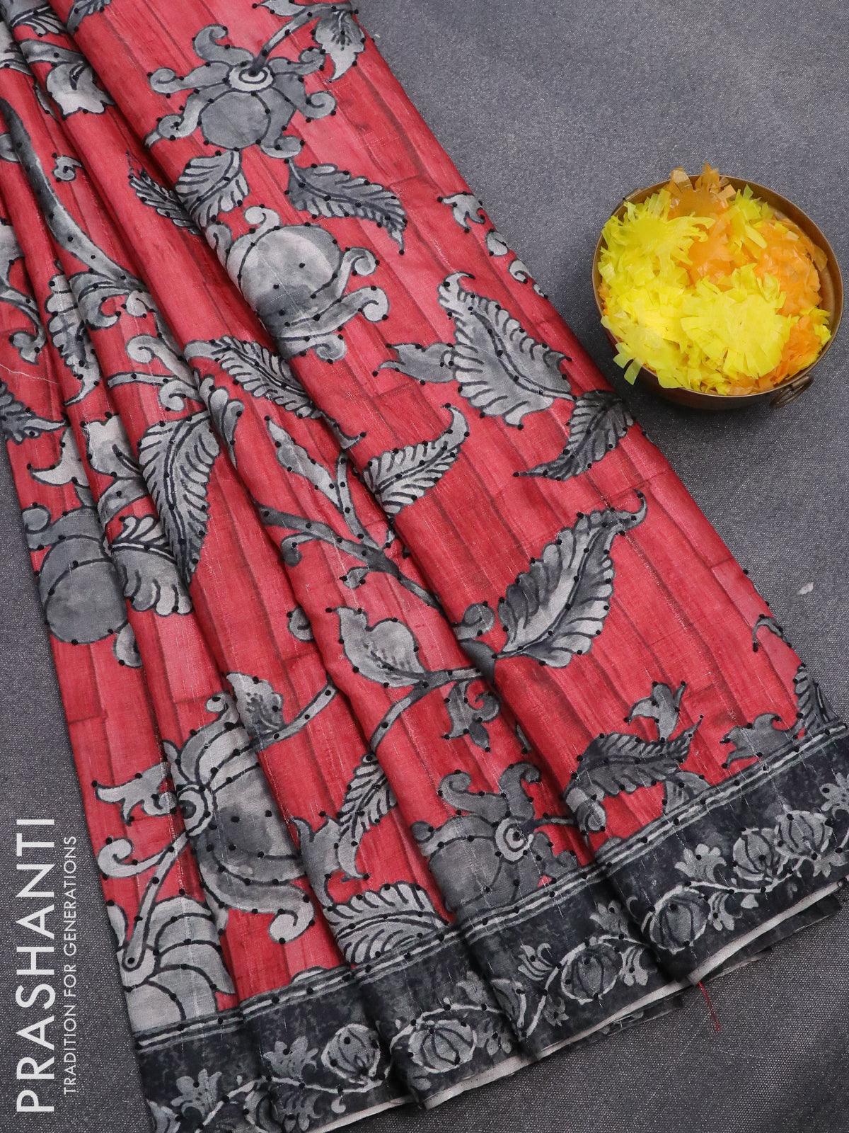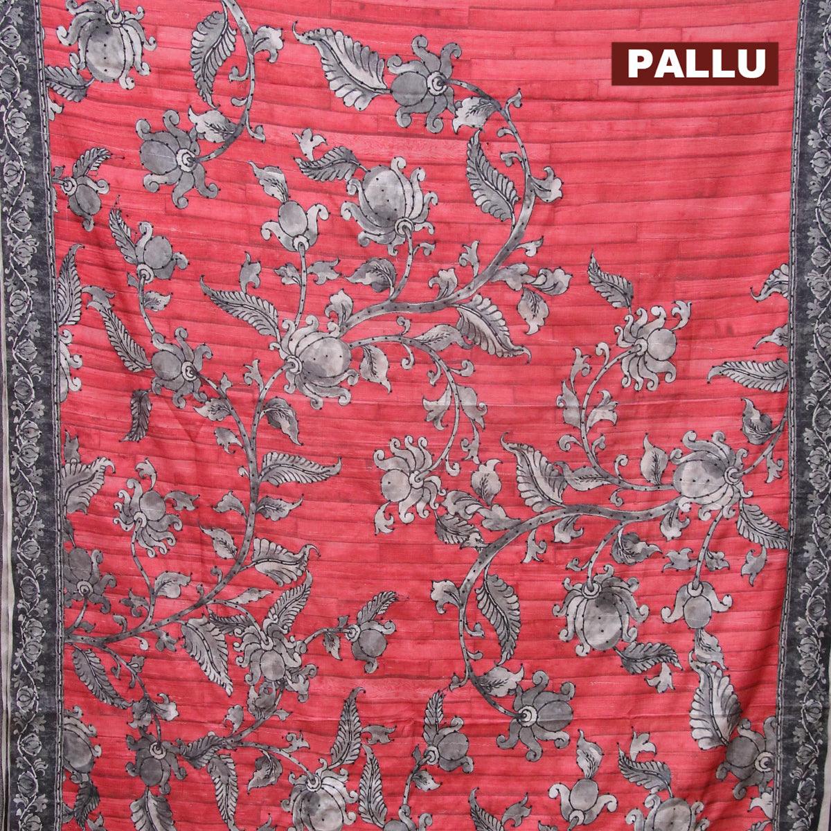 Semi tussar saree red and grey with kalamkari prints & french knot work and printed border