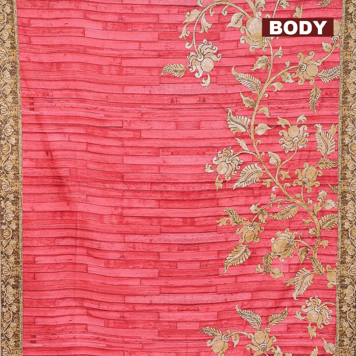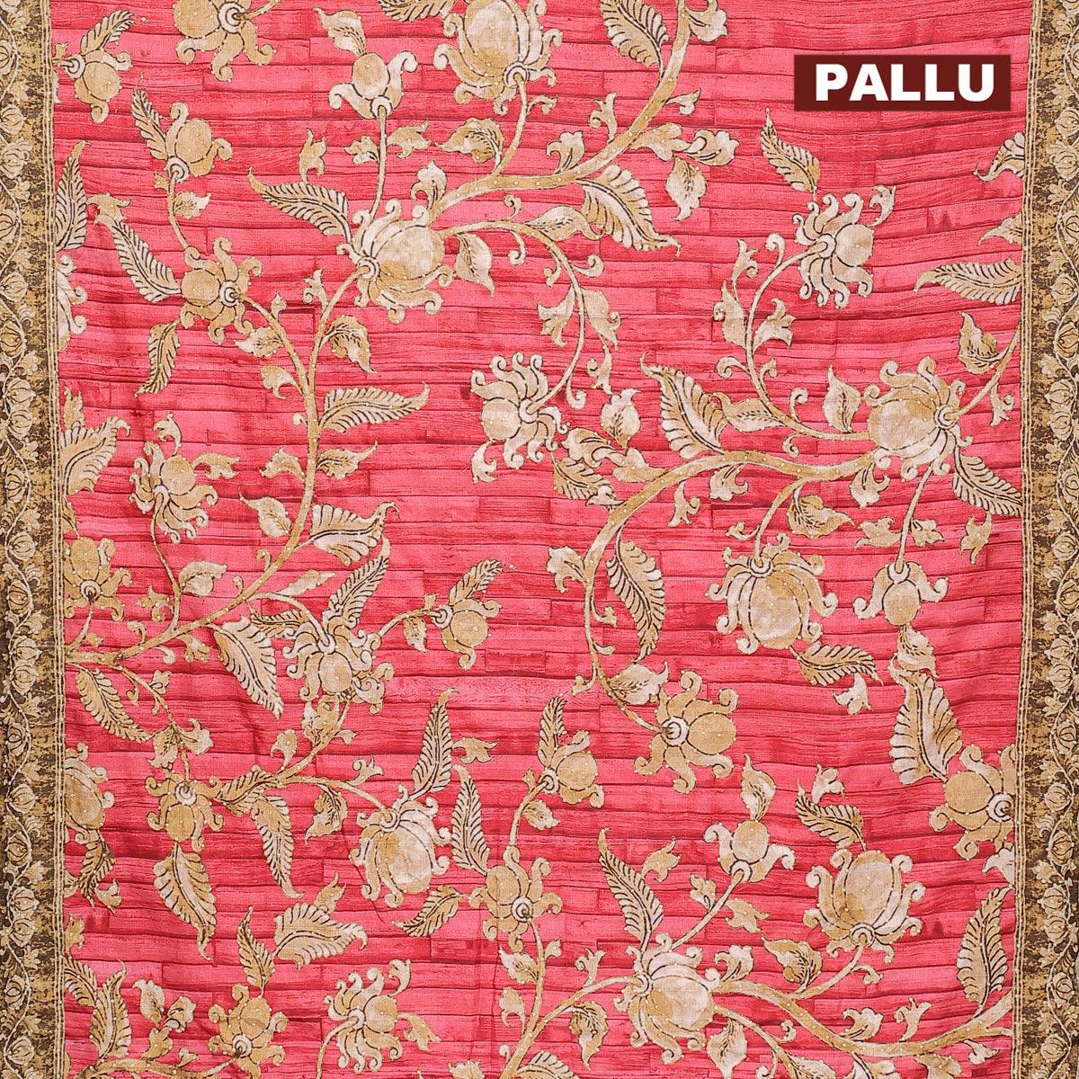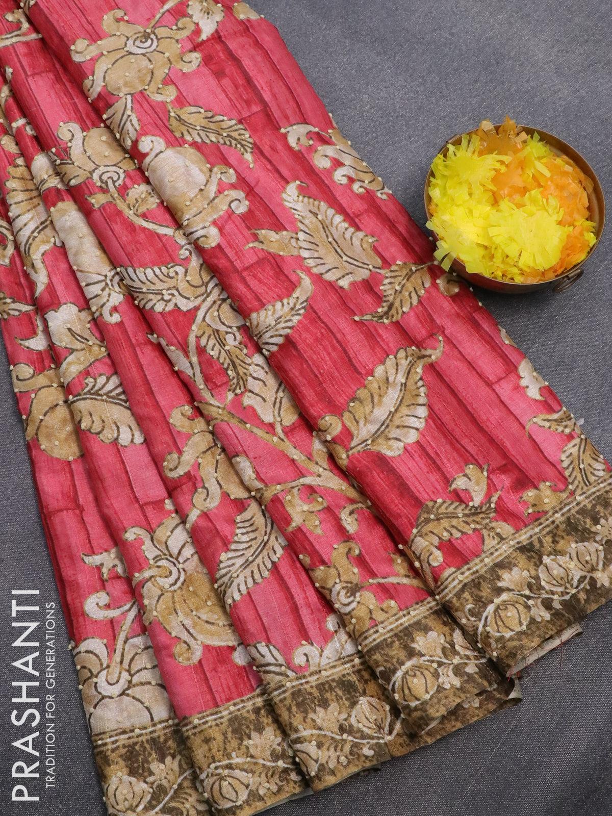 Semi tussar saree red with kalamkari prints & french knot work and printed border