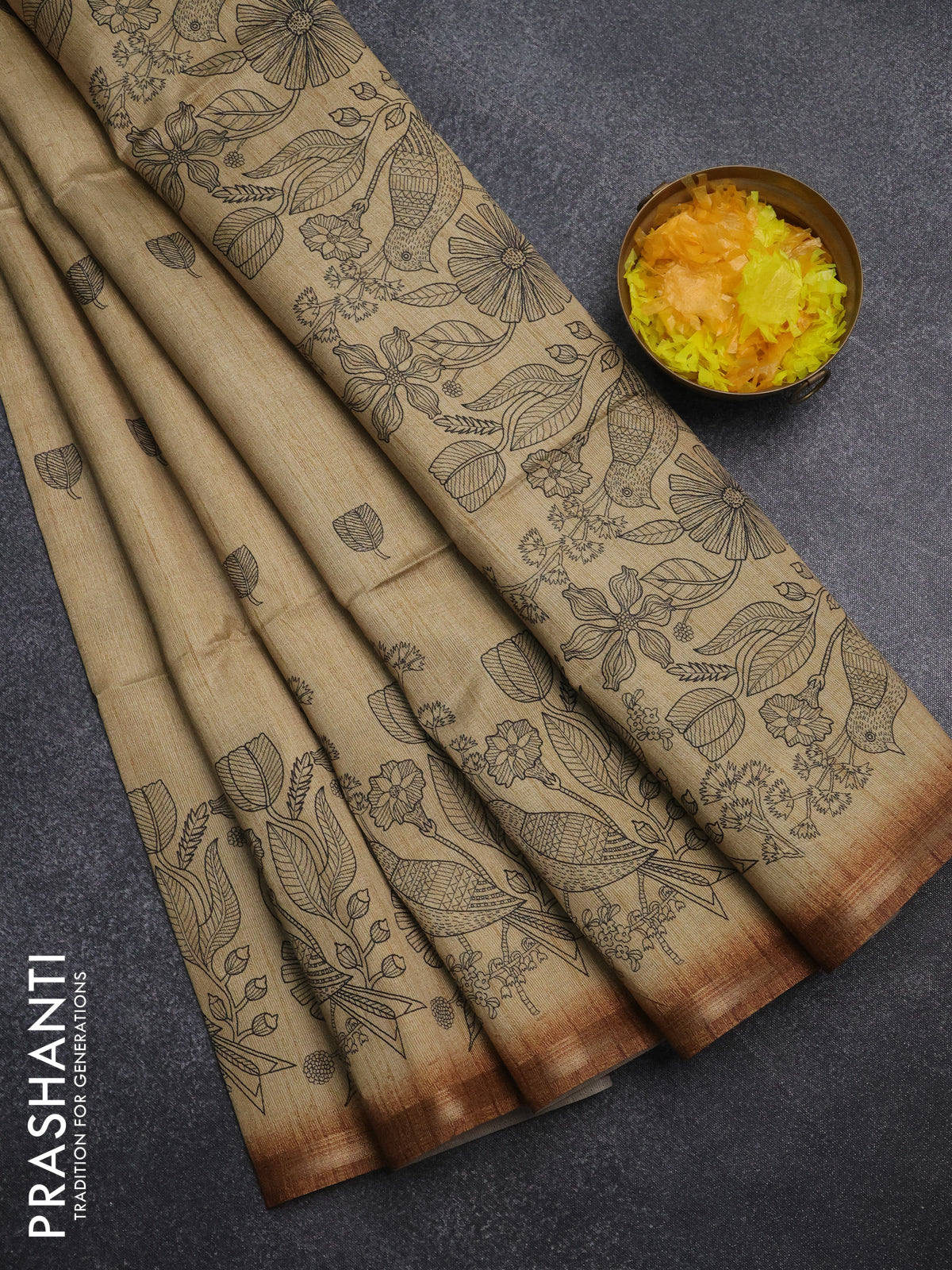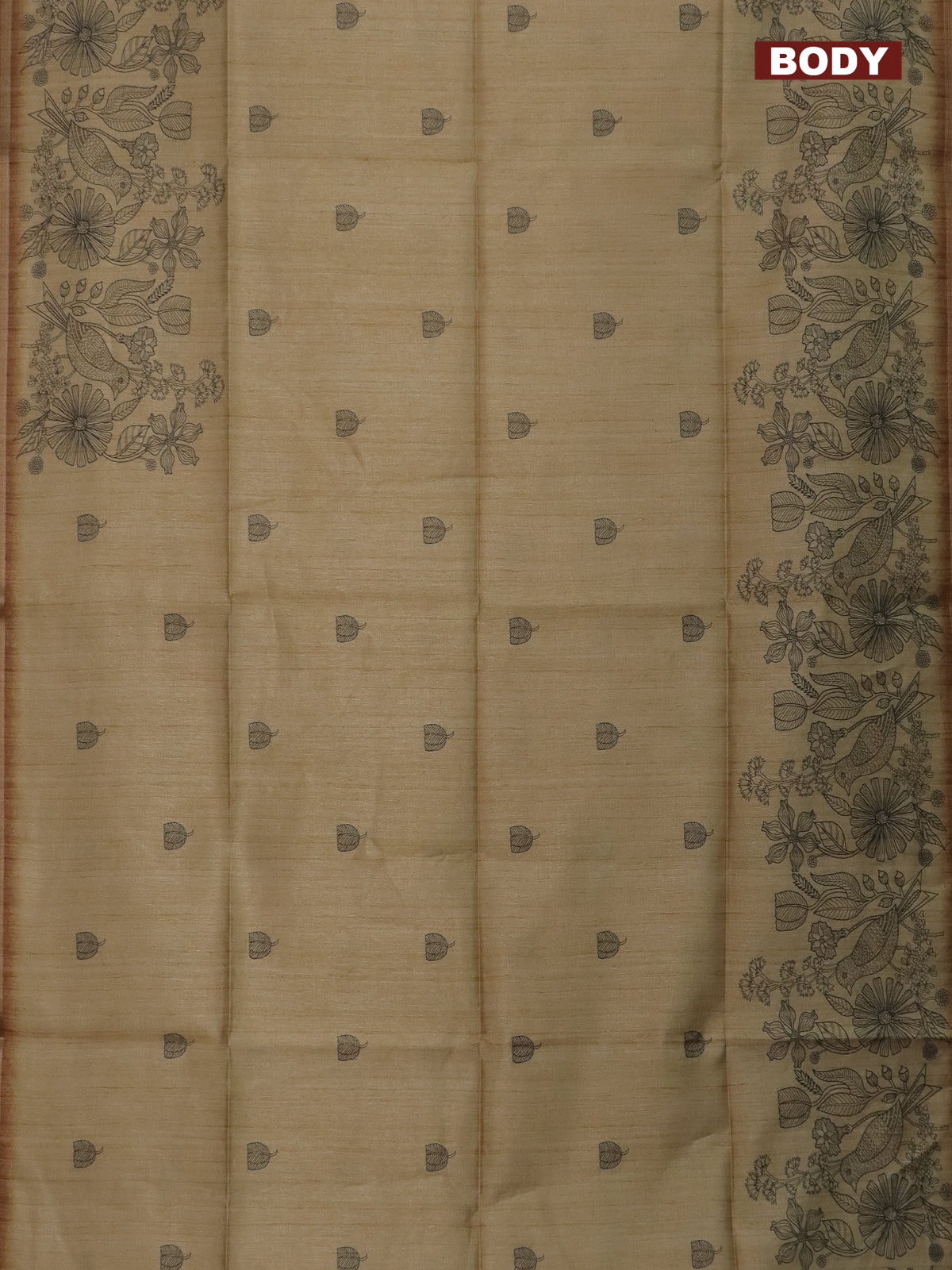 Material : Semi Tussar Blouse : Attached Length of saree : 6.2 mts (5.5 mts saree & 70 cms blouse)... Read more