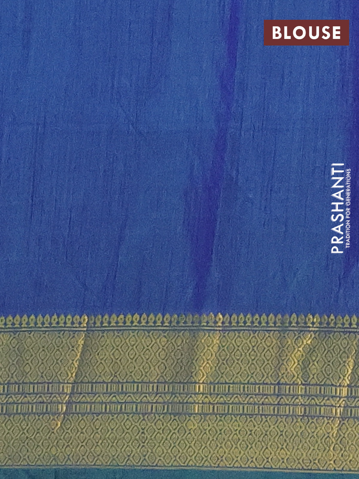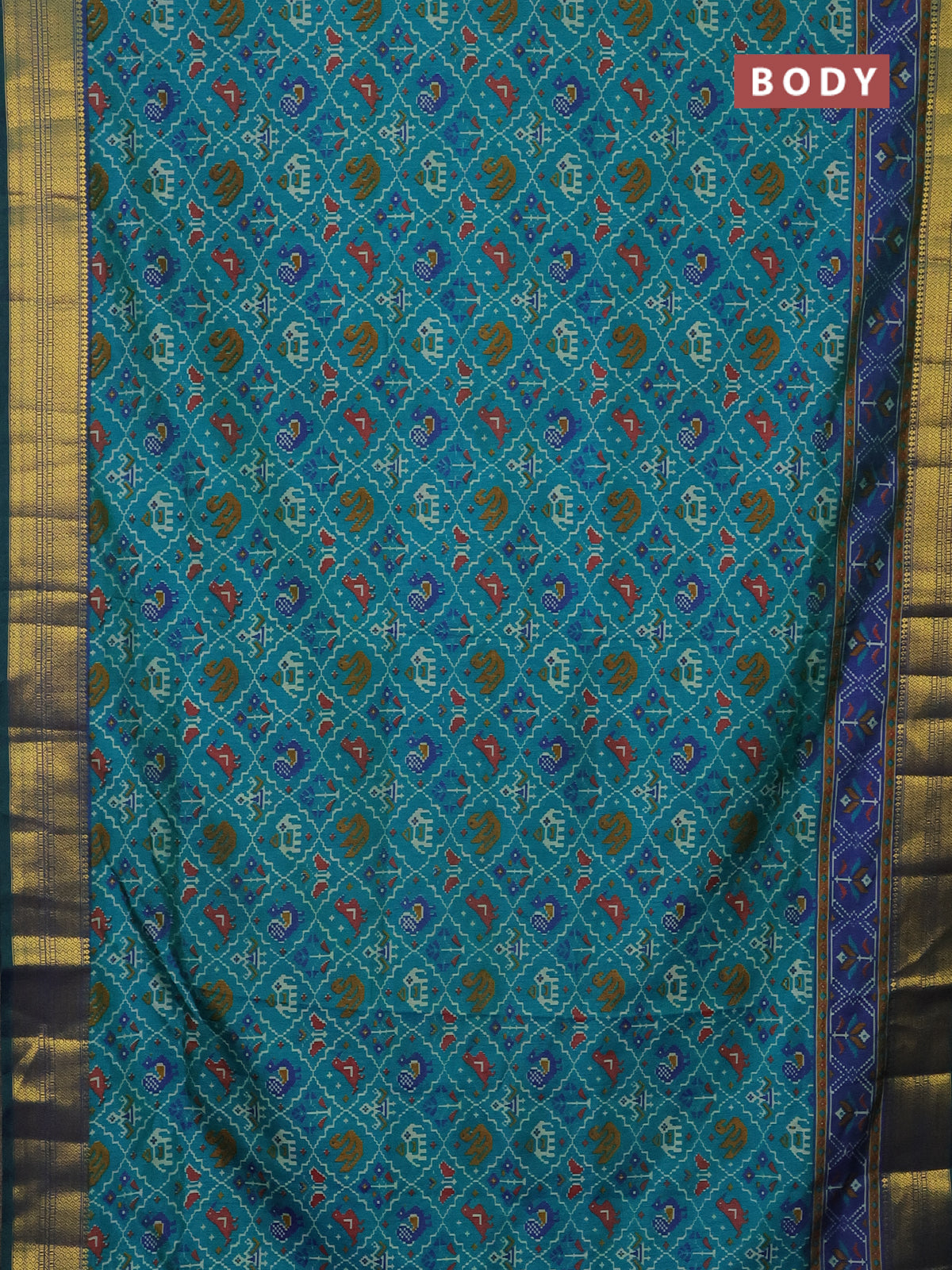 Semi tussar saree teal green and dual shade of blue with allover patola prints and zari woven border