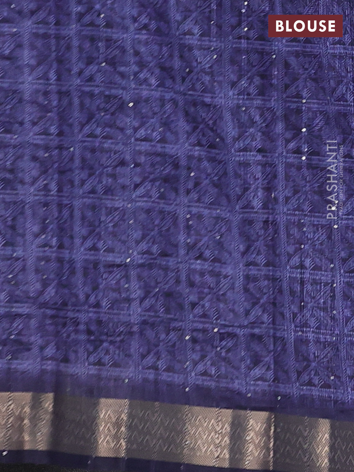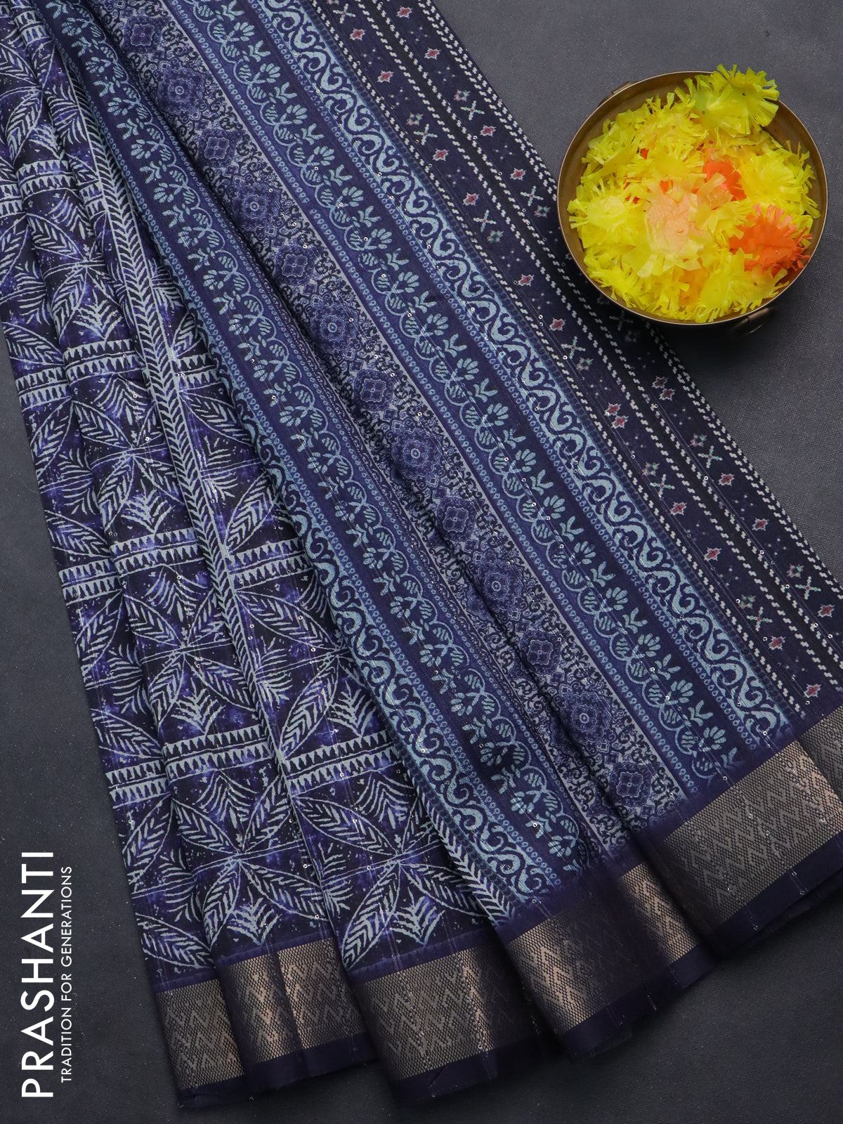 Semi tussar saree violet with allover leaf prints & sequin work and zari woven border