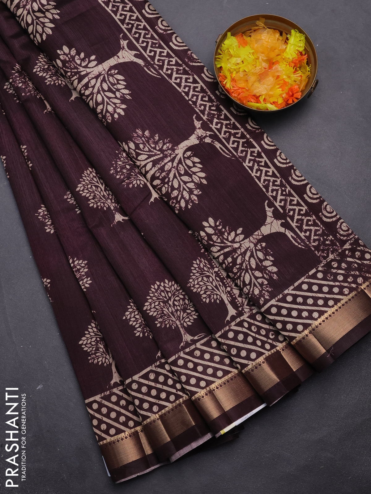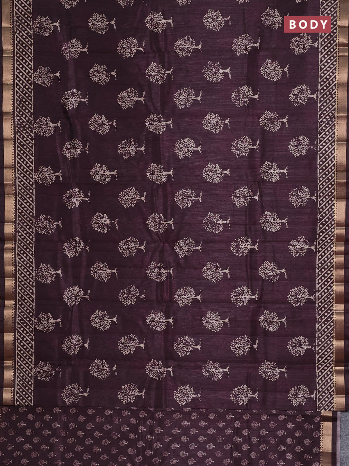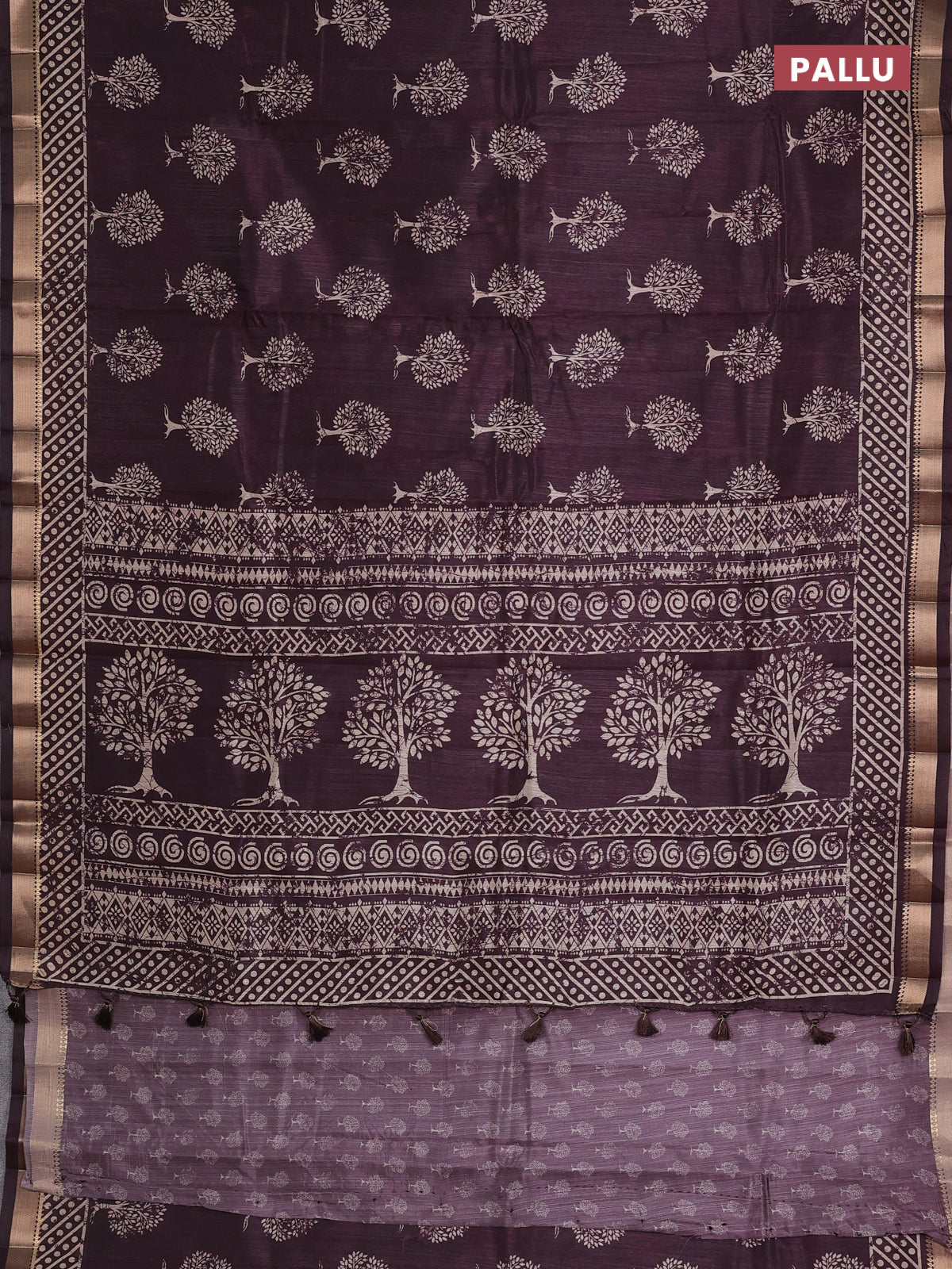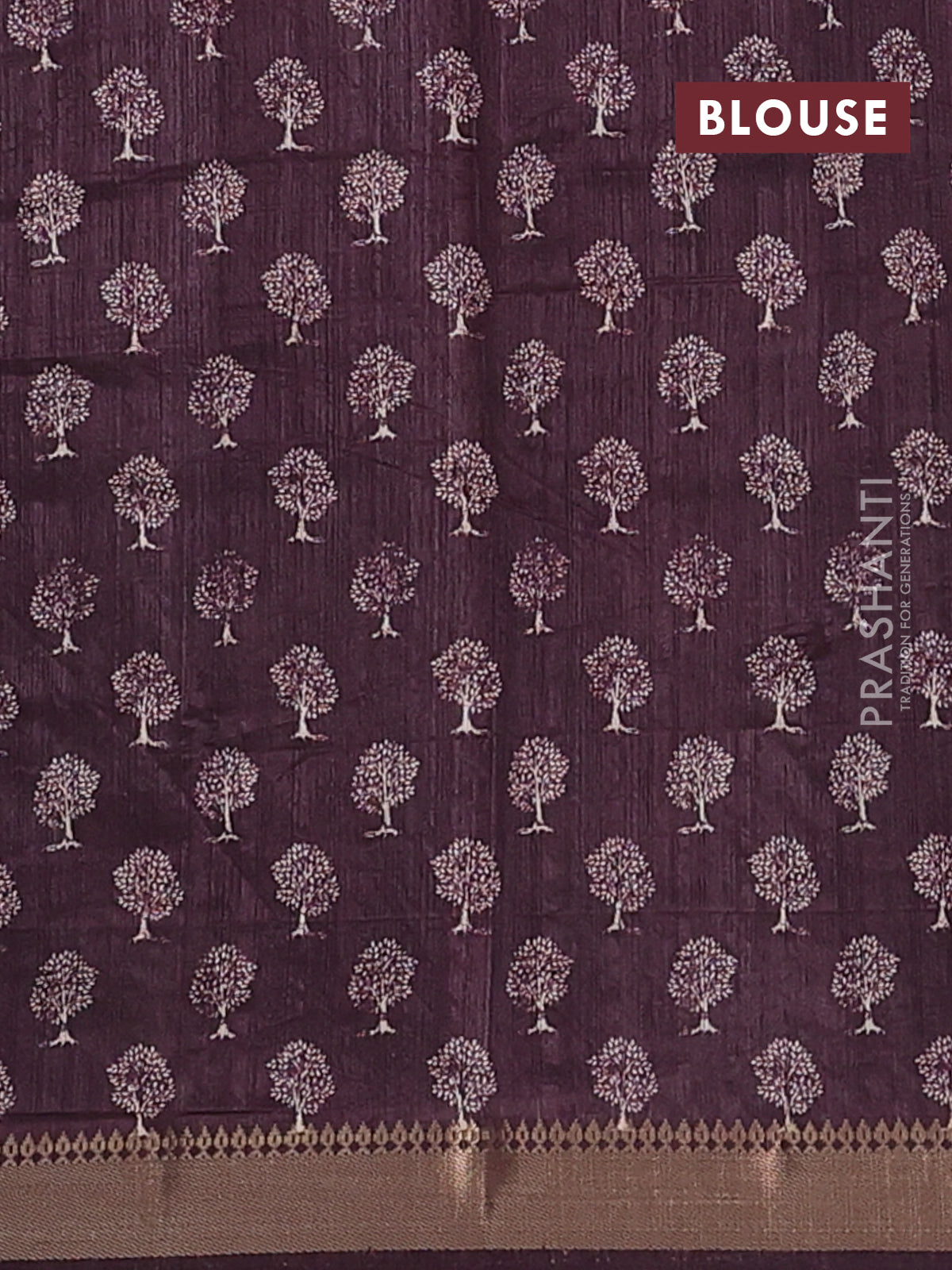 Semi tussar saree wine shade with tree butta prints and zari woven border