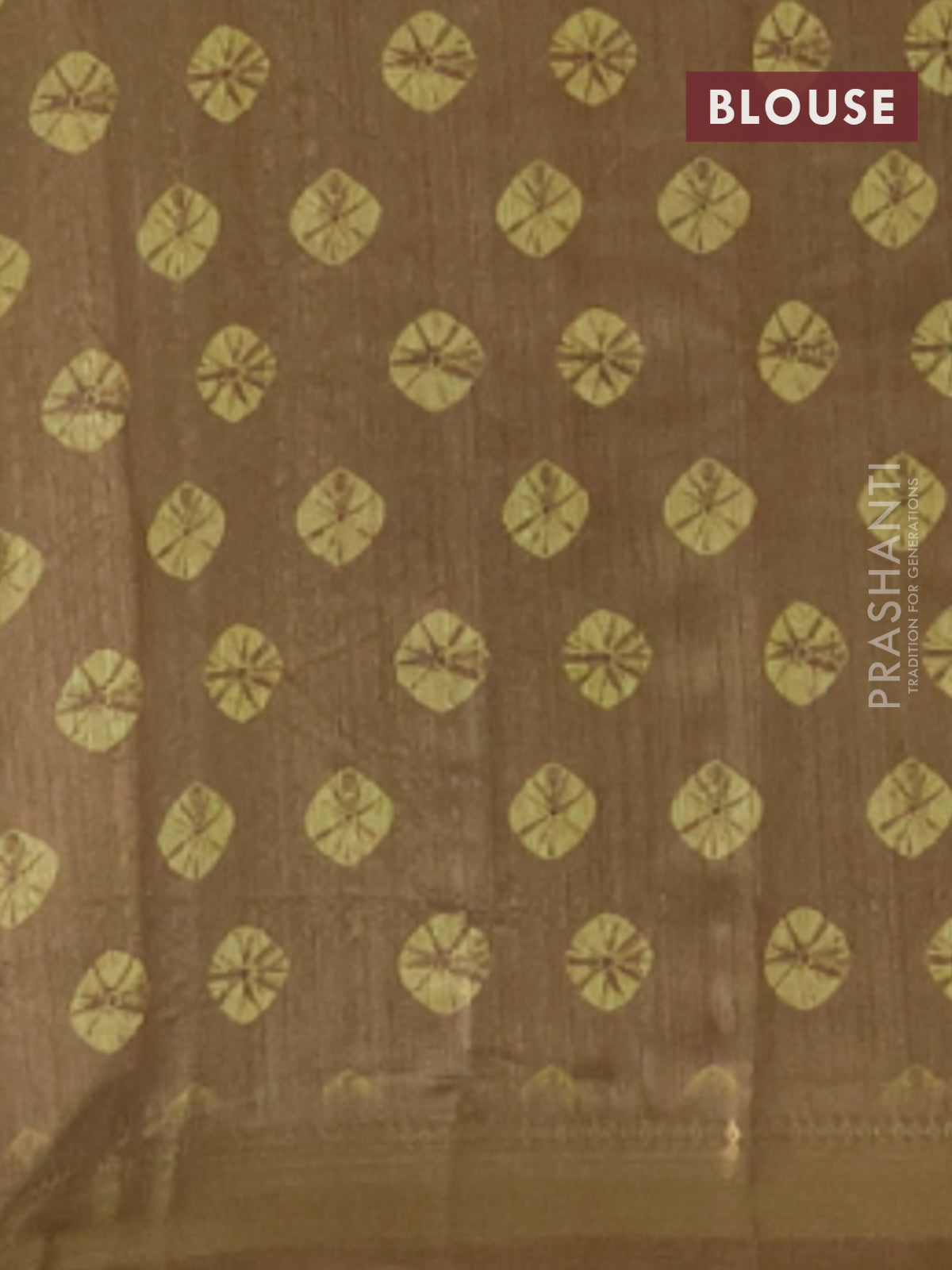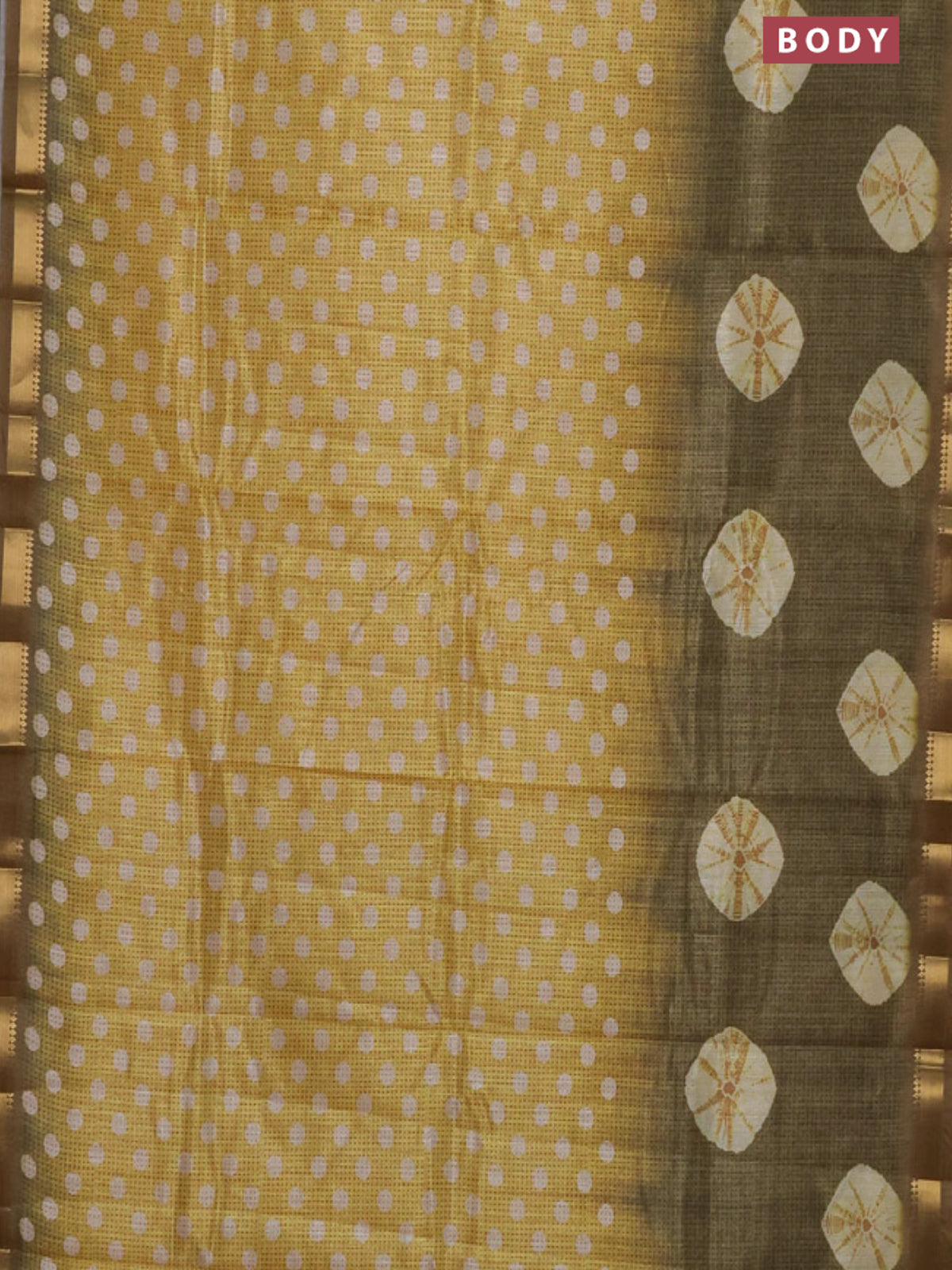 Semi tussar saree yellow and green shade with butta prints and zari woven border