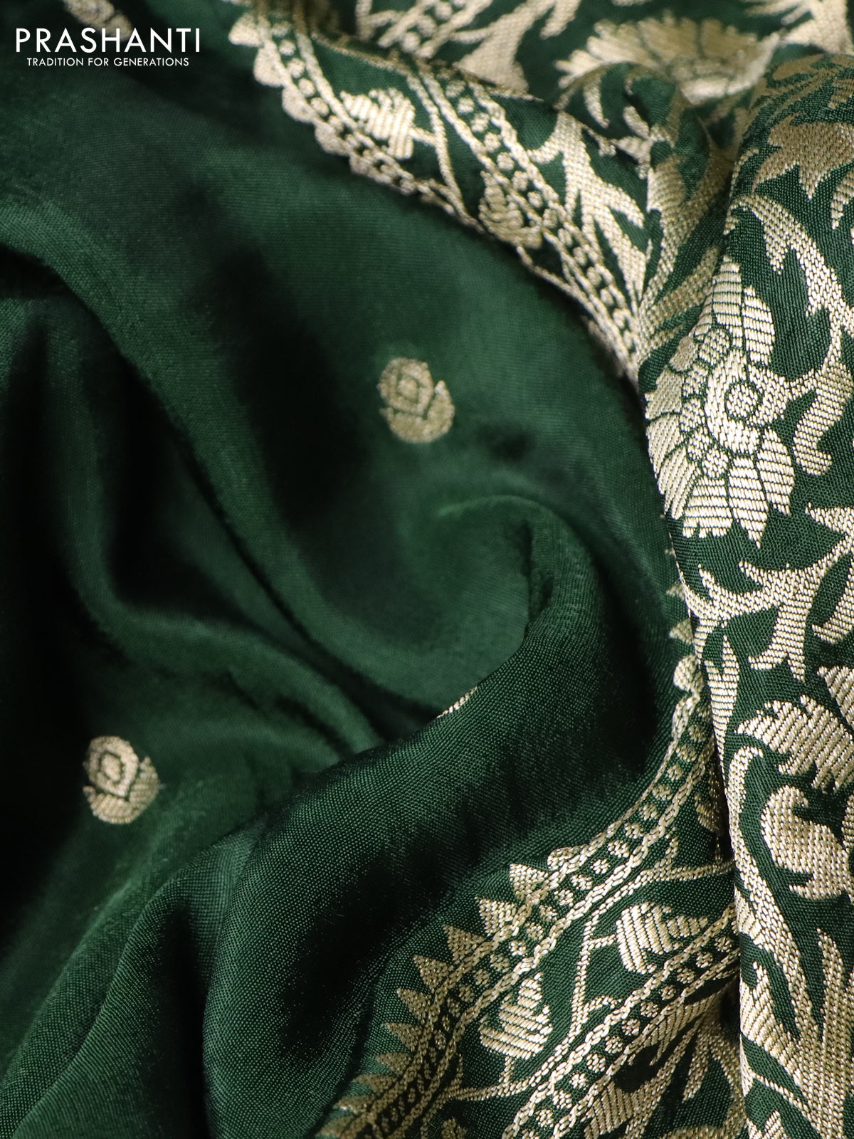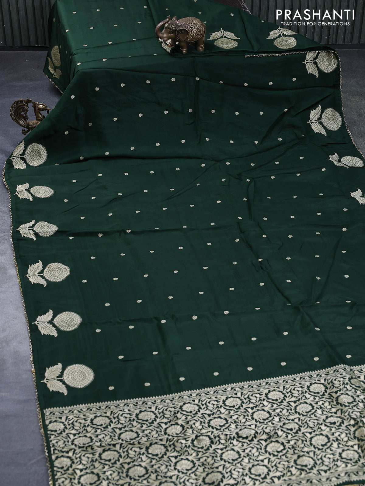 Semi tussar silk saree bottle green and light green with thread & zari woven buttas and floral design buttas & beaded work border