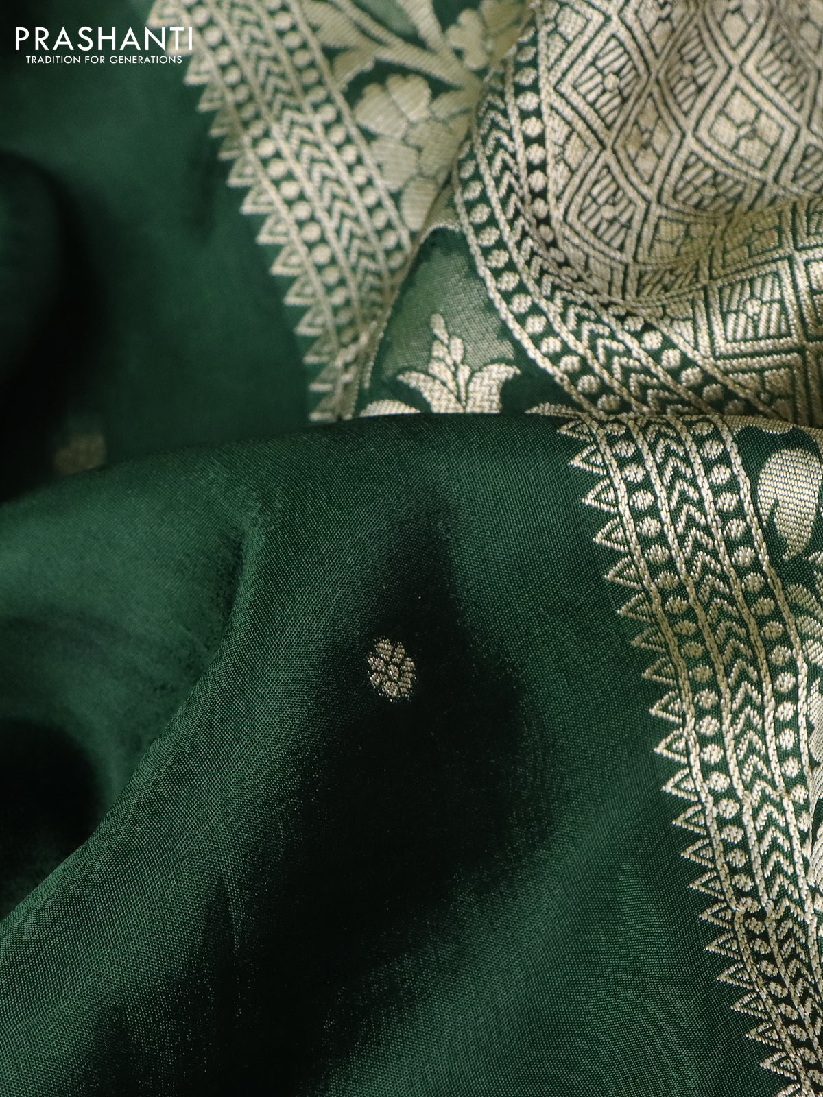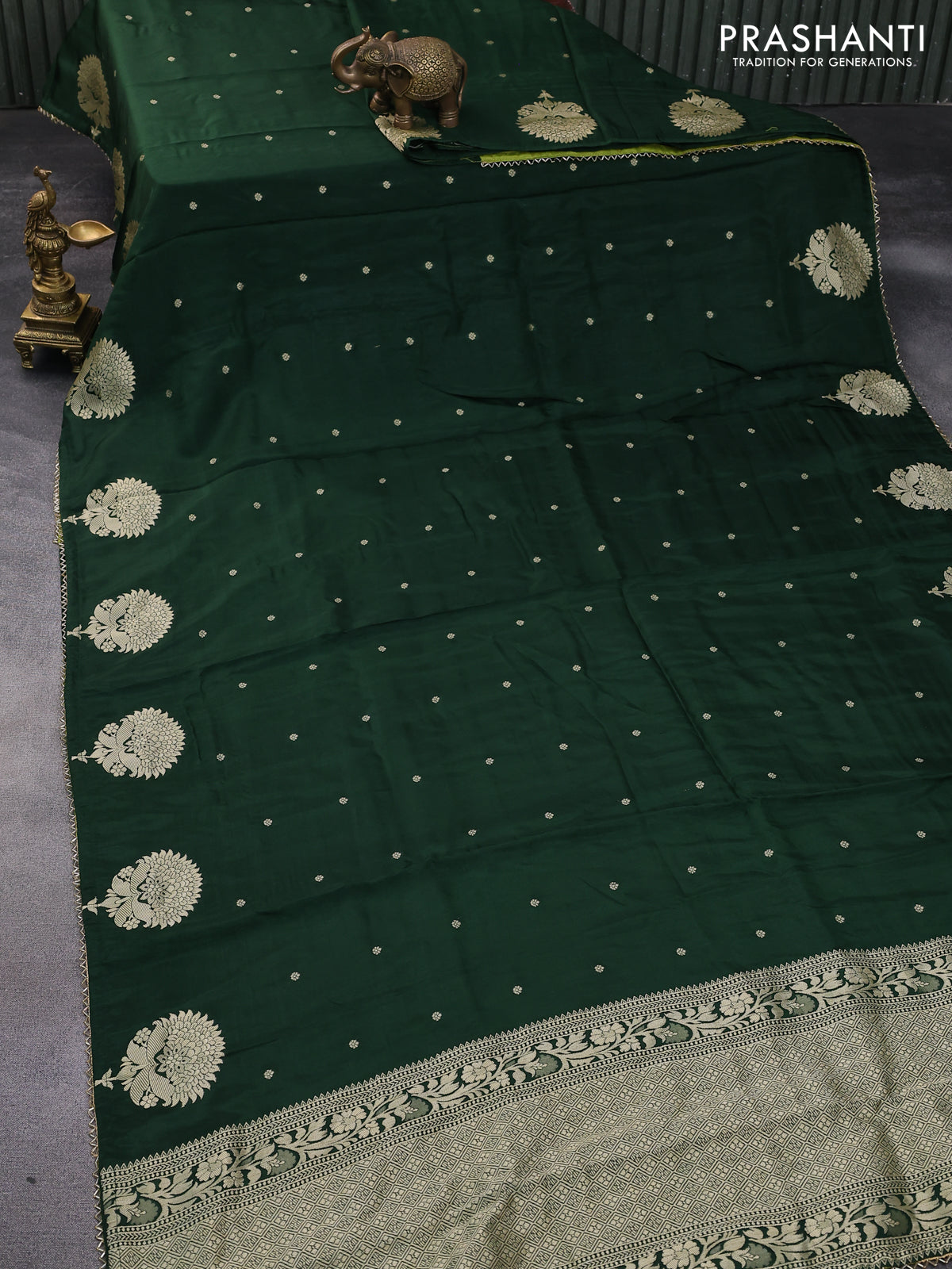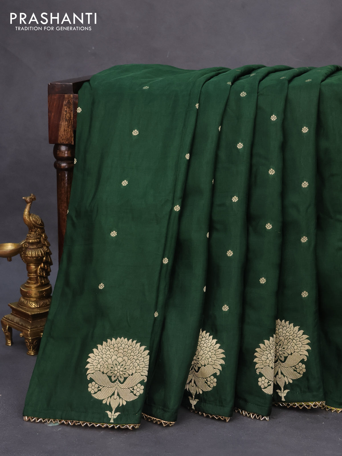 Semi tussar silk saree bottle green and light green with thread & zari woven buttas and woven buttas & beaded work border
