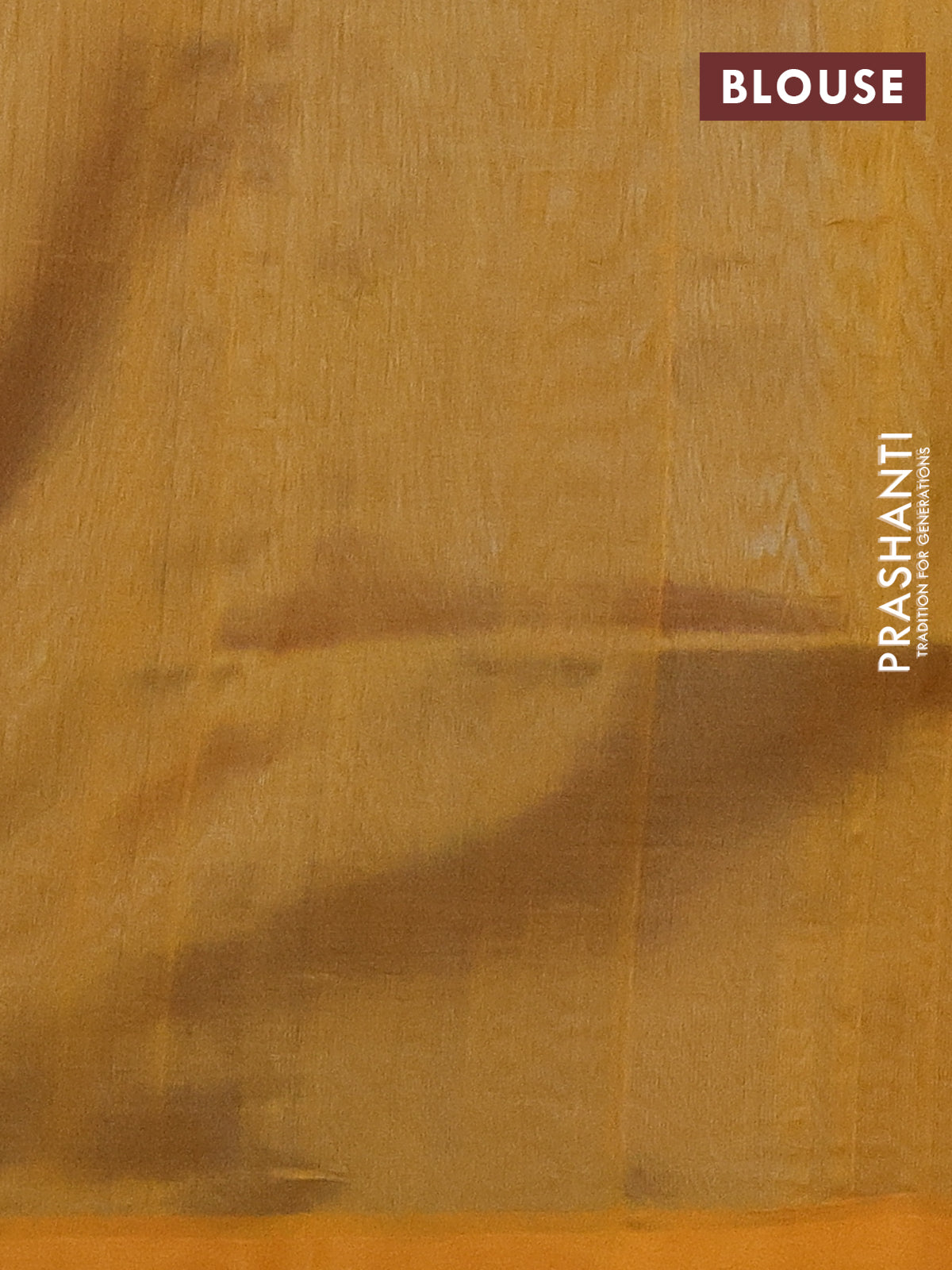Silk cotton saree blue and dark mustard with zari woven buttas and temple design zari woven butta border