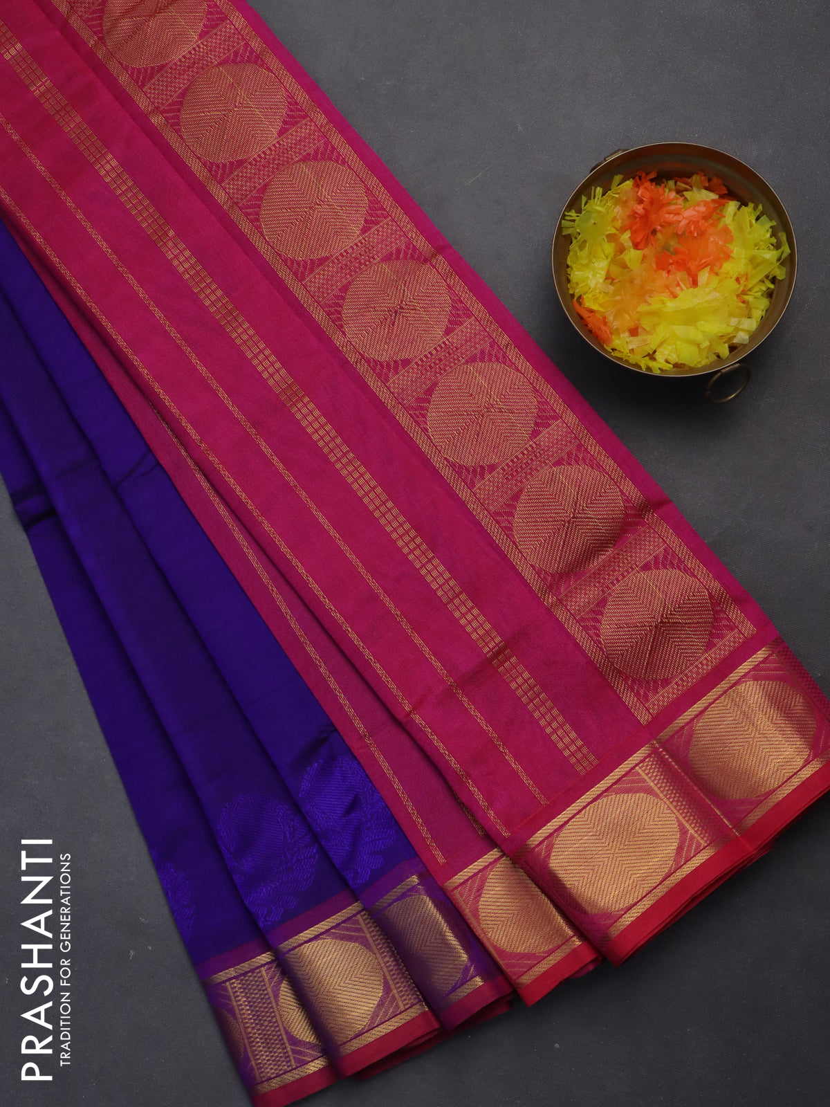 Silk cotton saree blue and pink with plain body and zari woven border