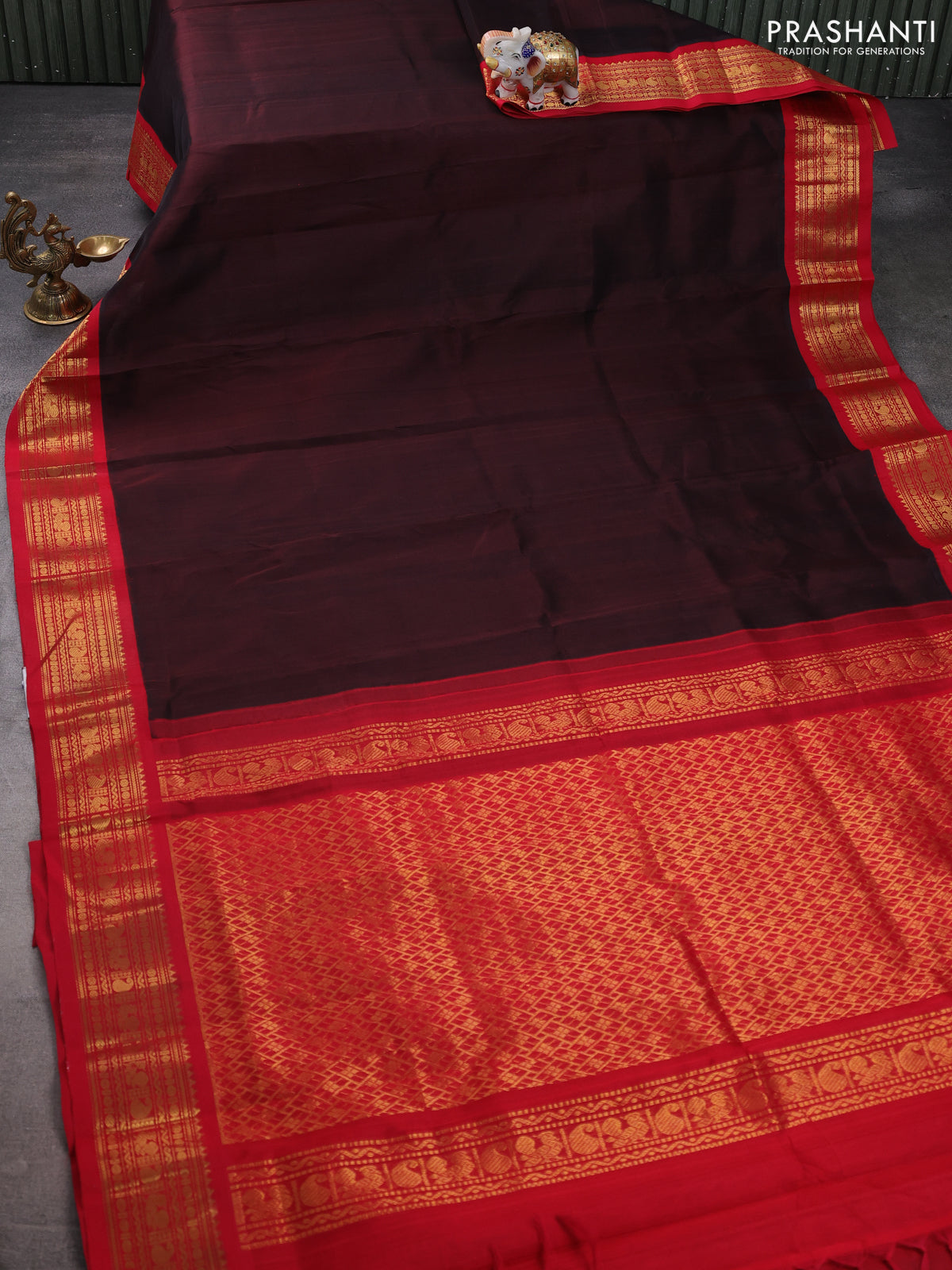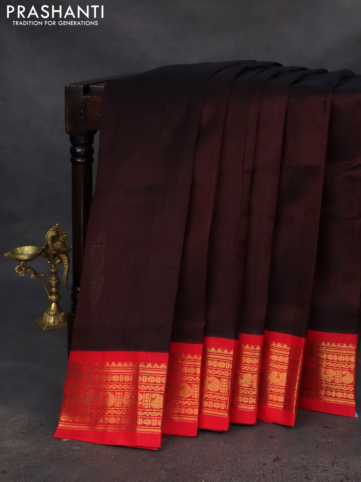 Silk cotton saree deep maroon and red with plain body and zari woven korvai border