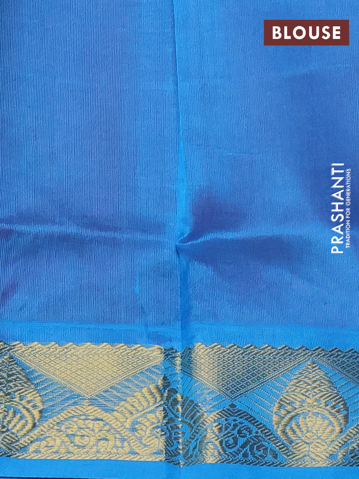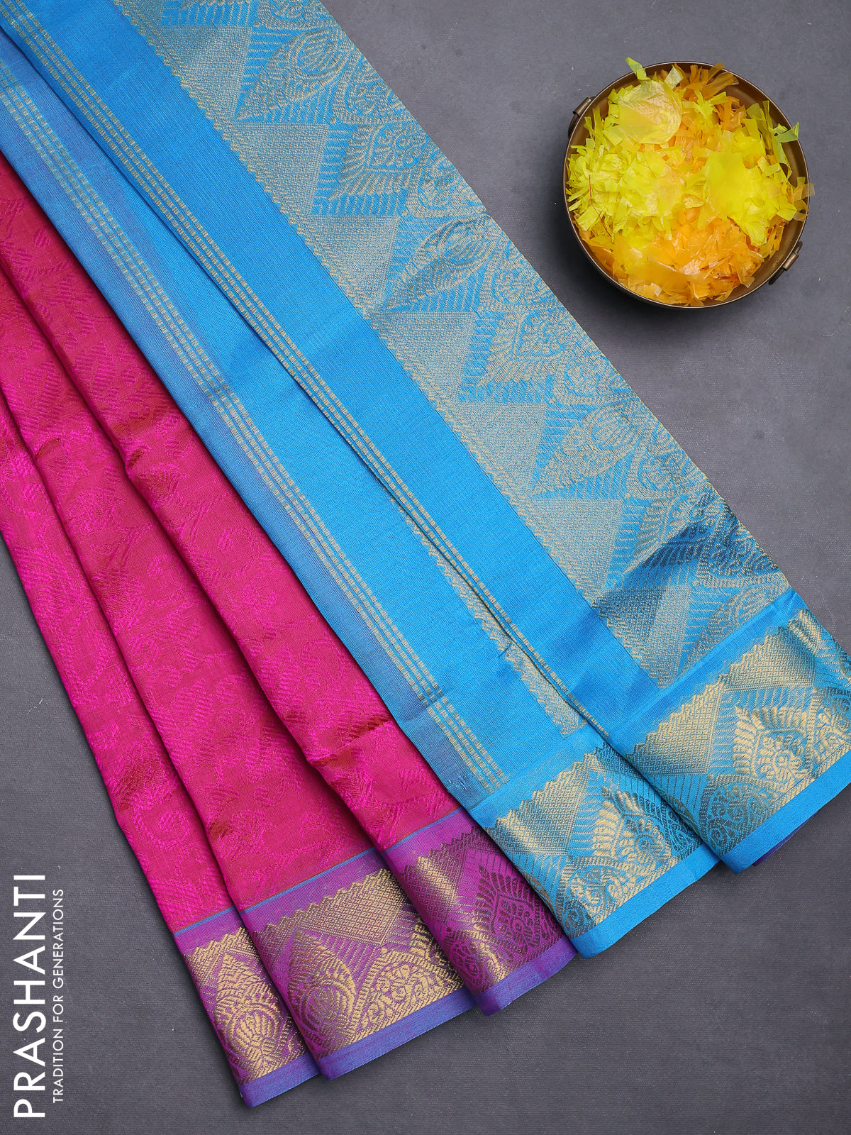 Silk cotton saree dual shade of pink and blue with allover self emboss jacquard and zari woven border