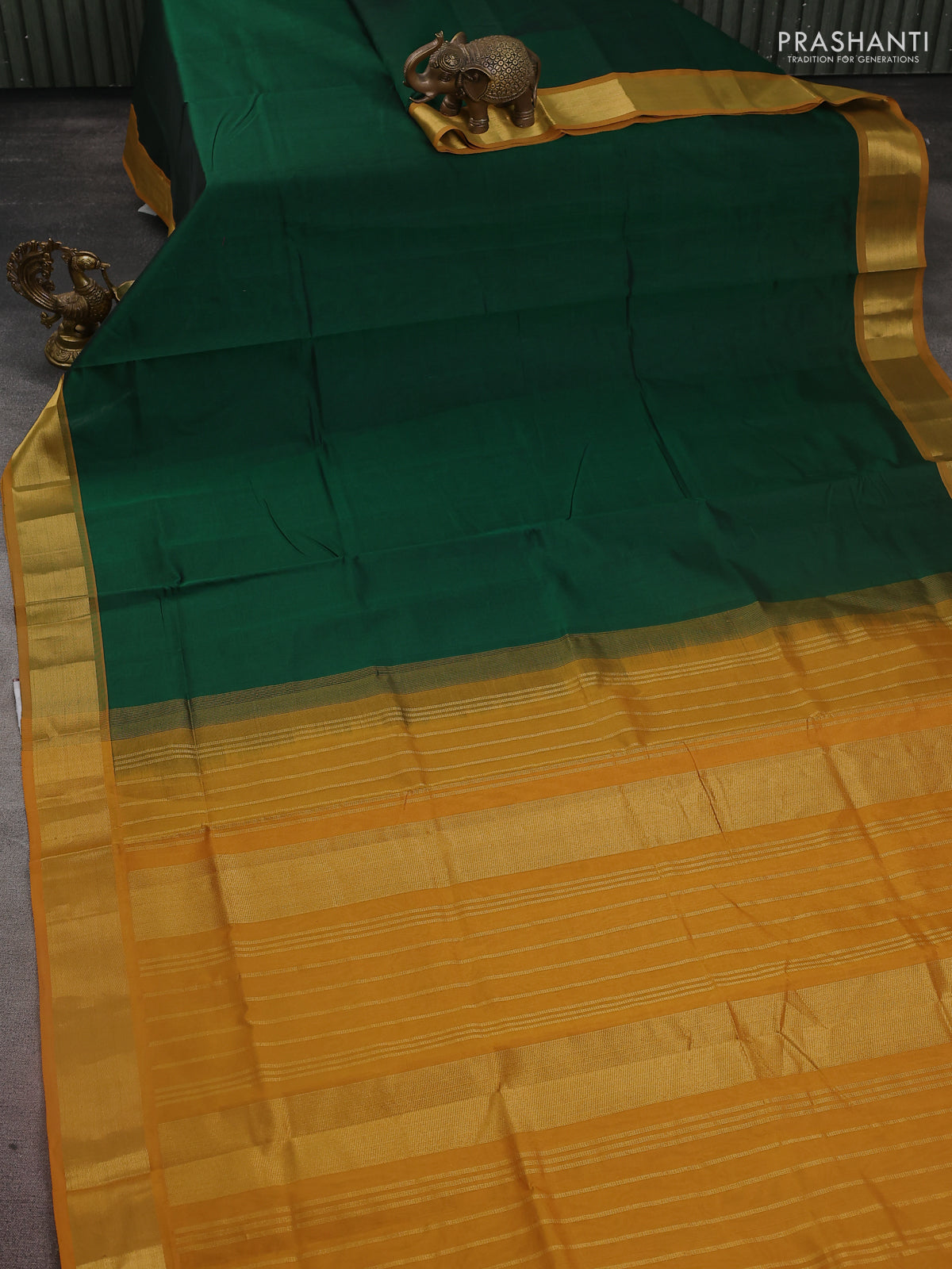Silk cotton saree green and mustard yellow with plain body and zari woven border