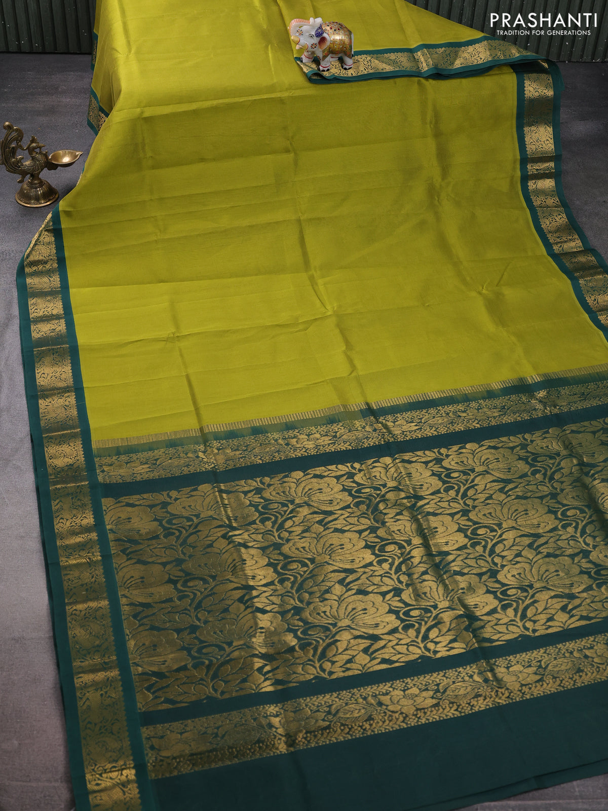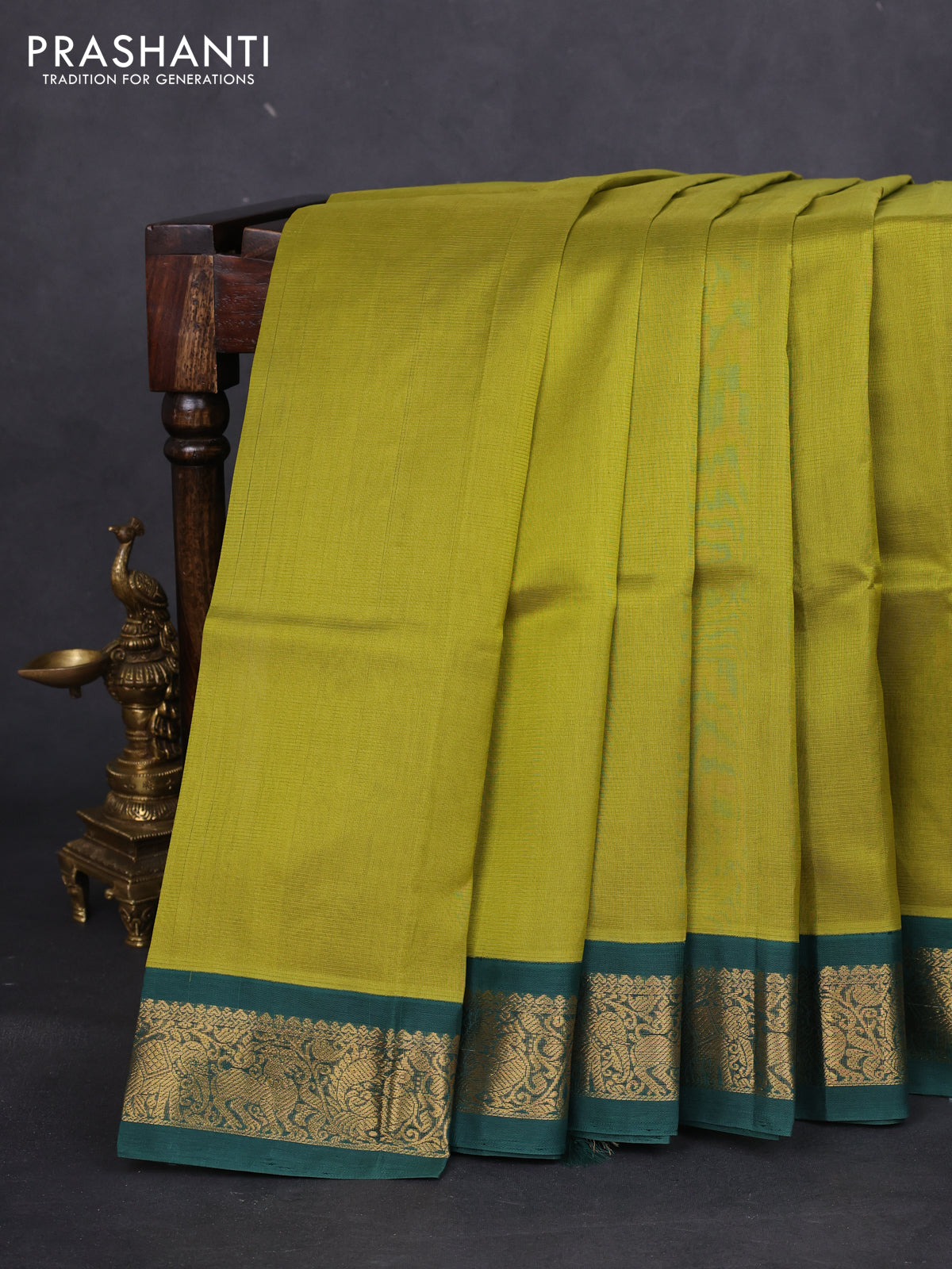 Silk cotton saree lime green and green with allover vairaosi pattern and zari woven korvai border